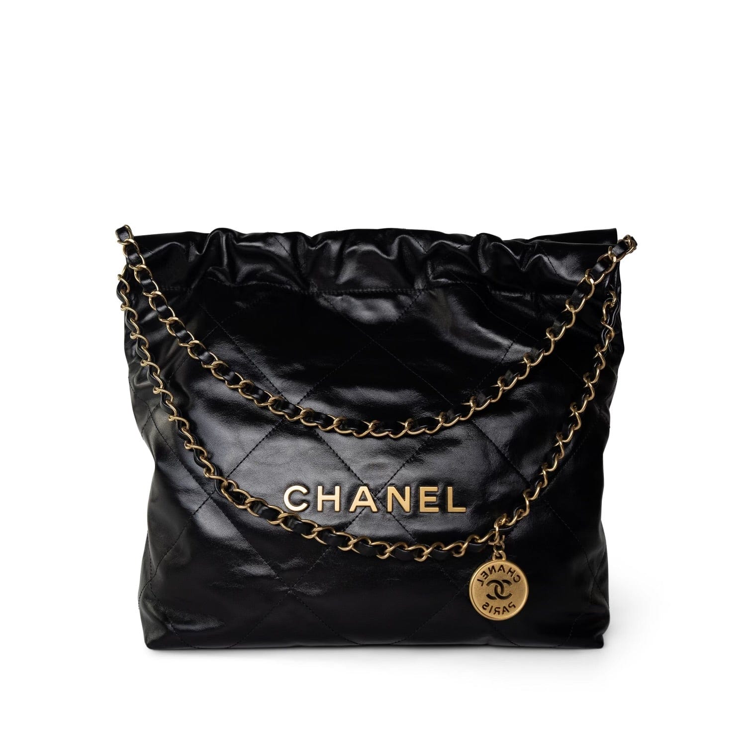 24C Black Calfskin Quilted 22 Hobo Bag Small Antique Gold Hardware