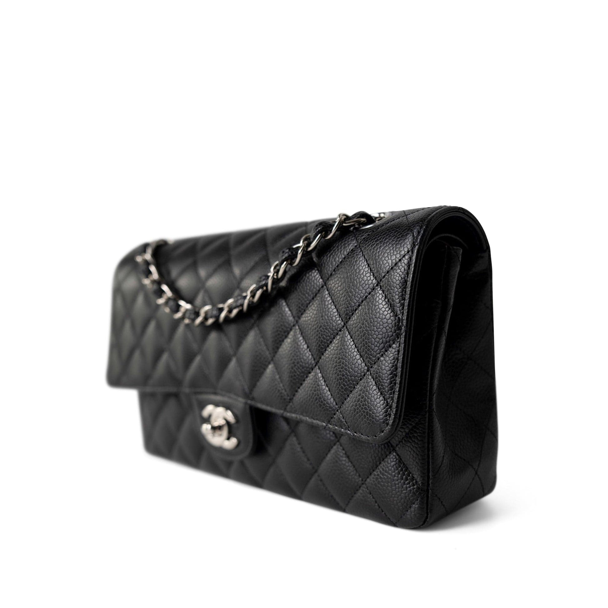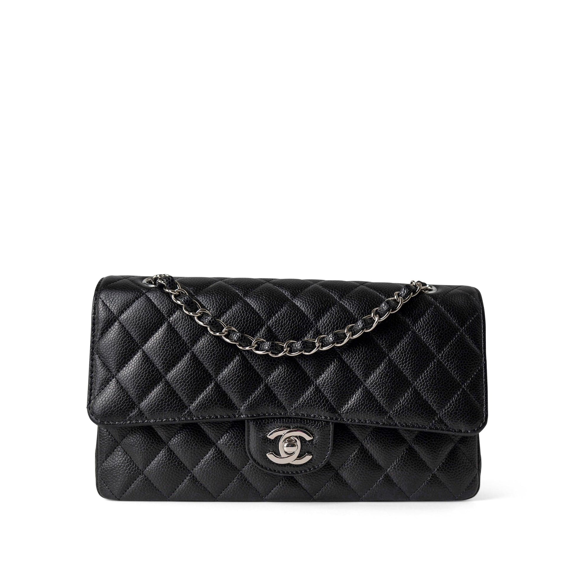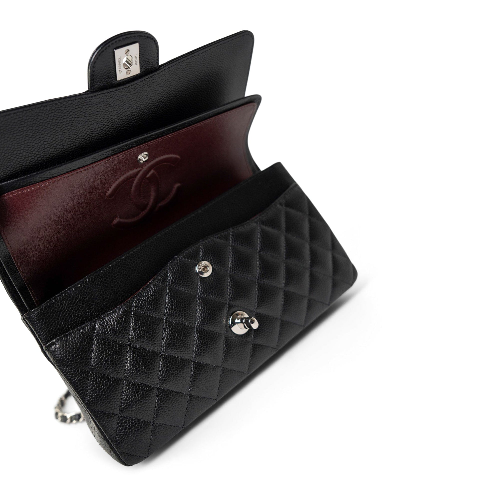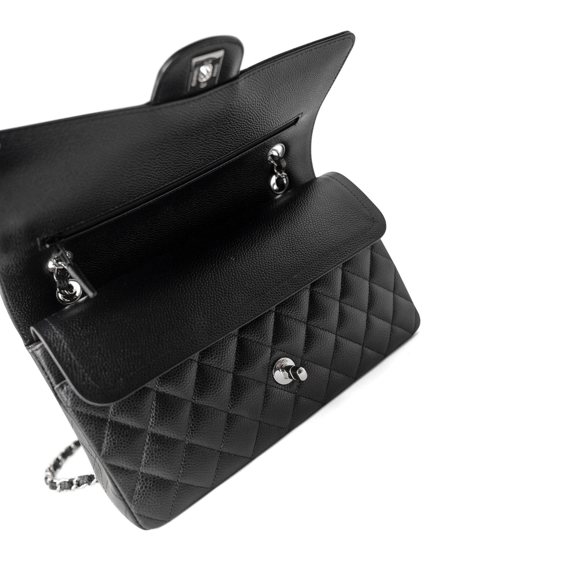 Black Caviar Quilted Classic Flap Medium Silver Hardware