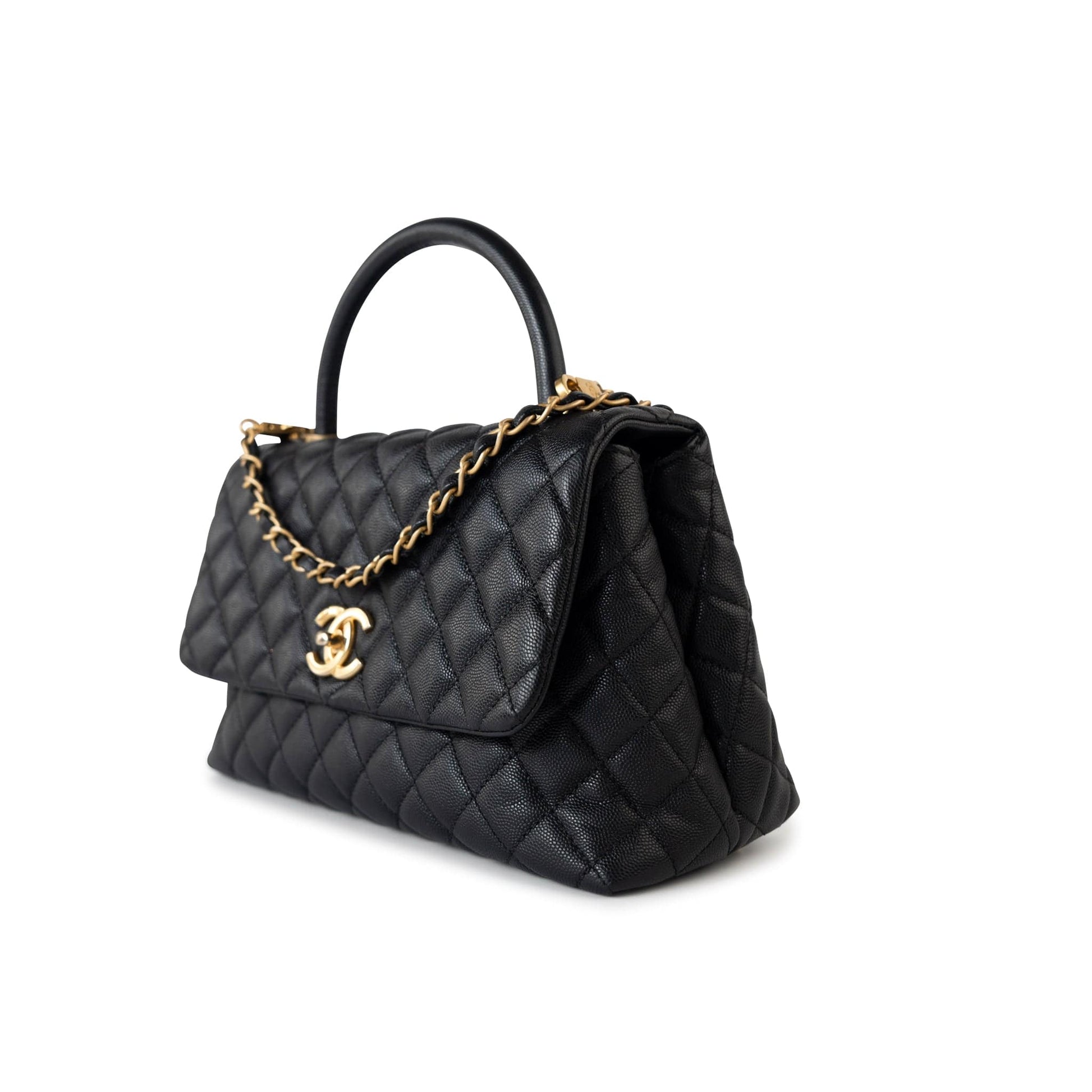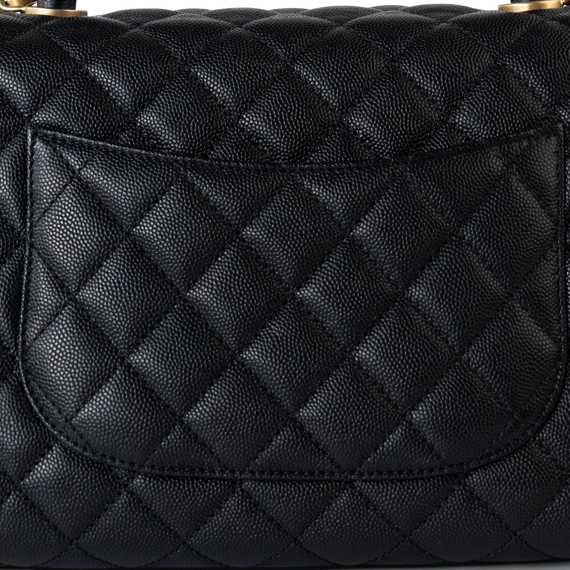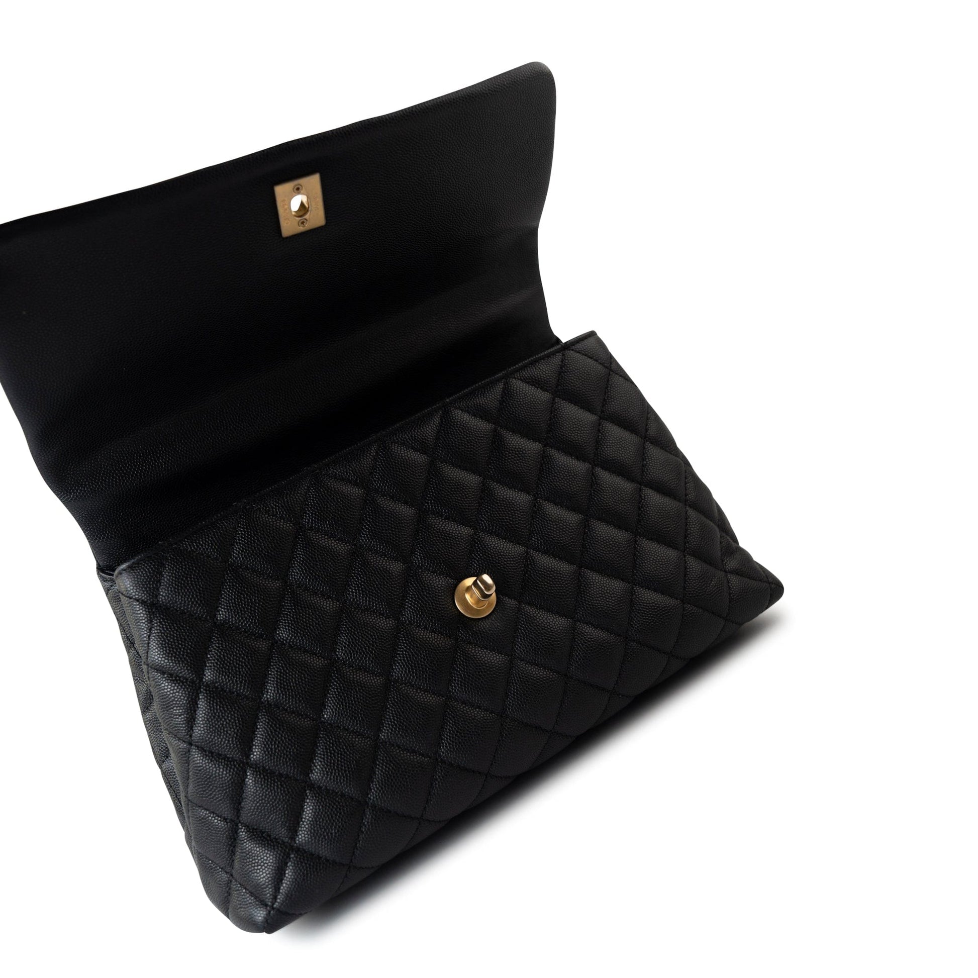 Black Caviar Quilted Coco Handle Medium Antique Gold Hardware