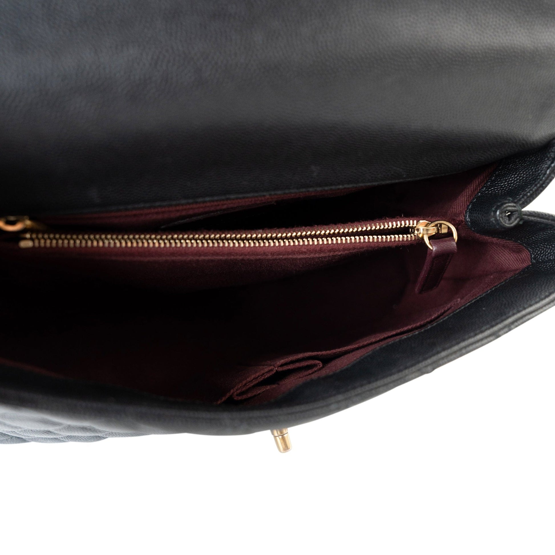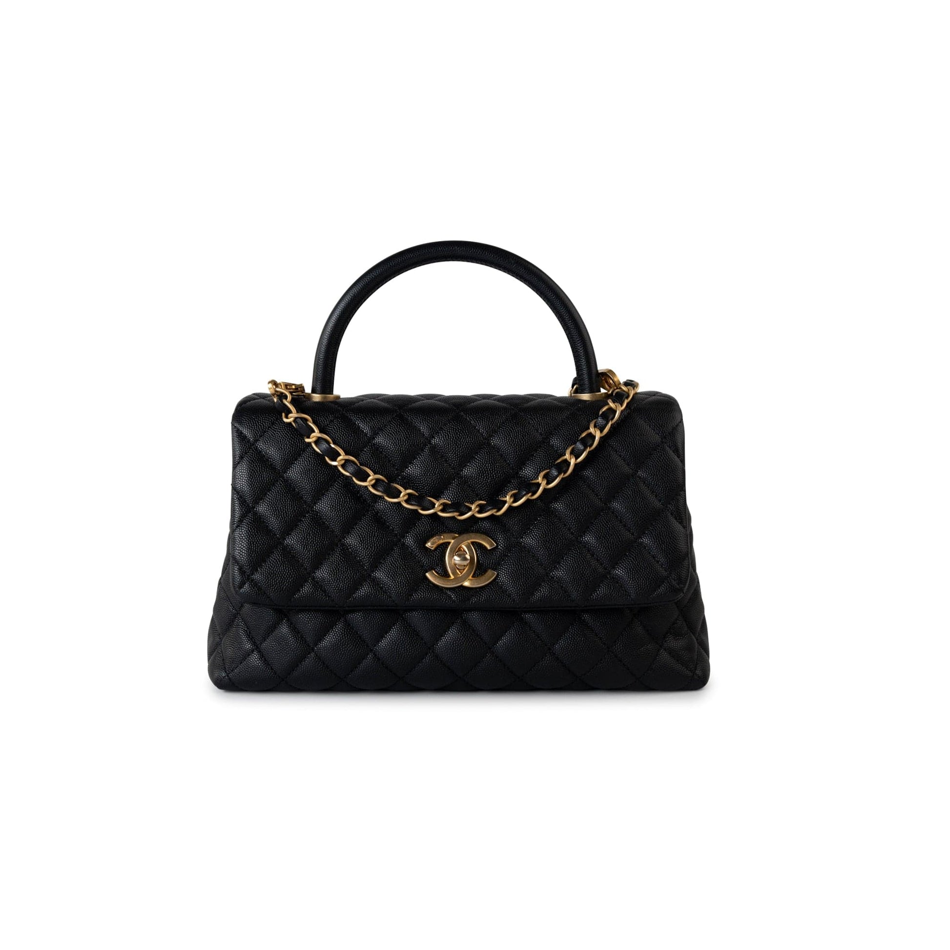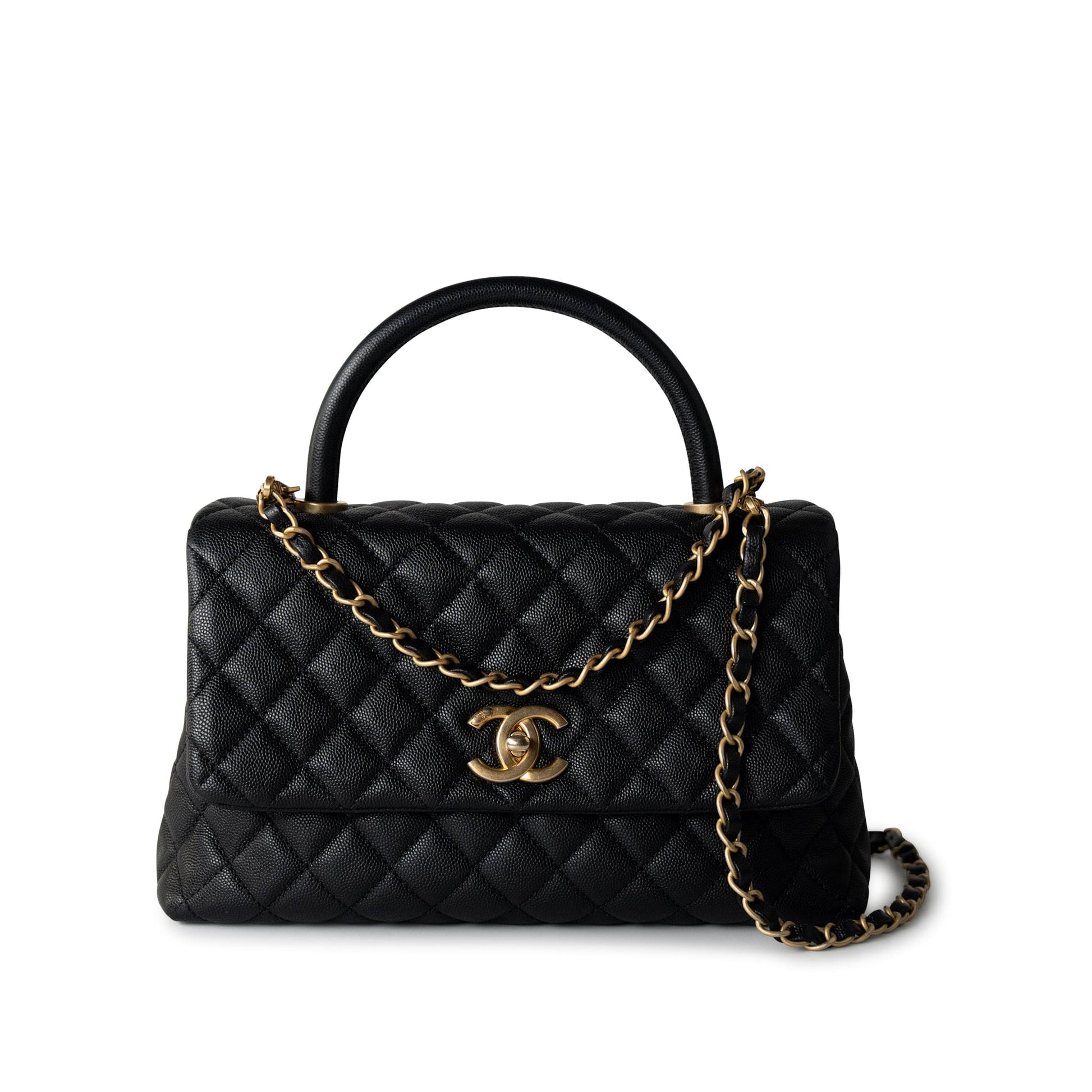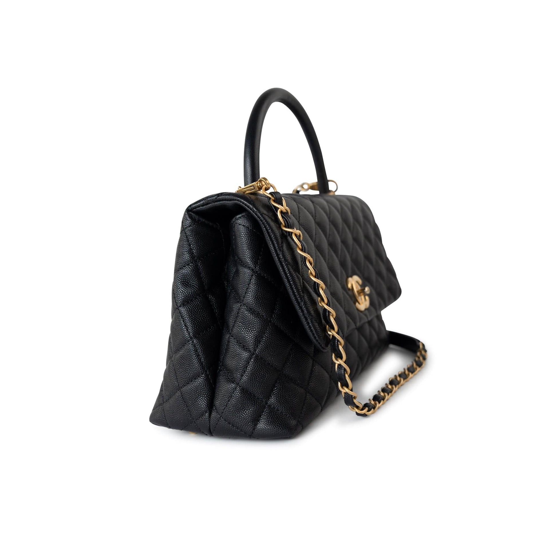 Black Caviar Quilted Coco Handle Medium Antique Gold Hardware