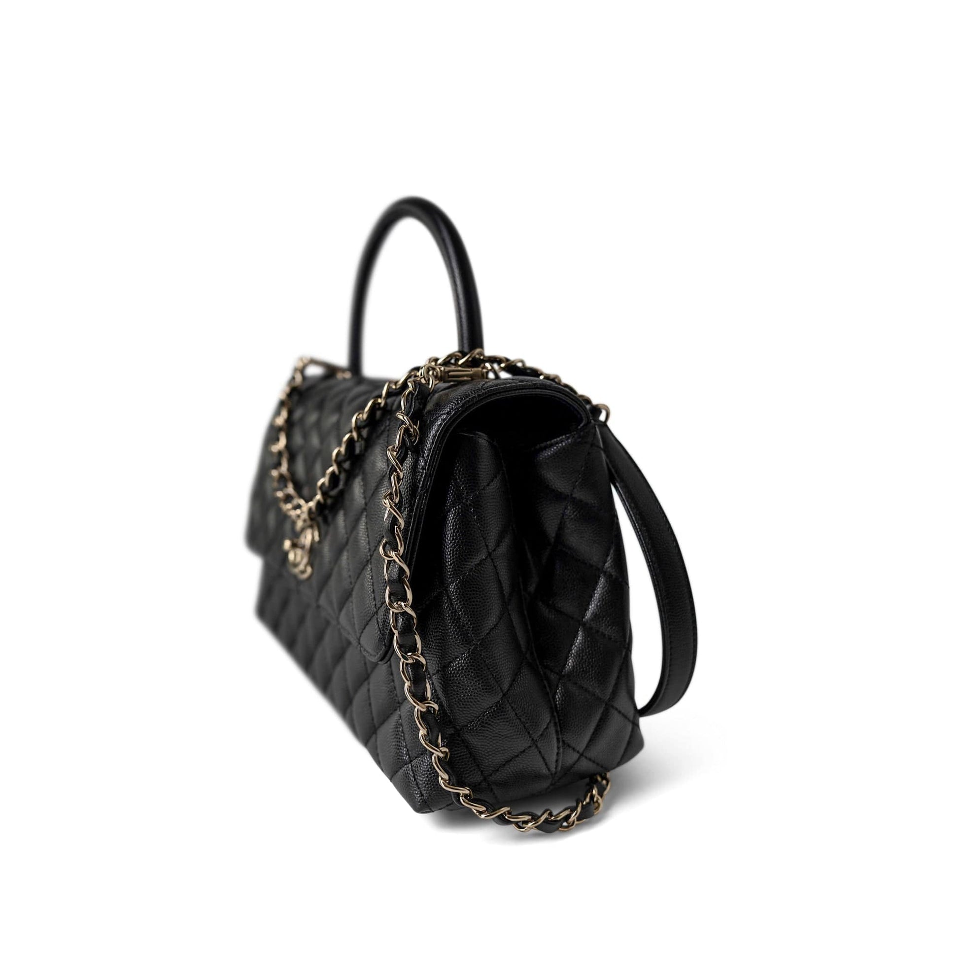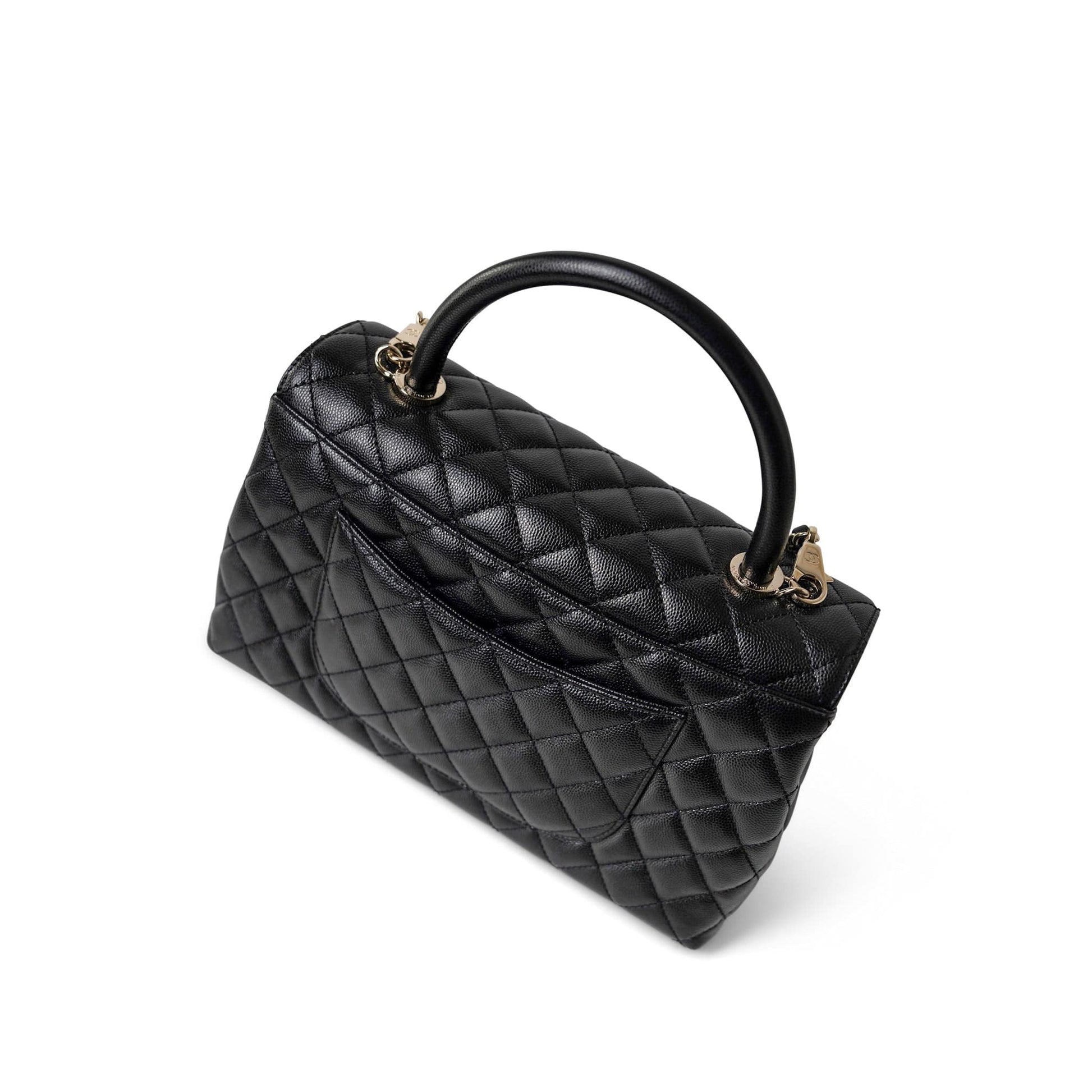 Black Caviar Quilted Coco Handle Medium Light Gold Hardware