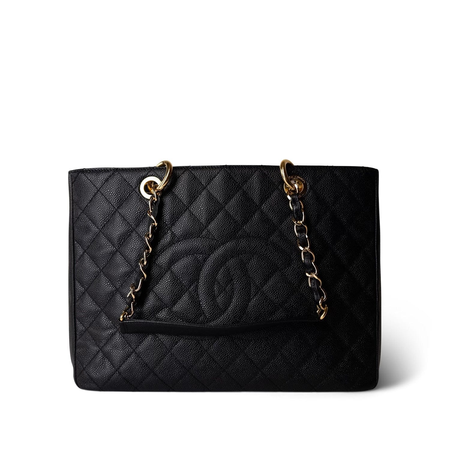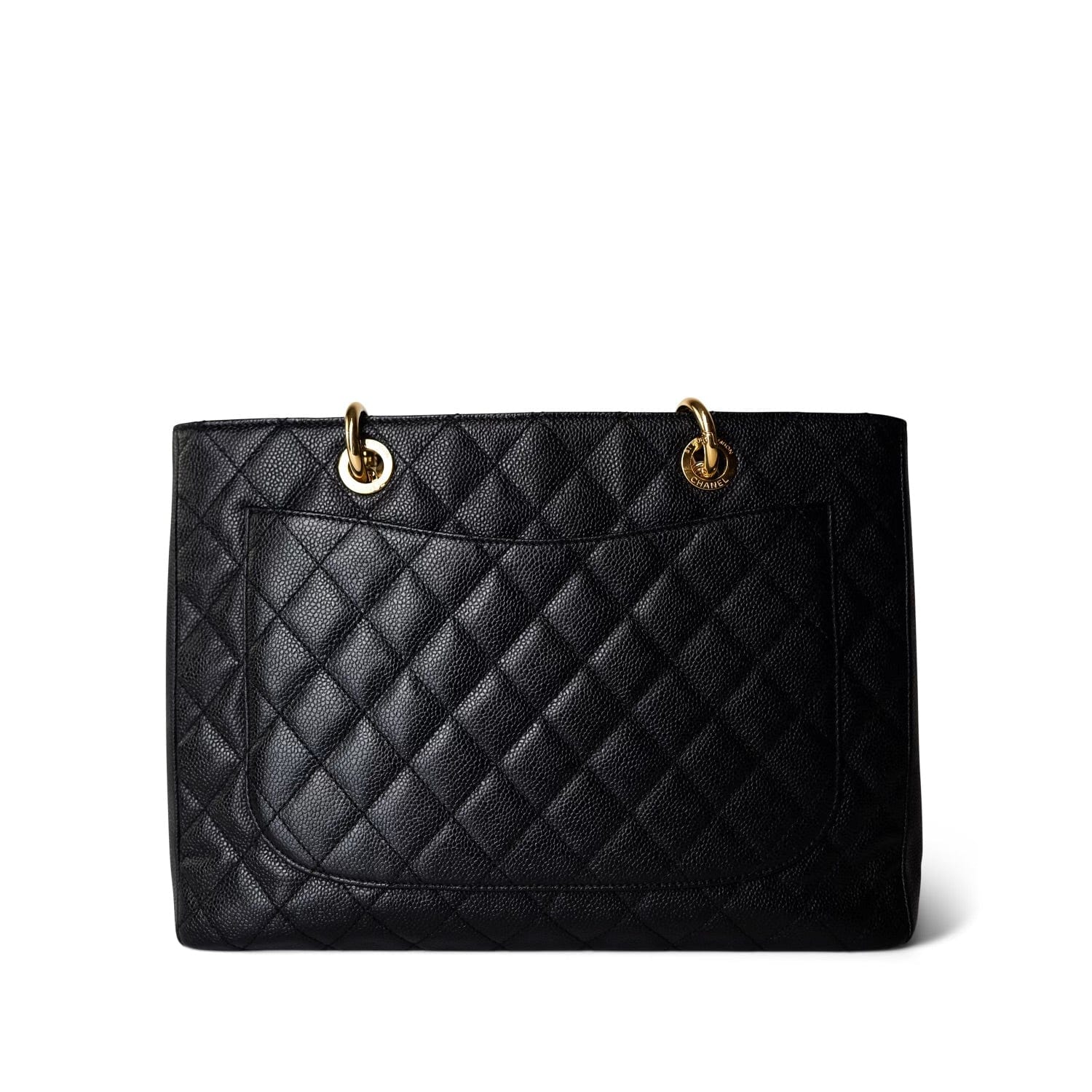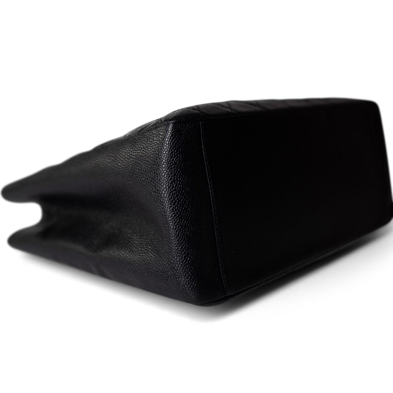Black Caviar Quilted Grand Shopping Tote Gold Hardware