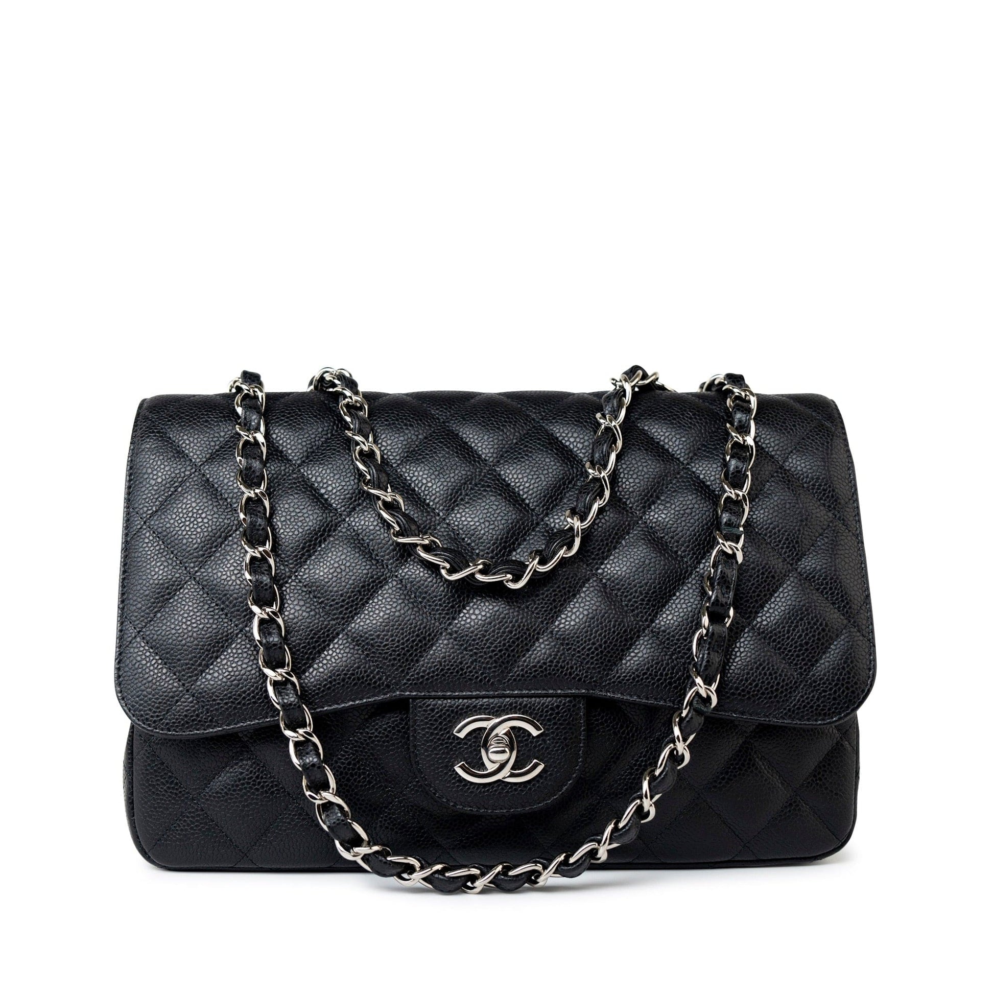Black Caviar Quilted Jumbo Single Flap Silver Hardware