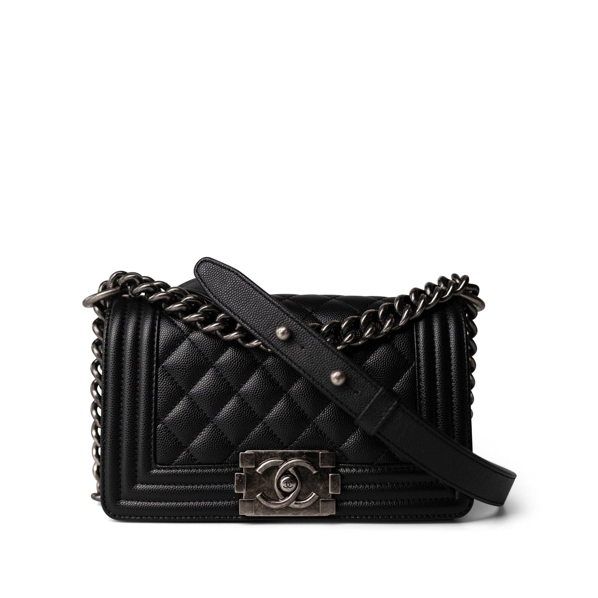 Black Caviar Quilted Le Boy Bag Small Ruthenium Hardware