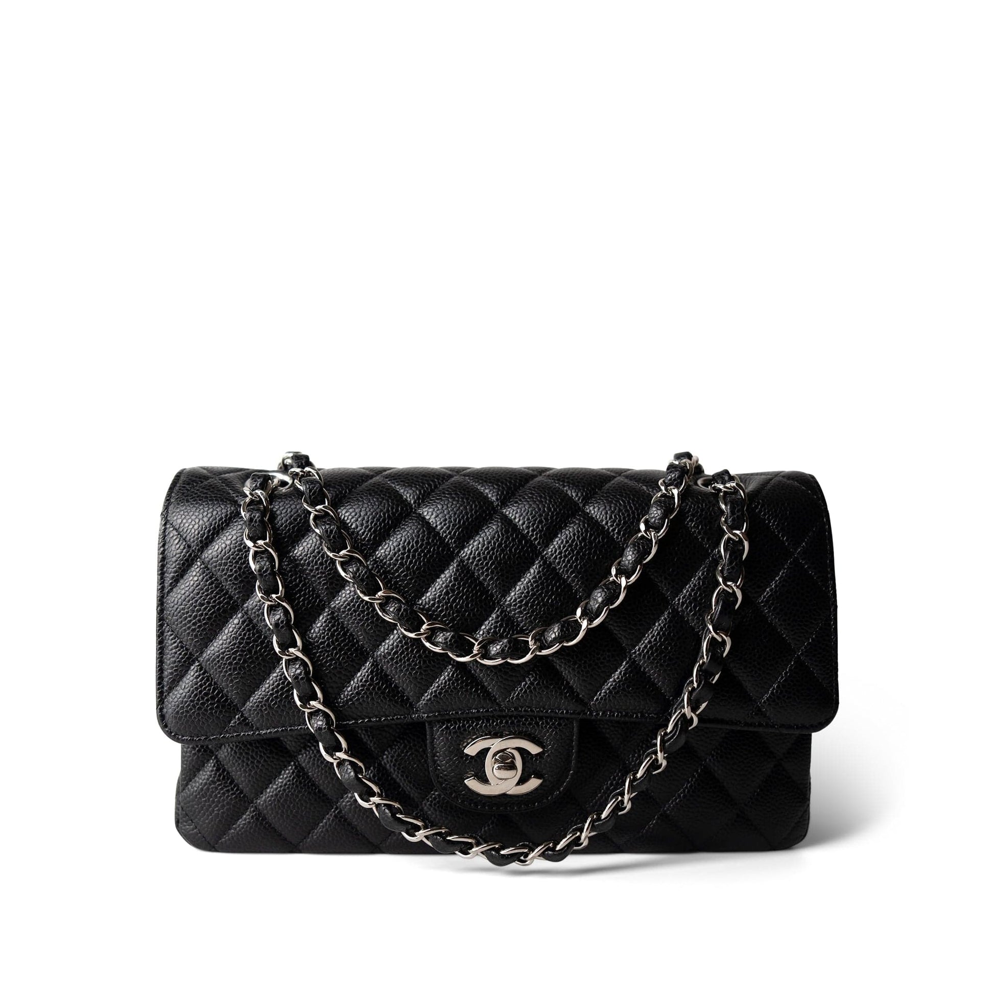 Black Caviar Quilted Medium Classic Flap Silver Hardware