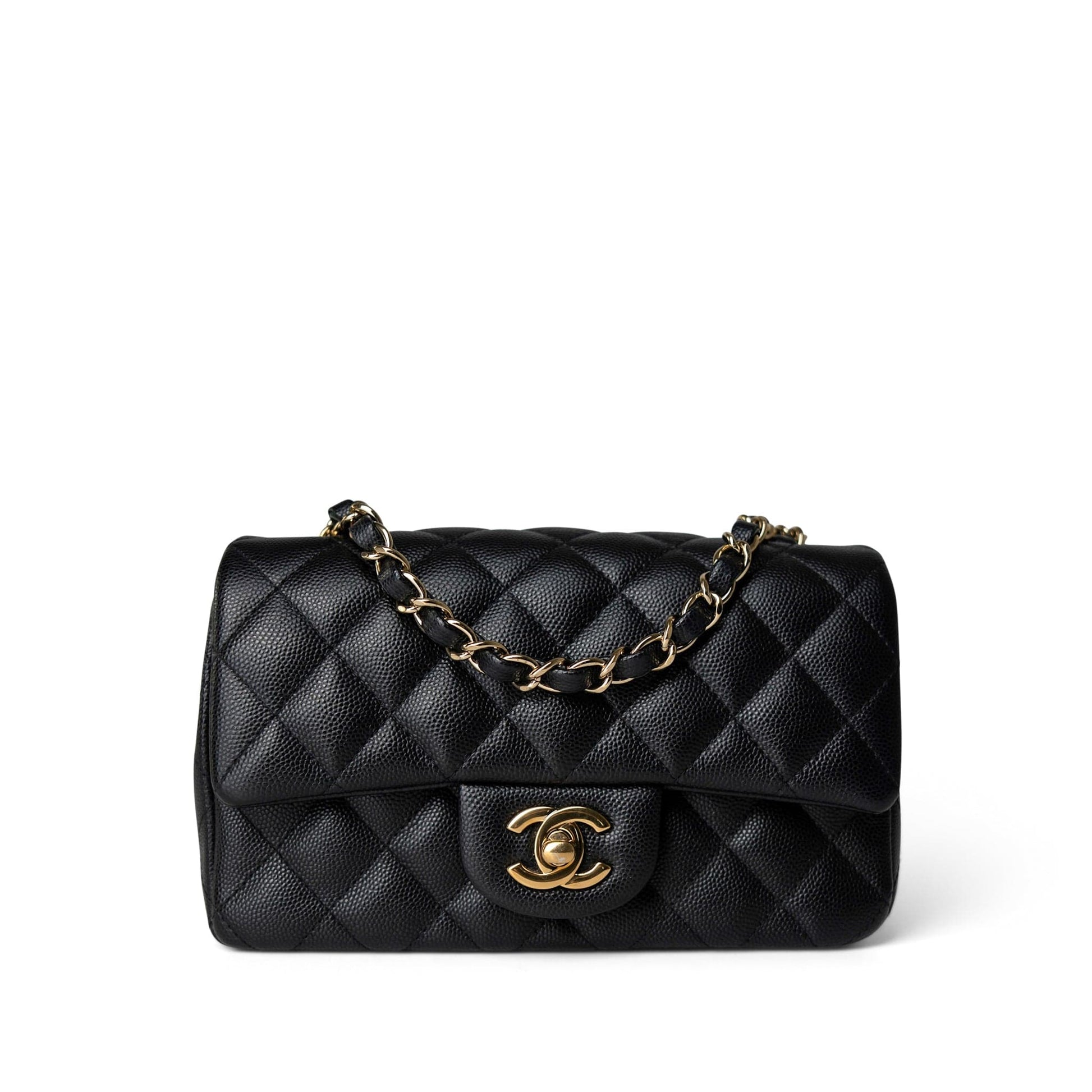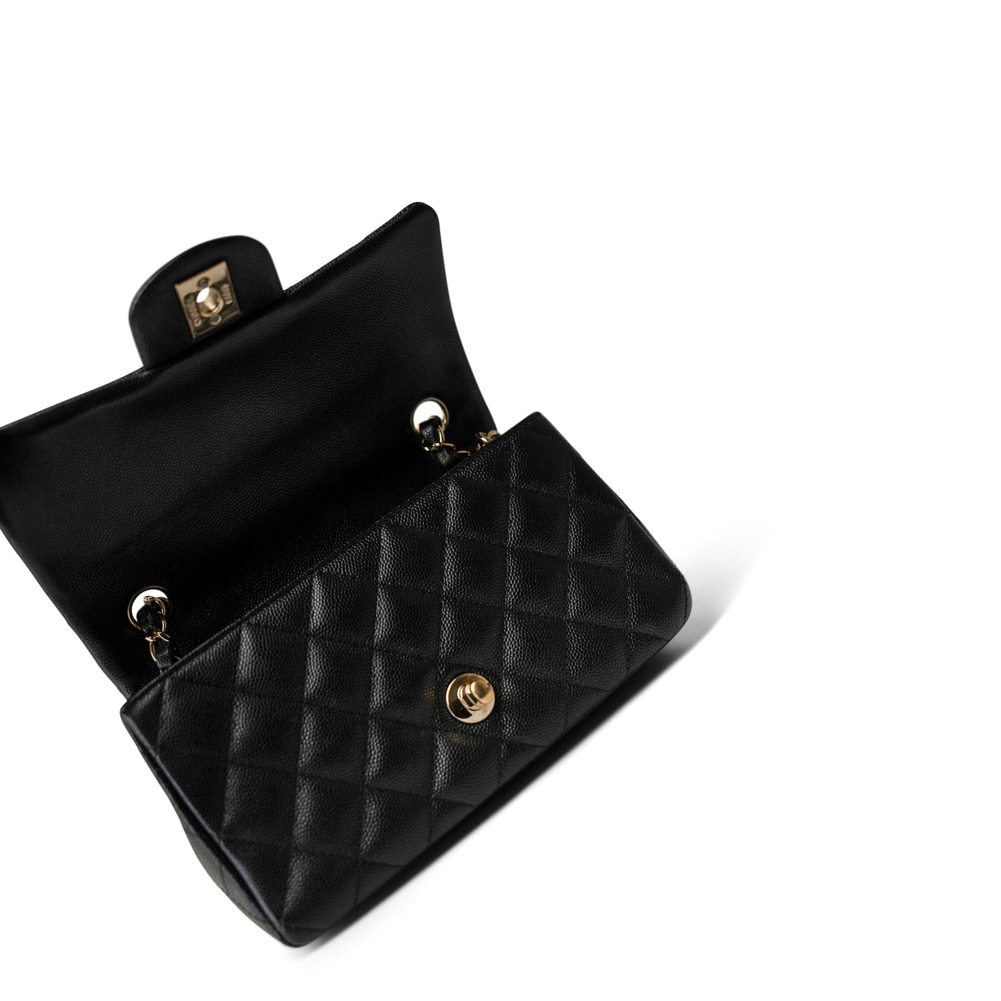 Black Caviar Quilted Mini Rectangular Flap Gold Hardware