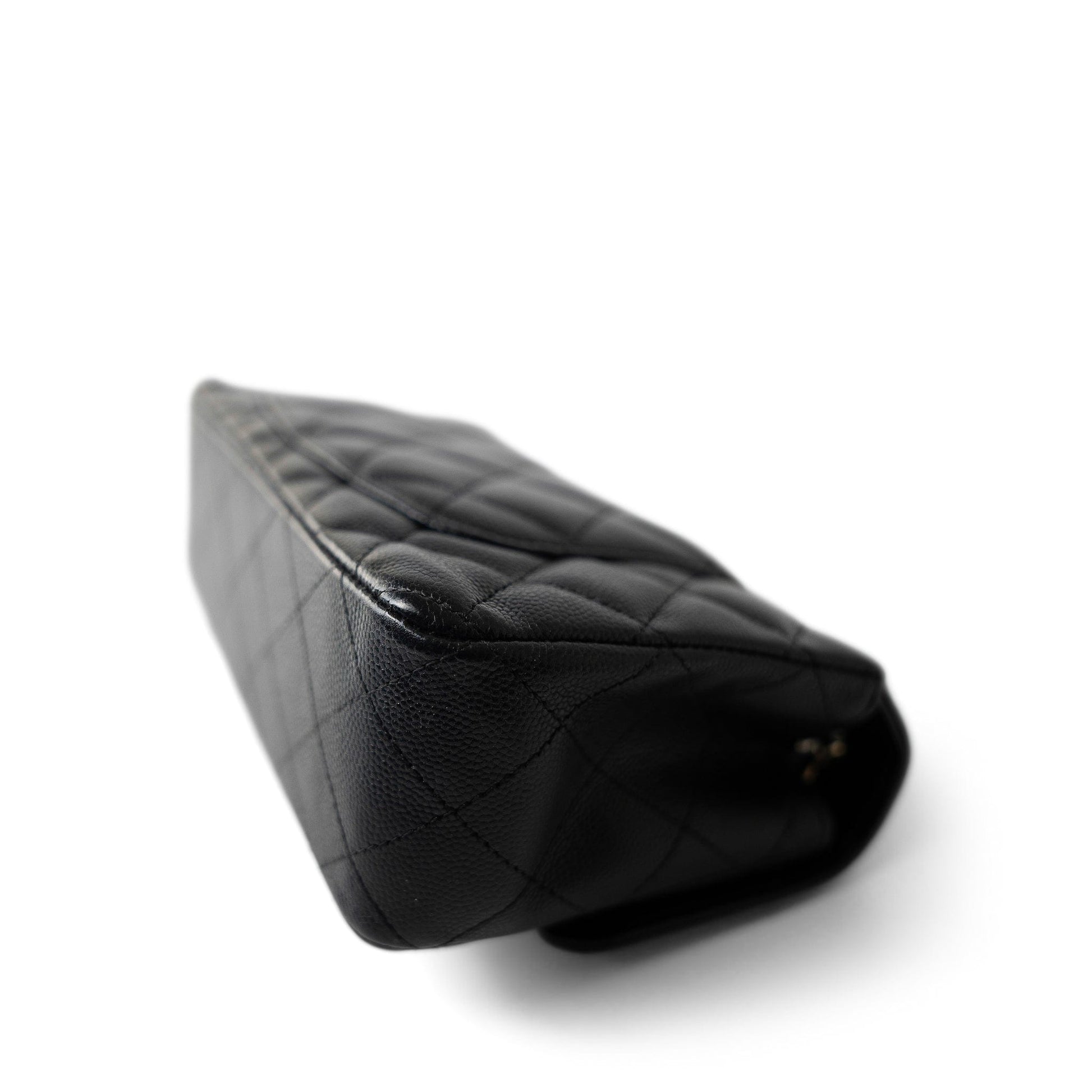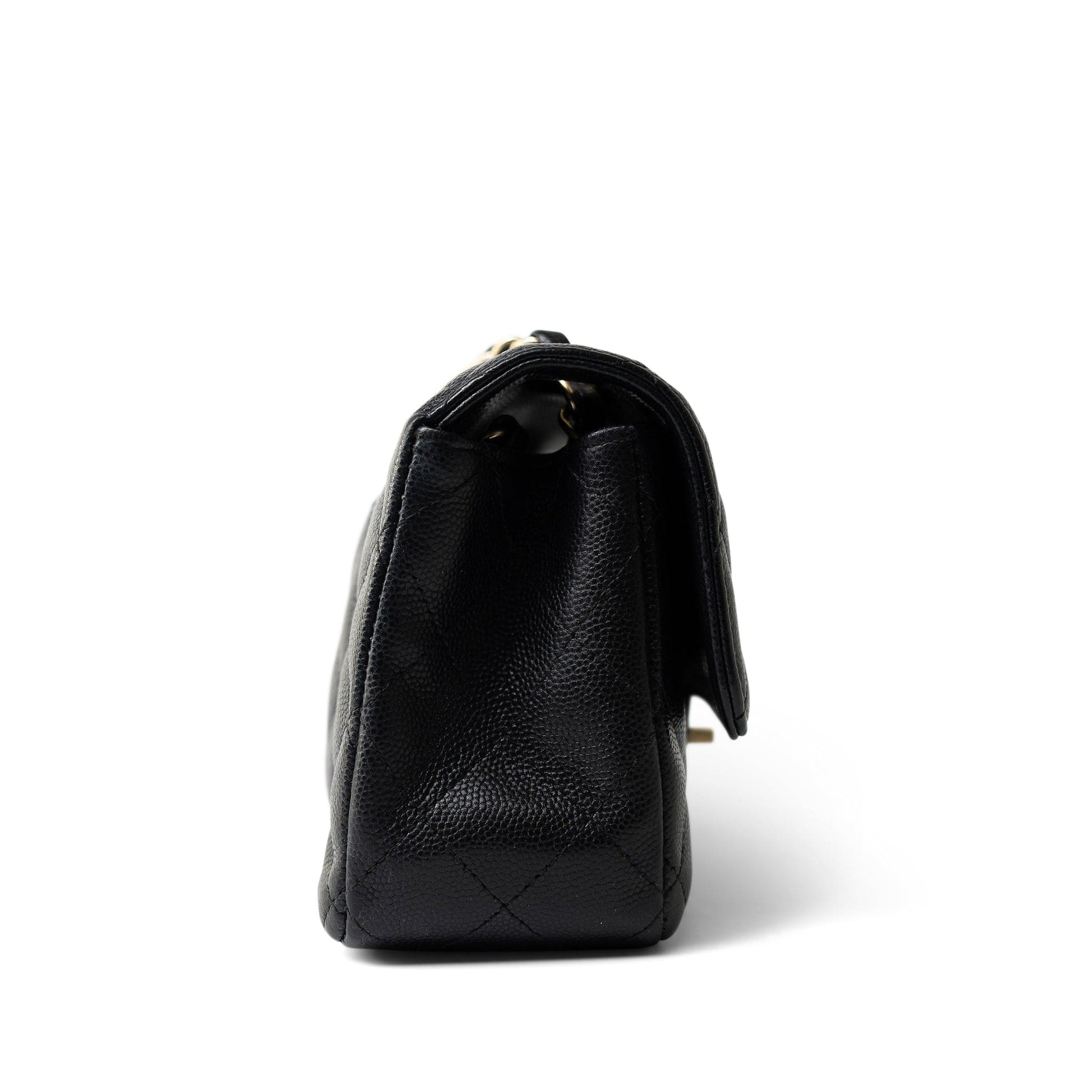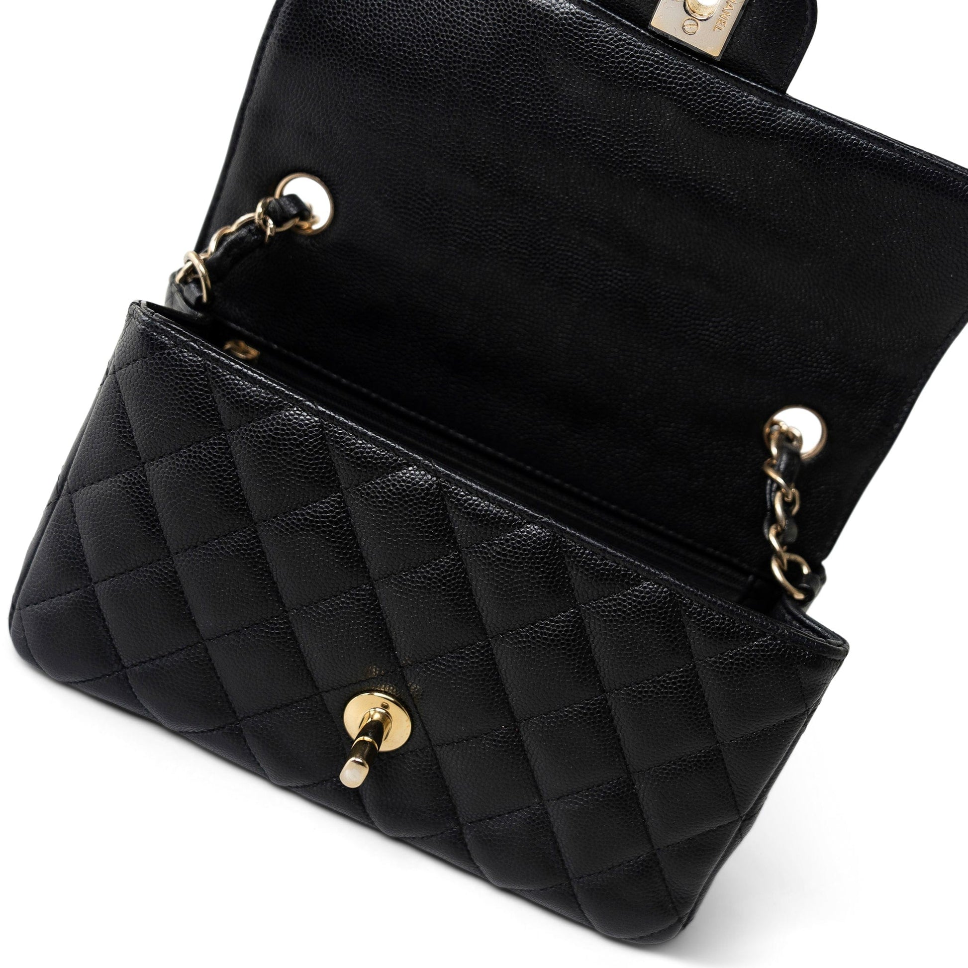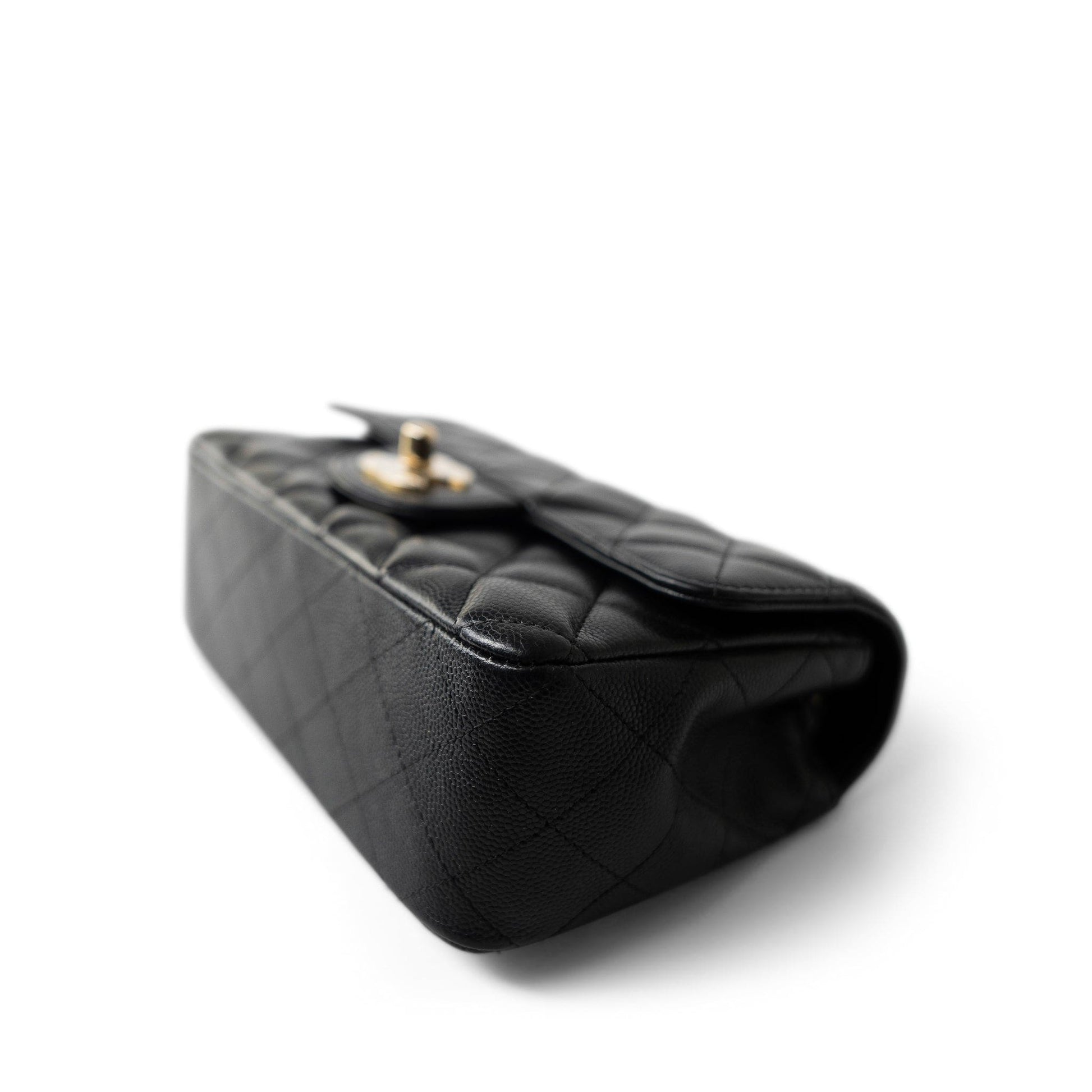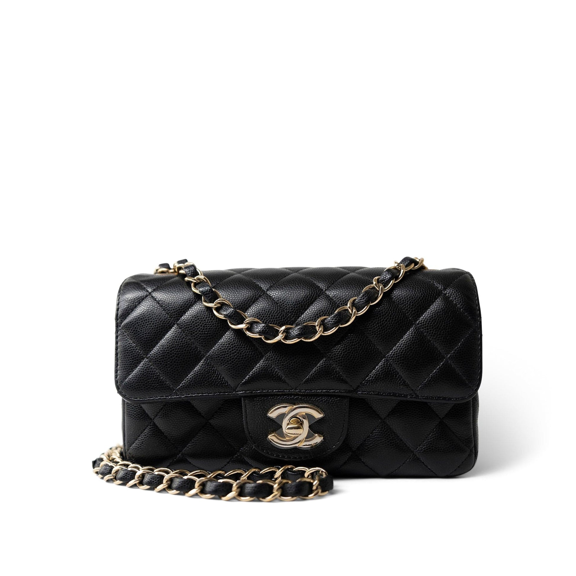 Black Caviar Quilted Mini Rectangular Flap Light Gold Hardware
