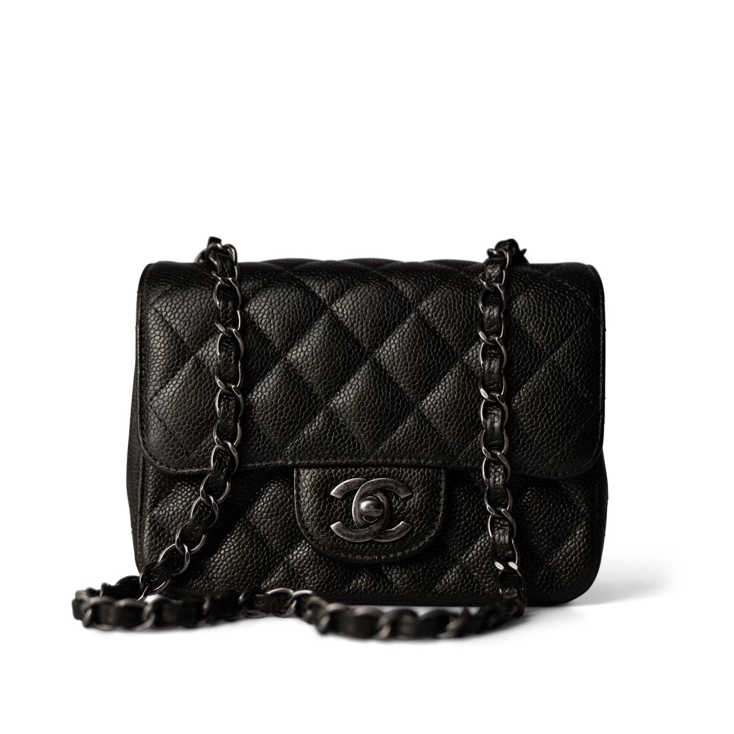 Black Caviar Quilted Mini Square Flap Ruthenium Hardware
