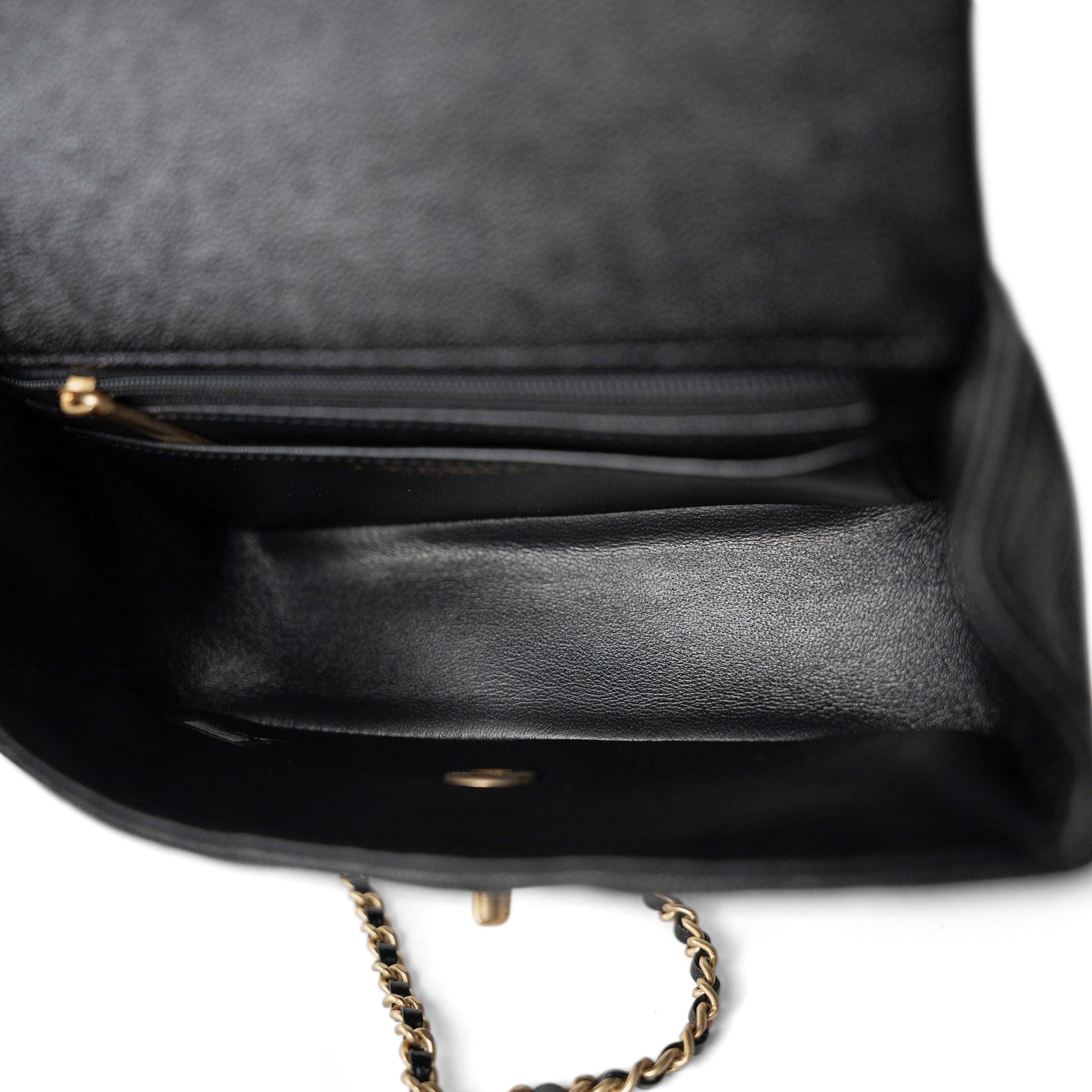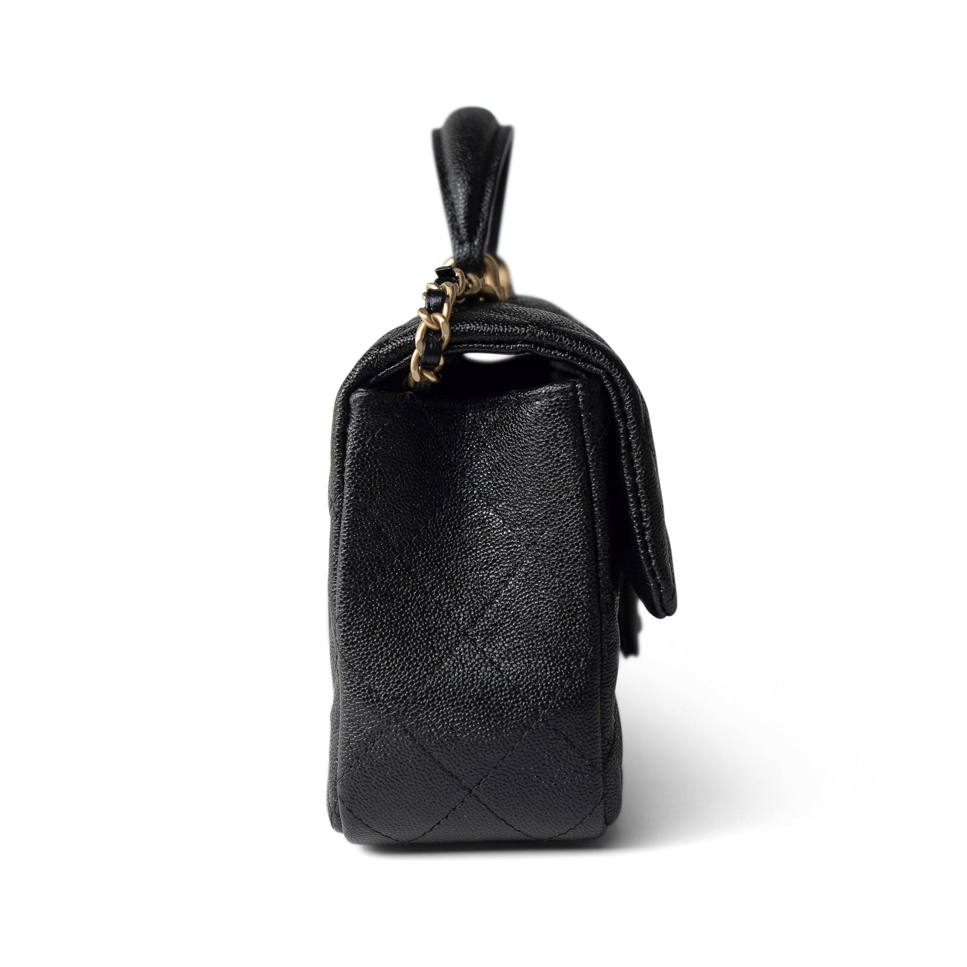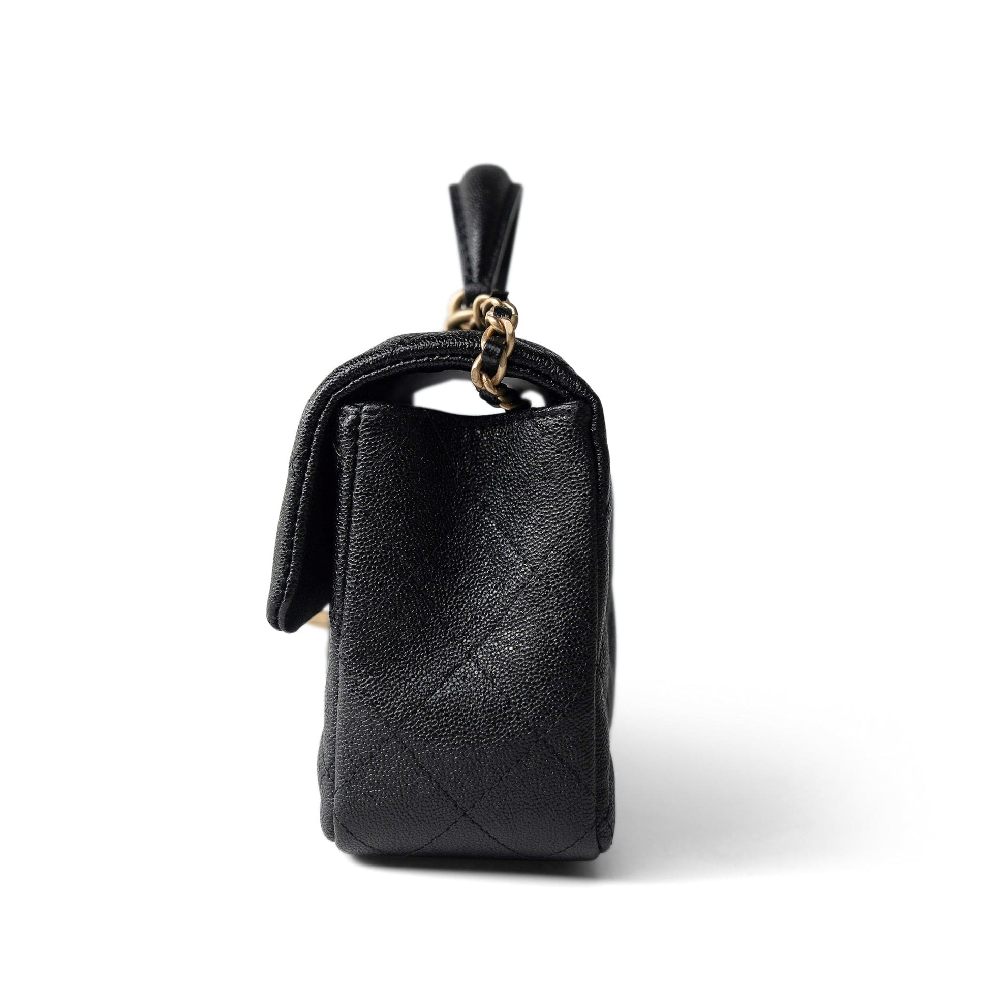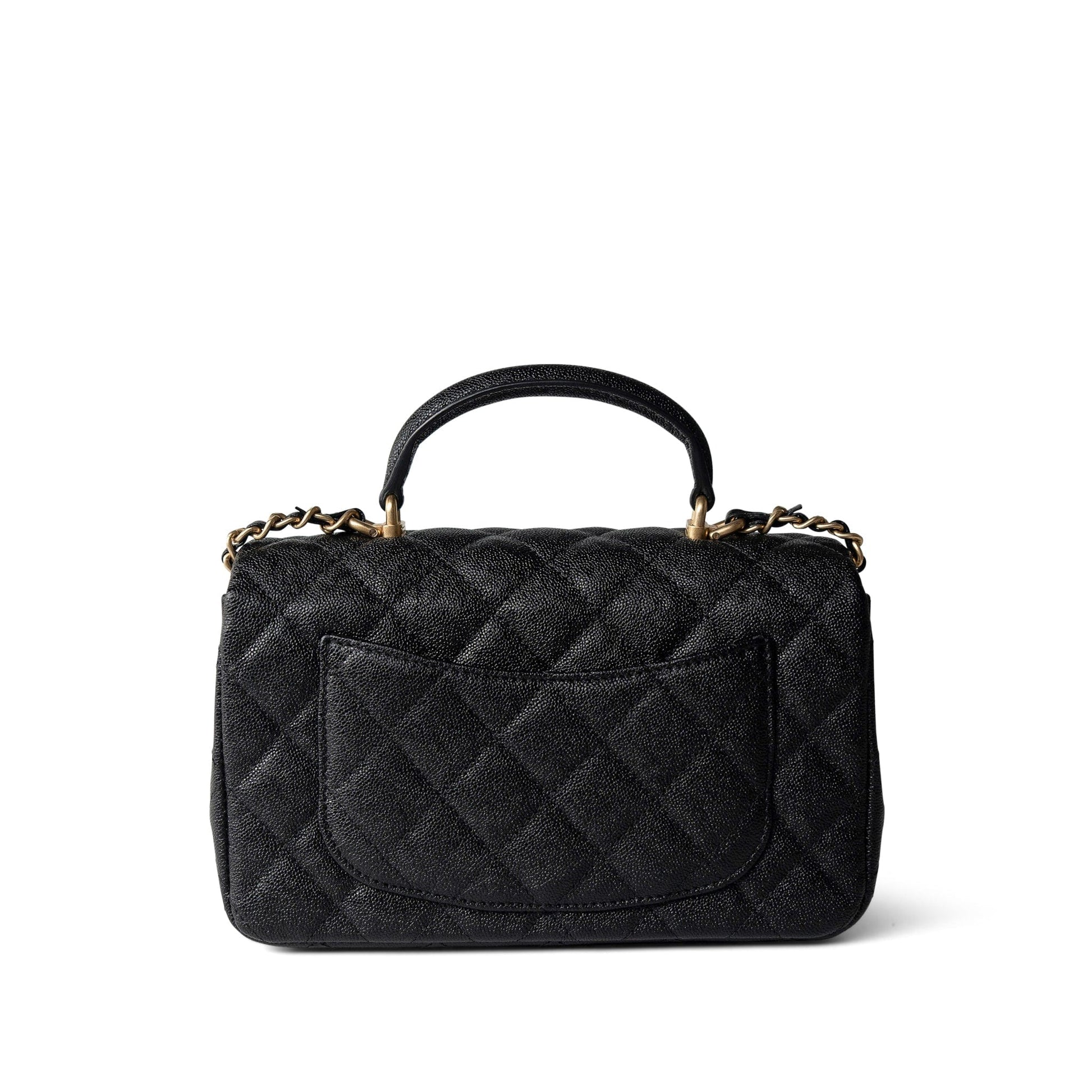 Black Caviar Quilted Mini Top Handle Antique Gold Hardware