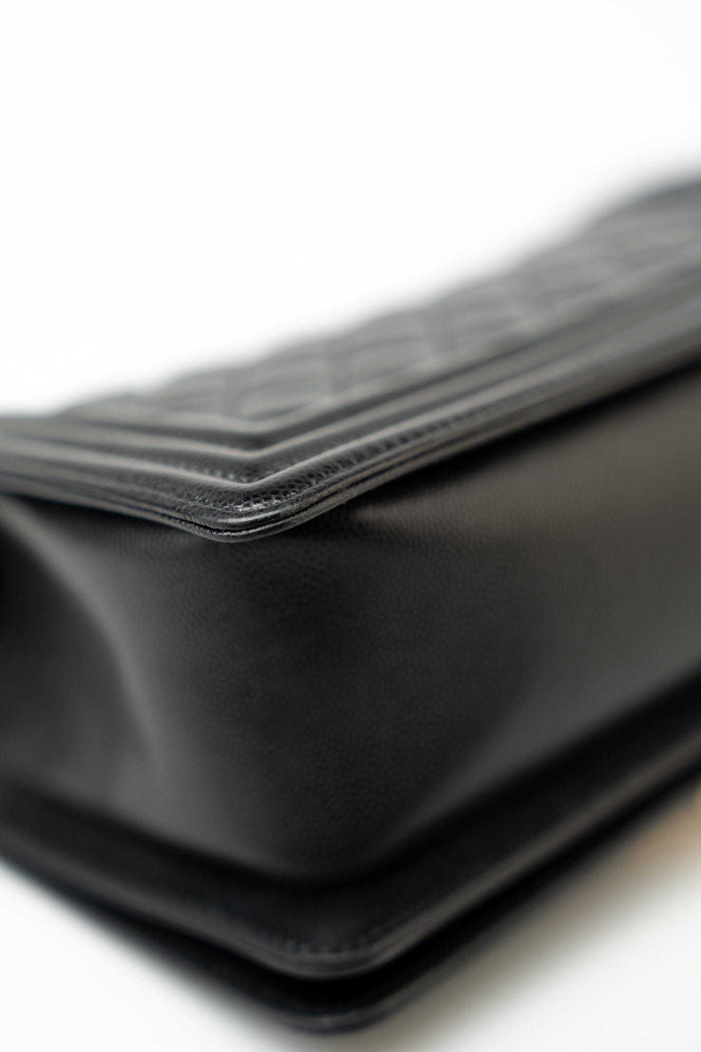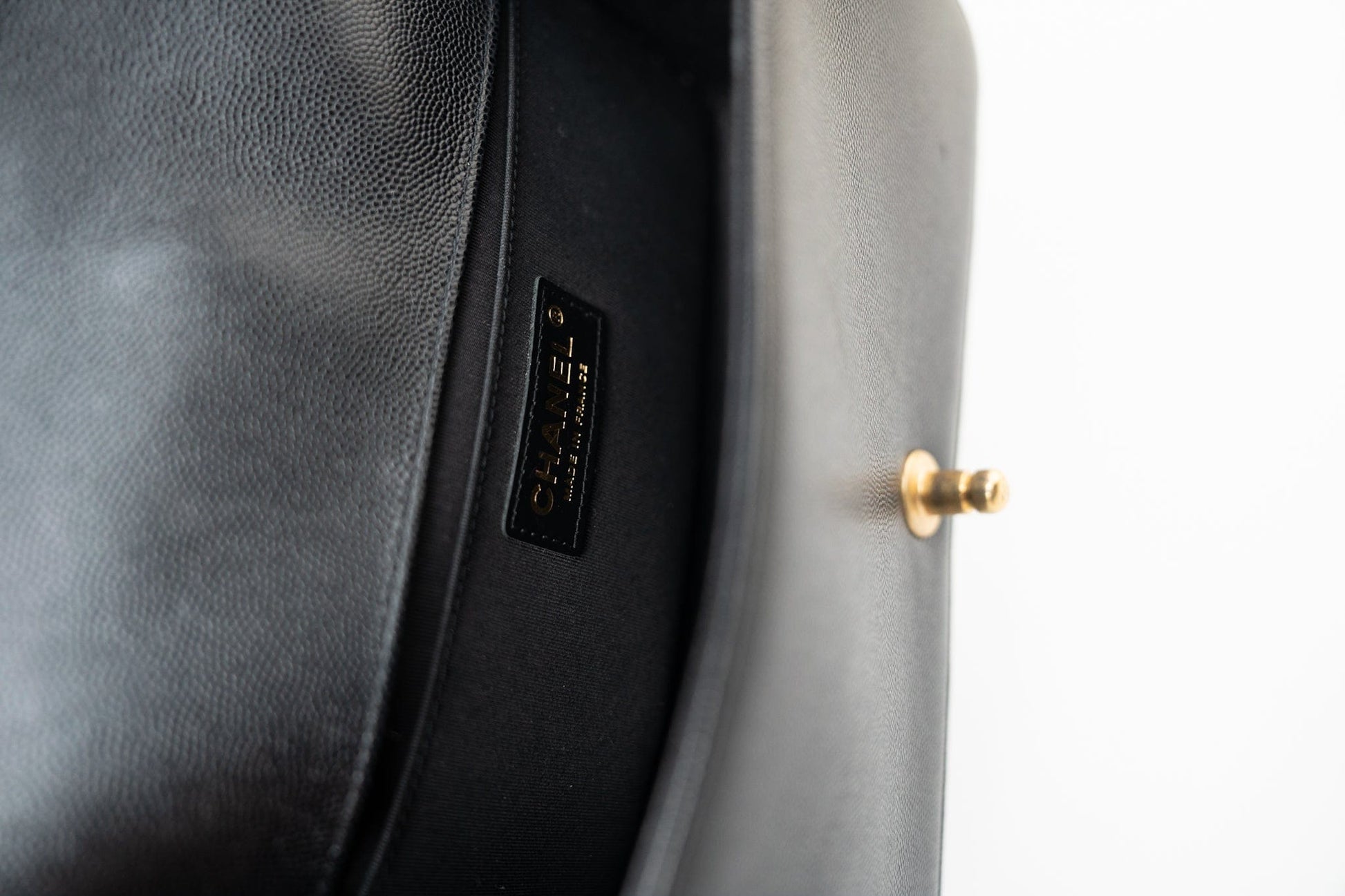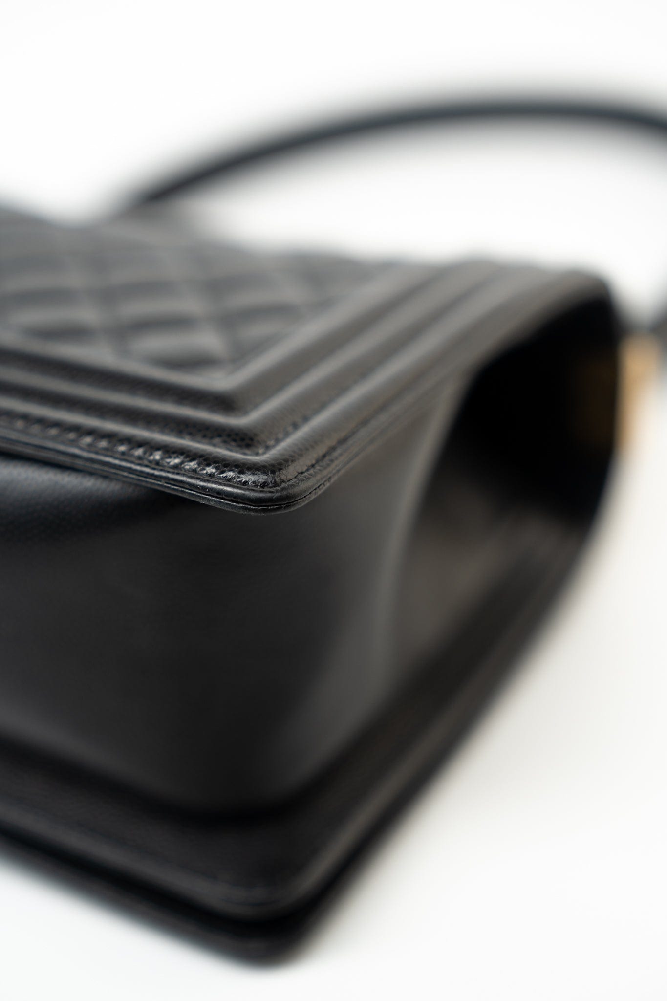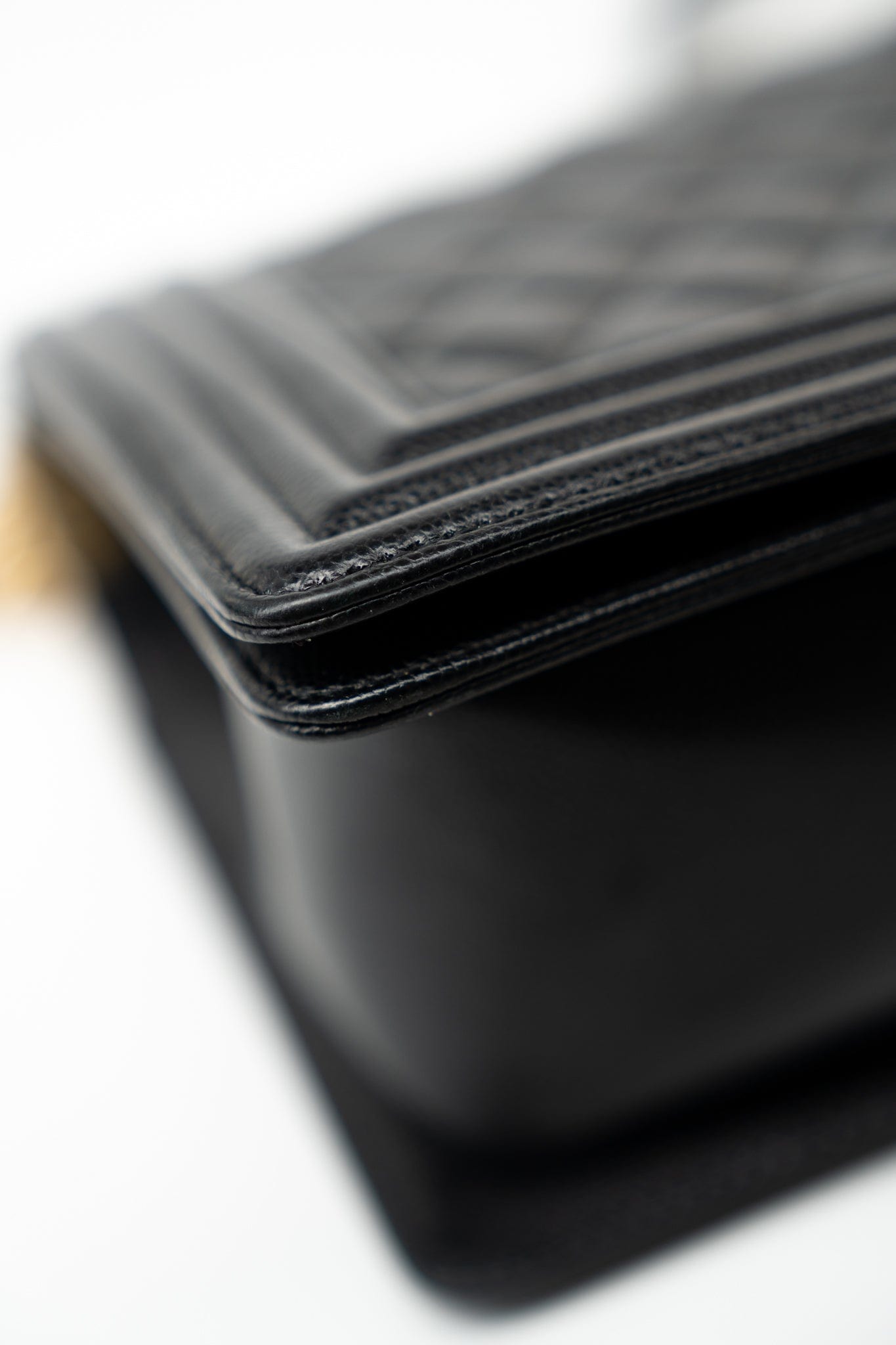Black Caviar Quilted Old Medium Boy Bag Aged Gold Hardware