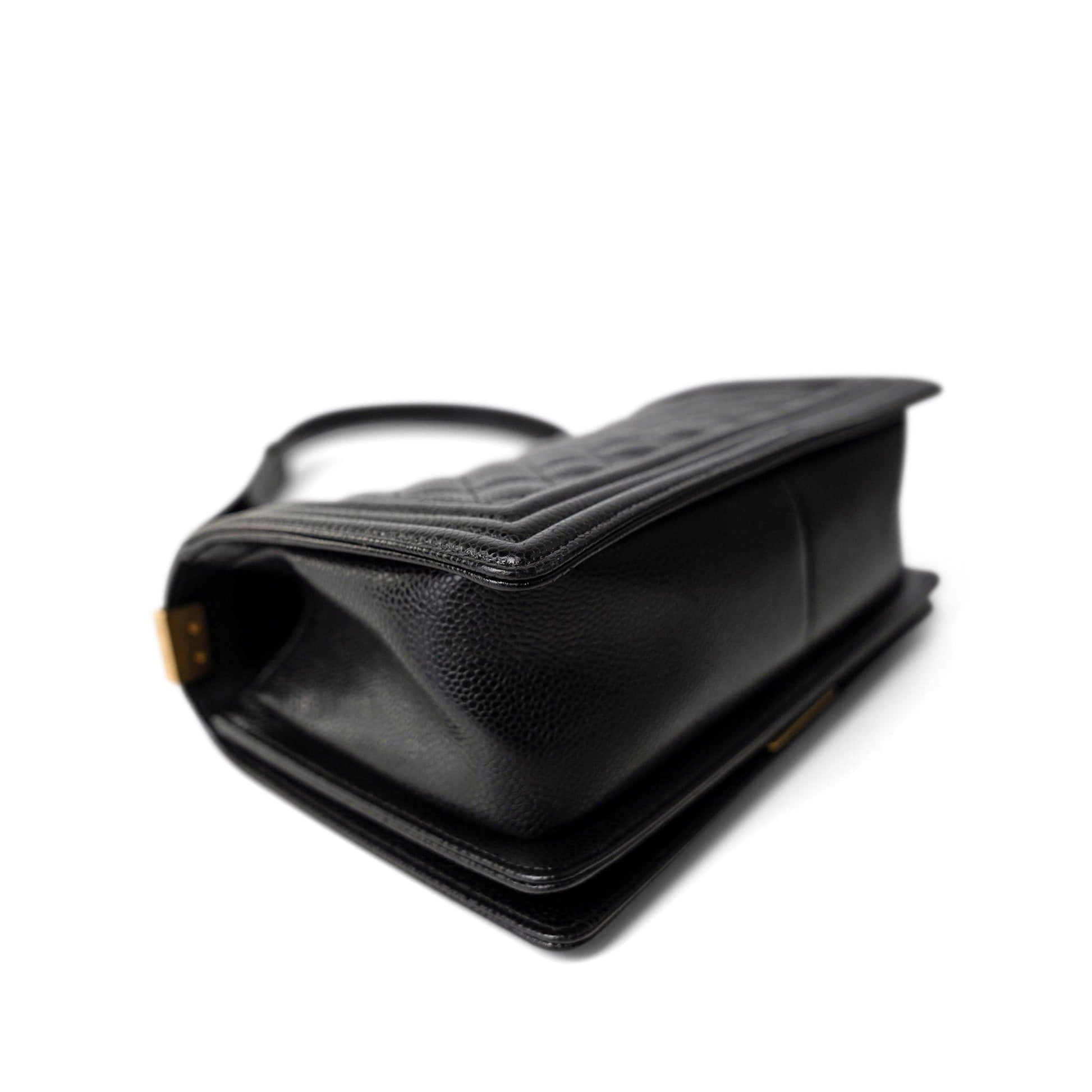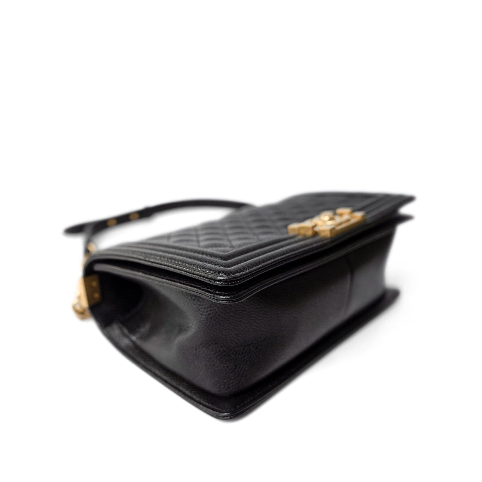 Black Caviar Quilted Old Medium Boy Bag Aged Gold Hardware