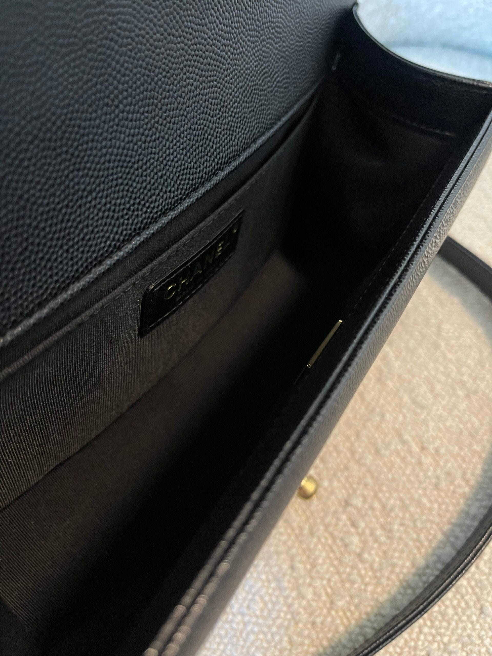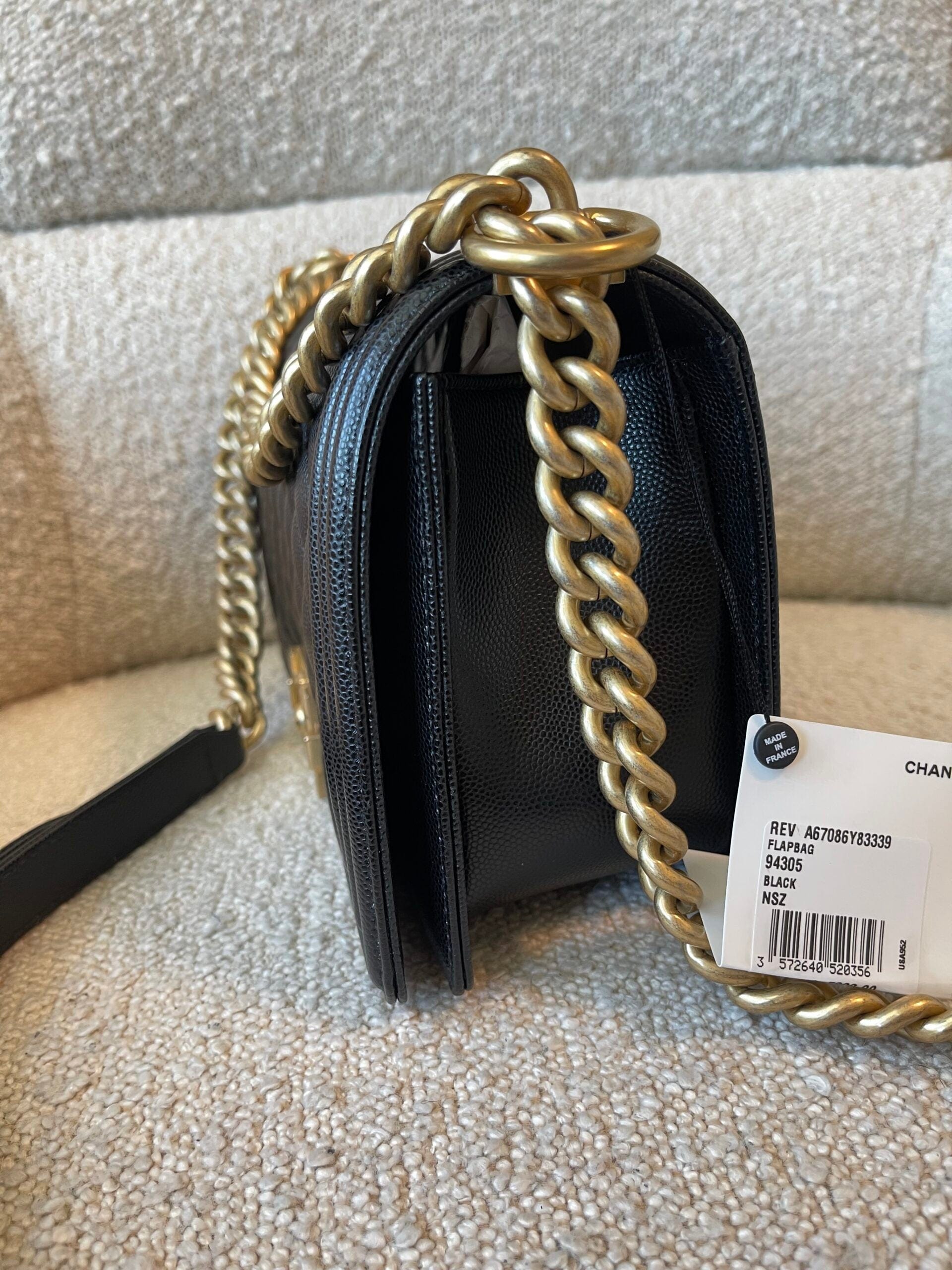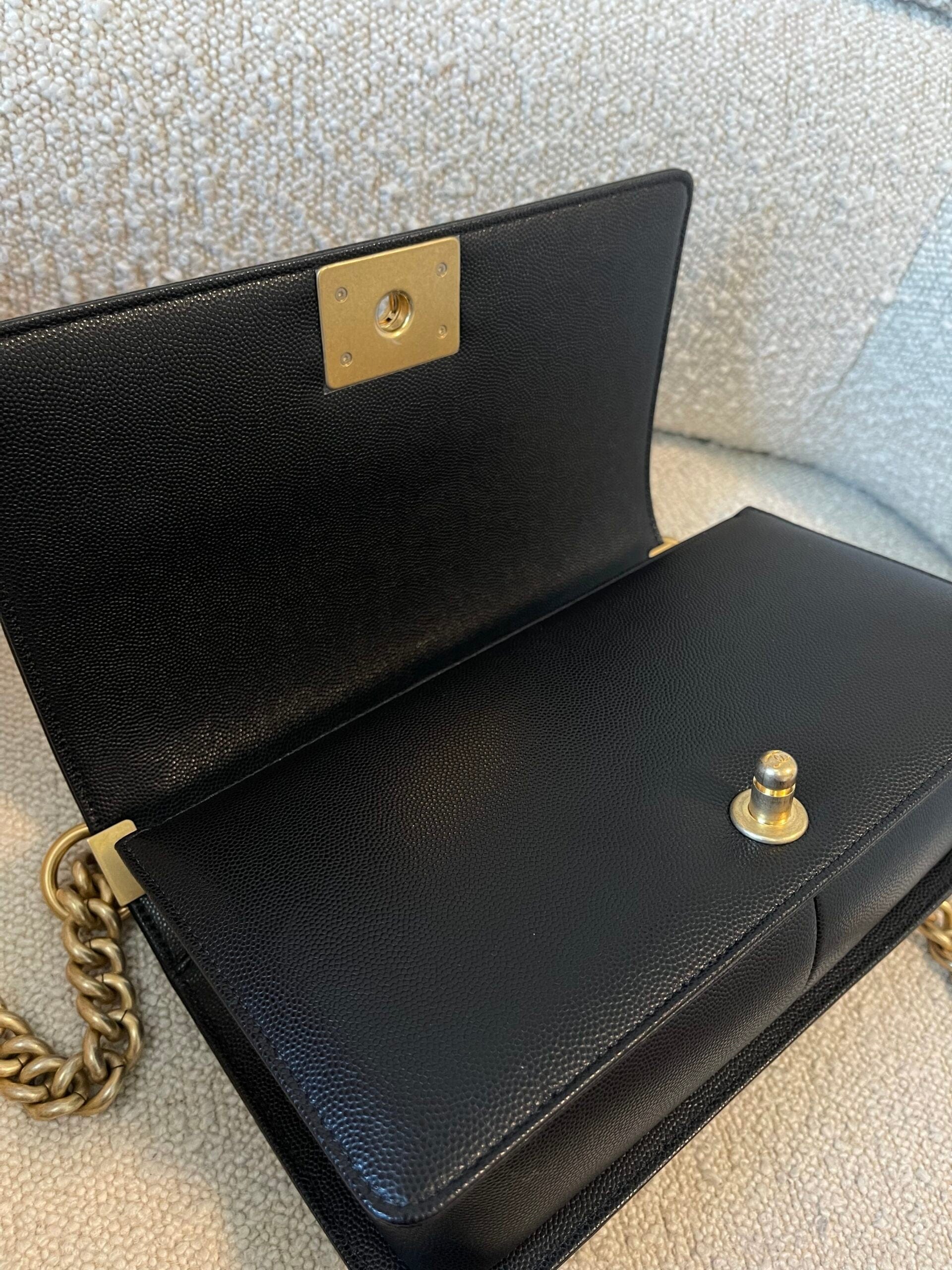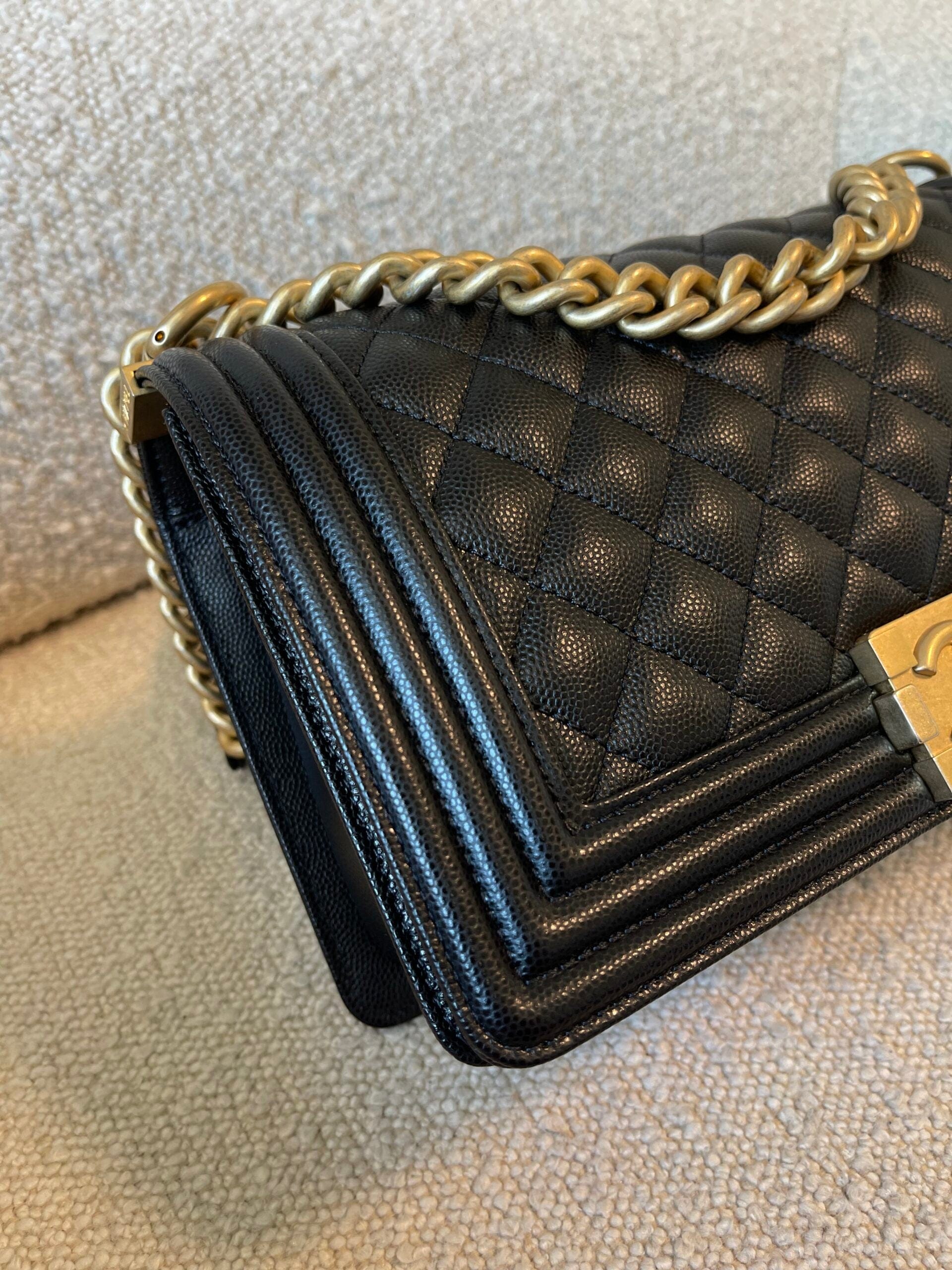 Black Caviar Quilted Old Medium Boy Bag AGHW