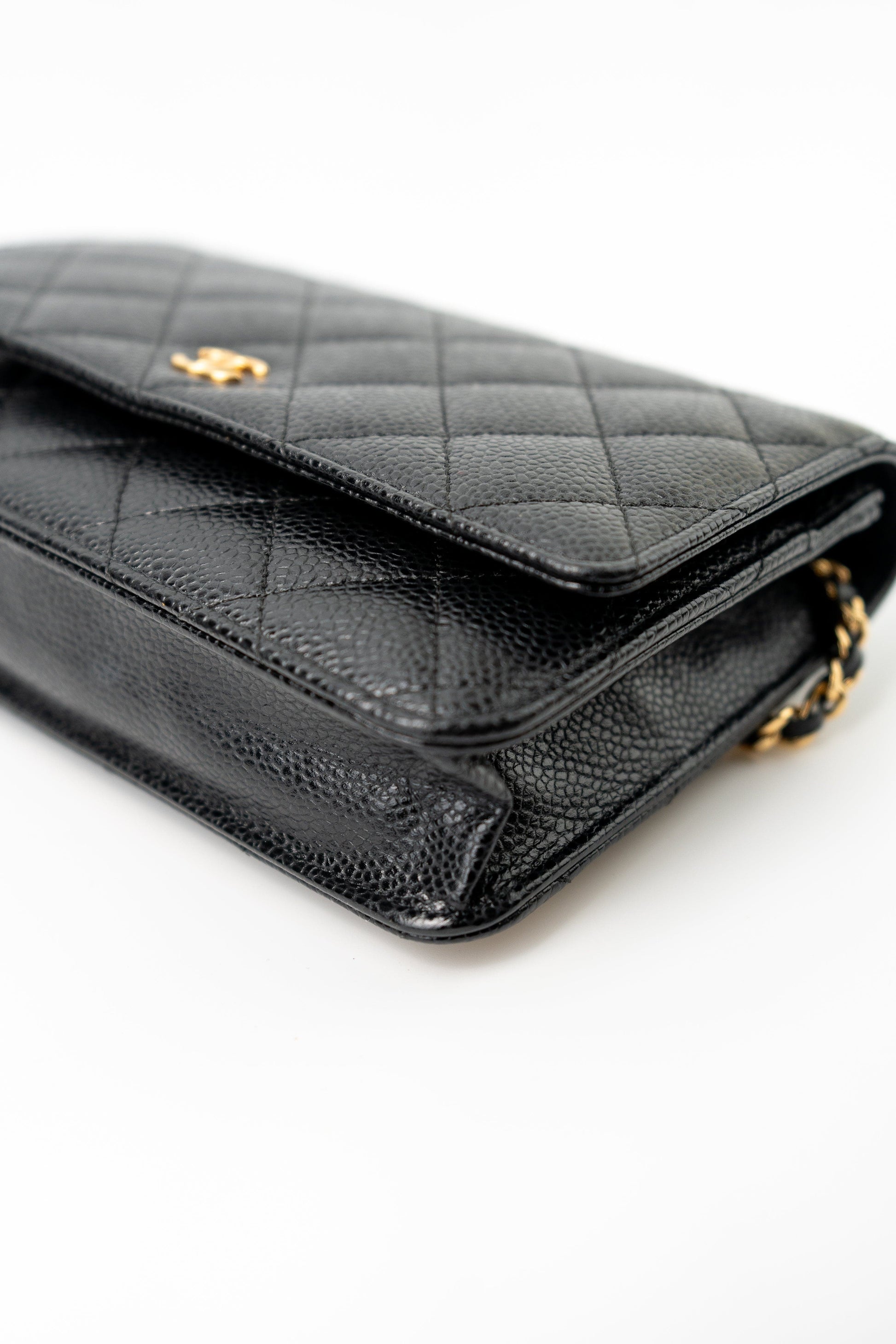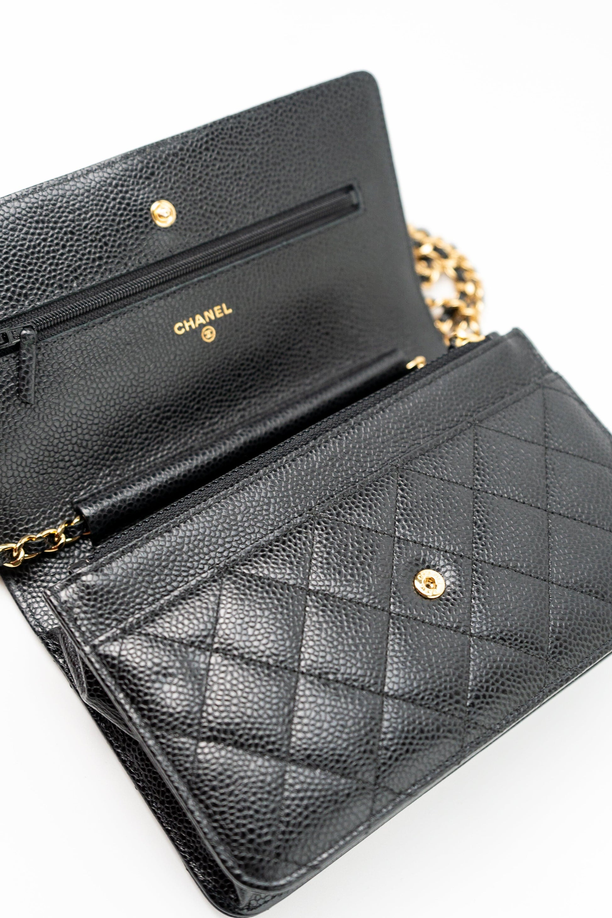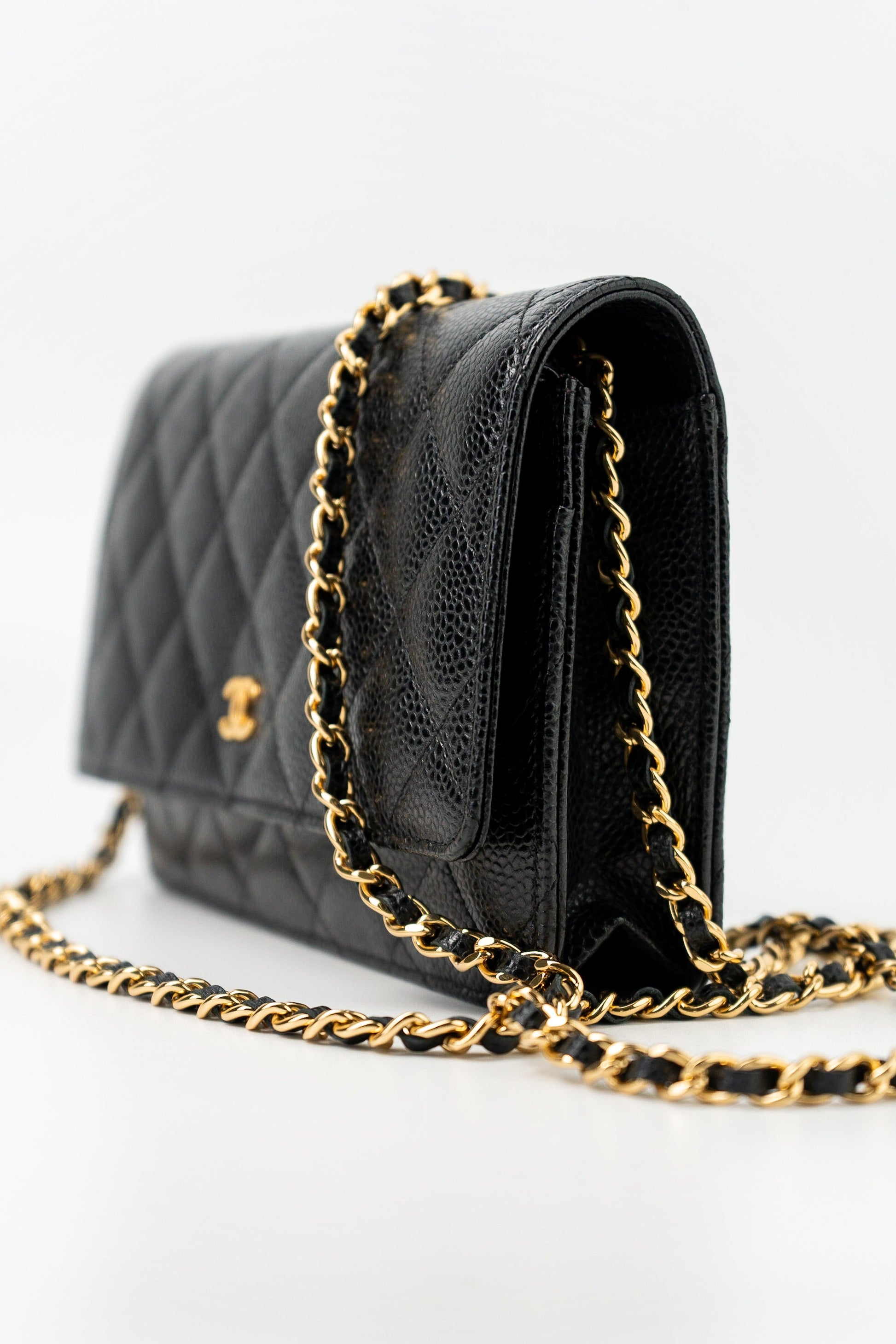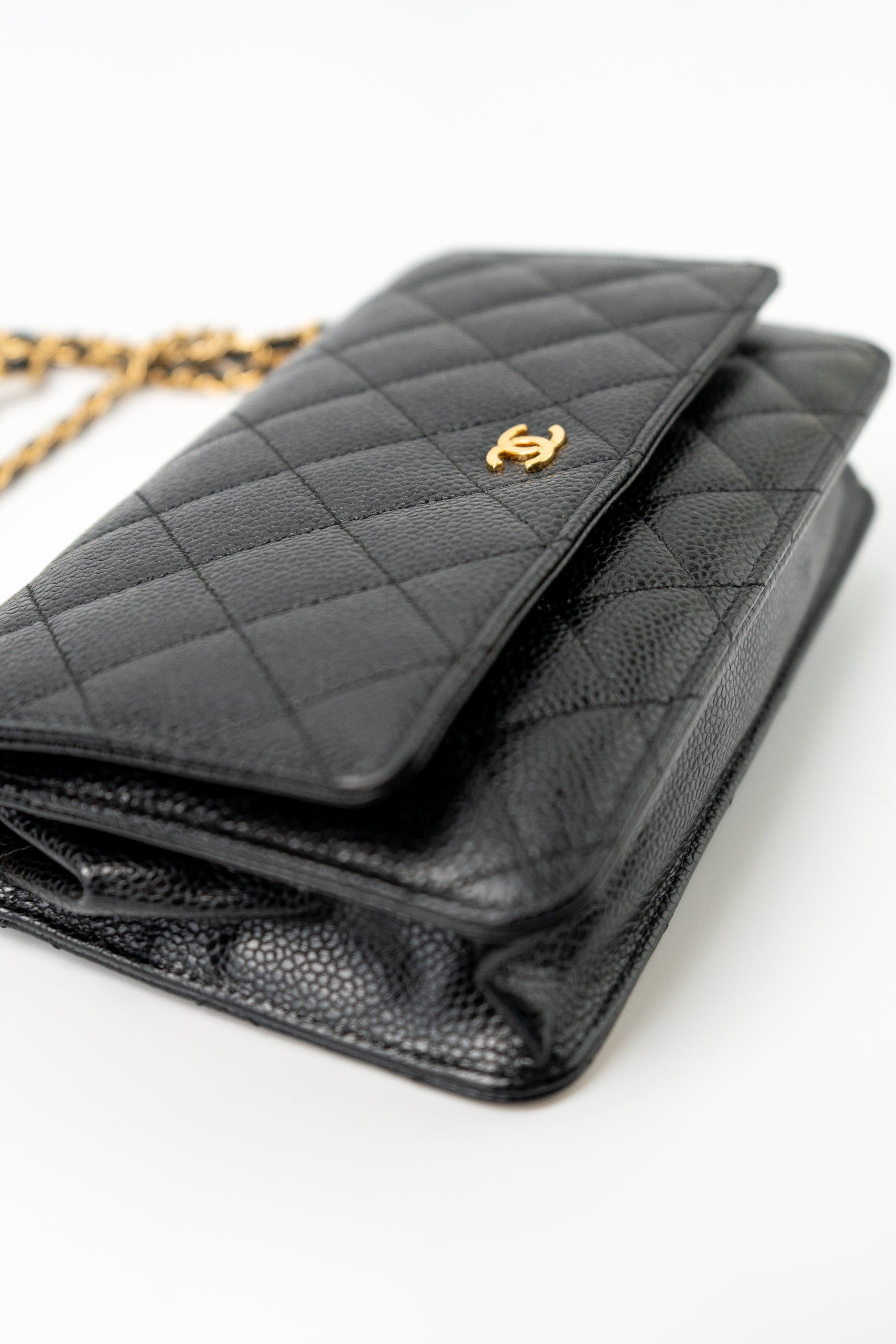 Black Caviar Quilted Wallet on Chain (WOC) GHW