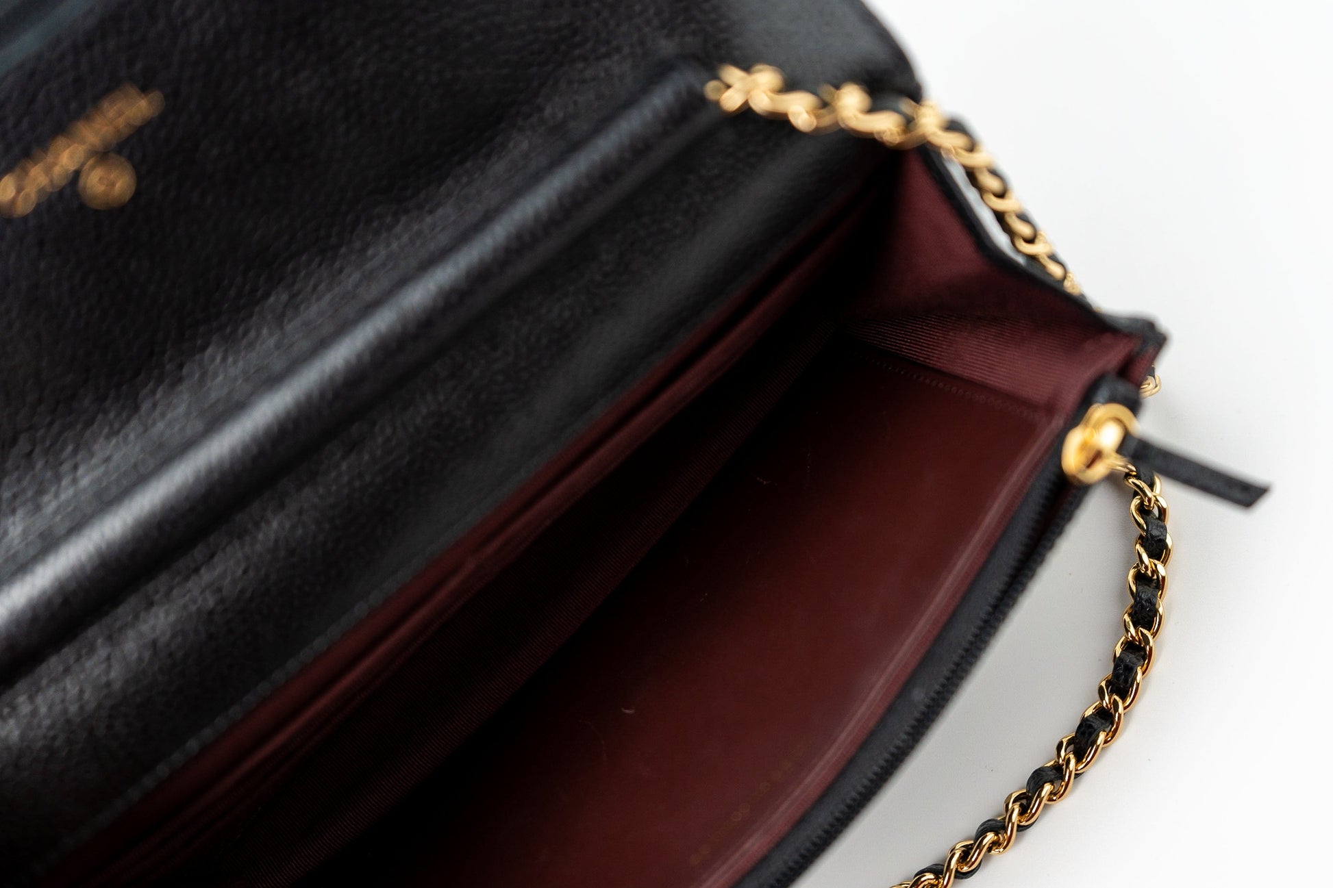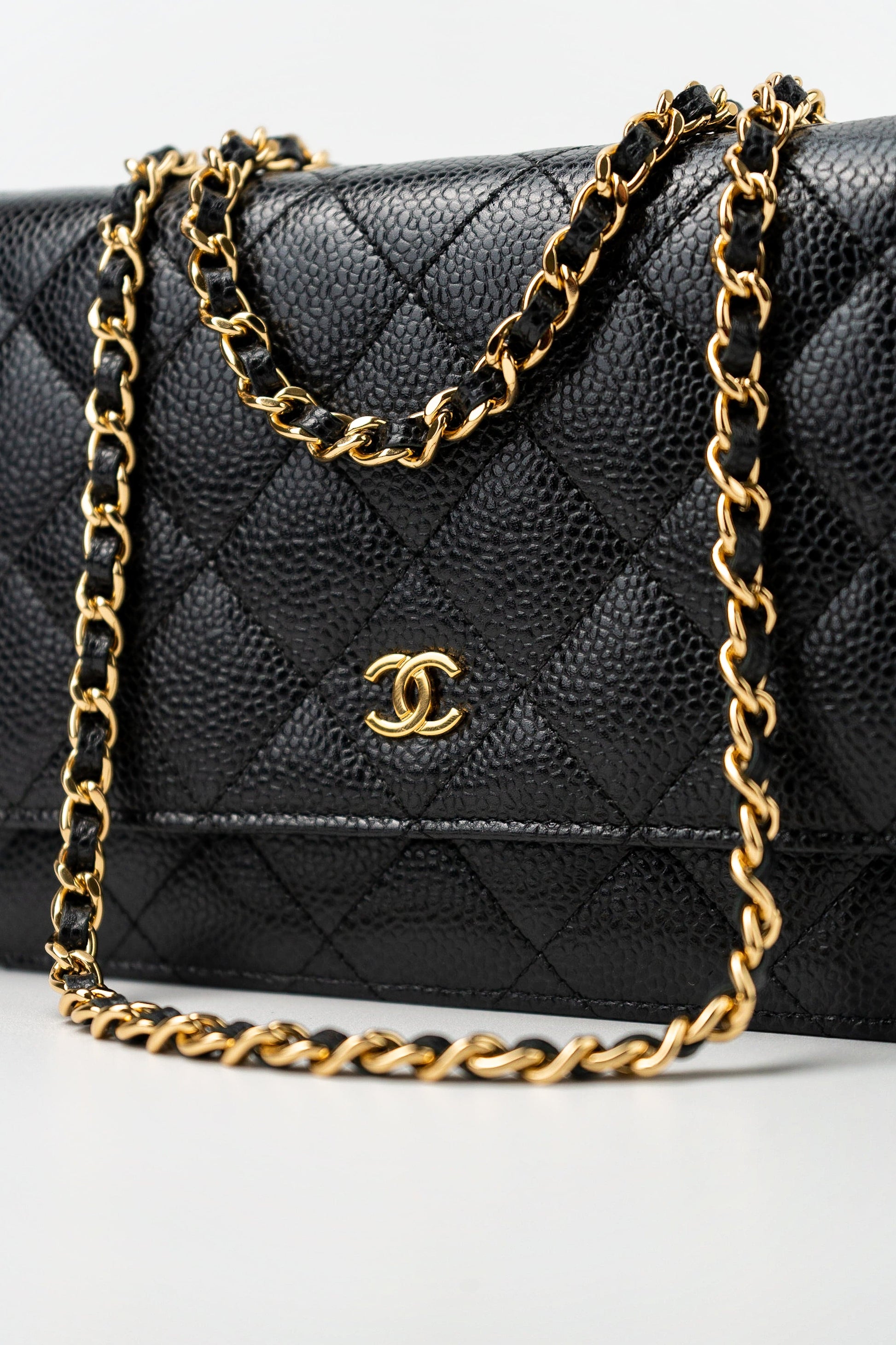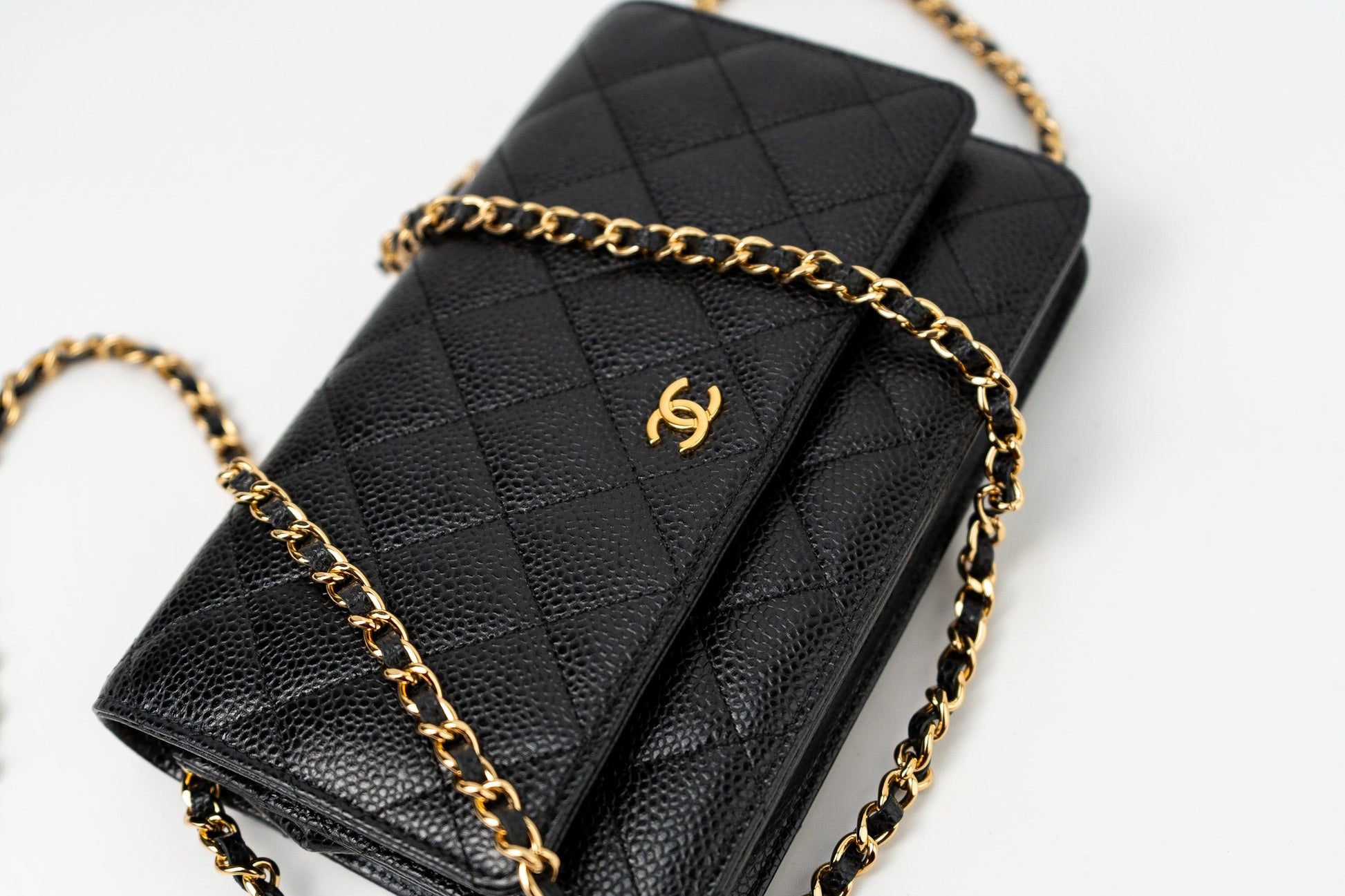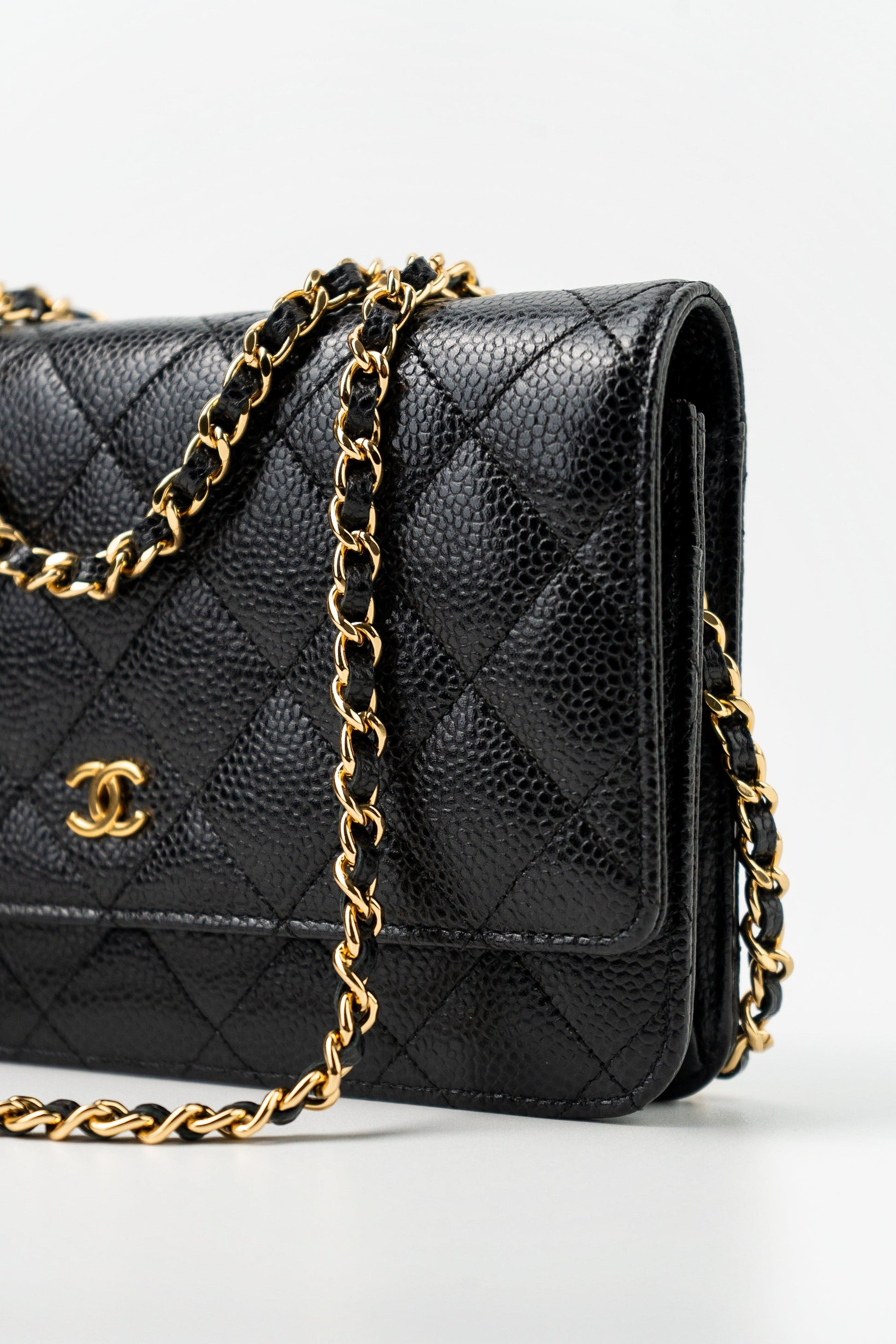 Black Caviar Quilted Wallet on Chain (WOC) GHW