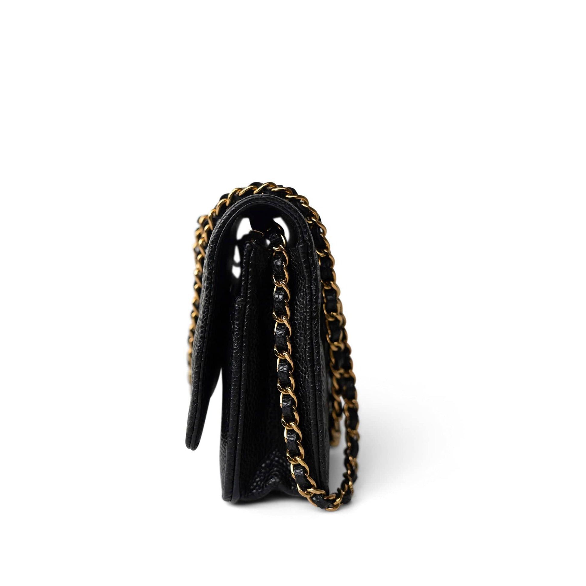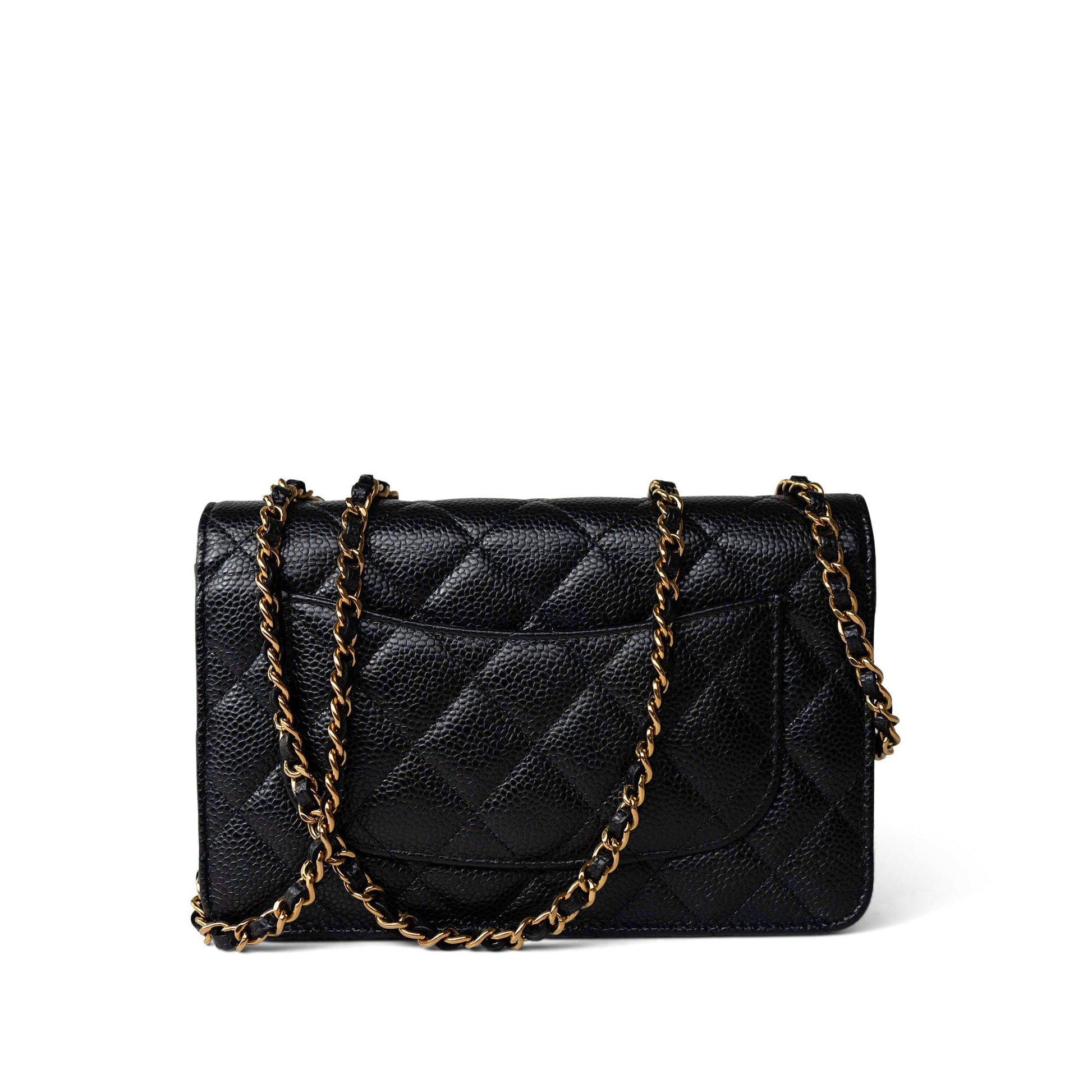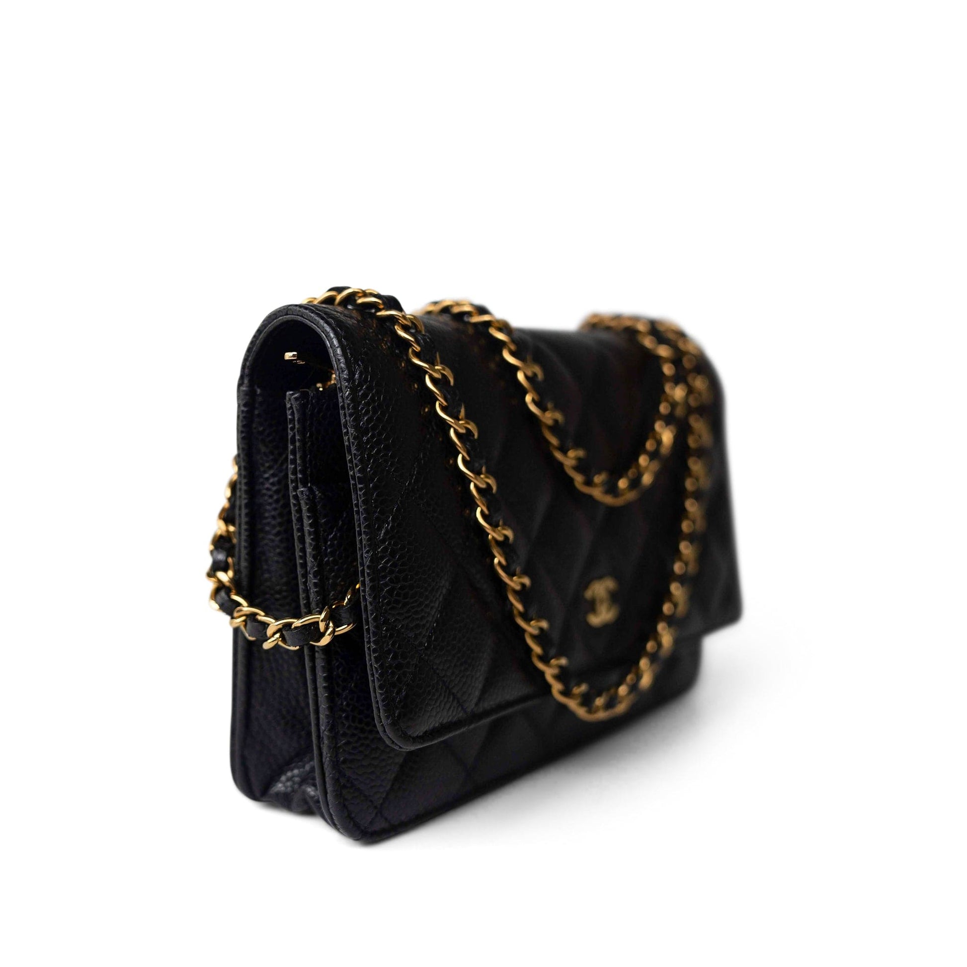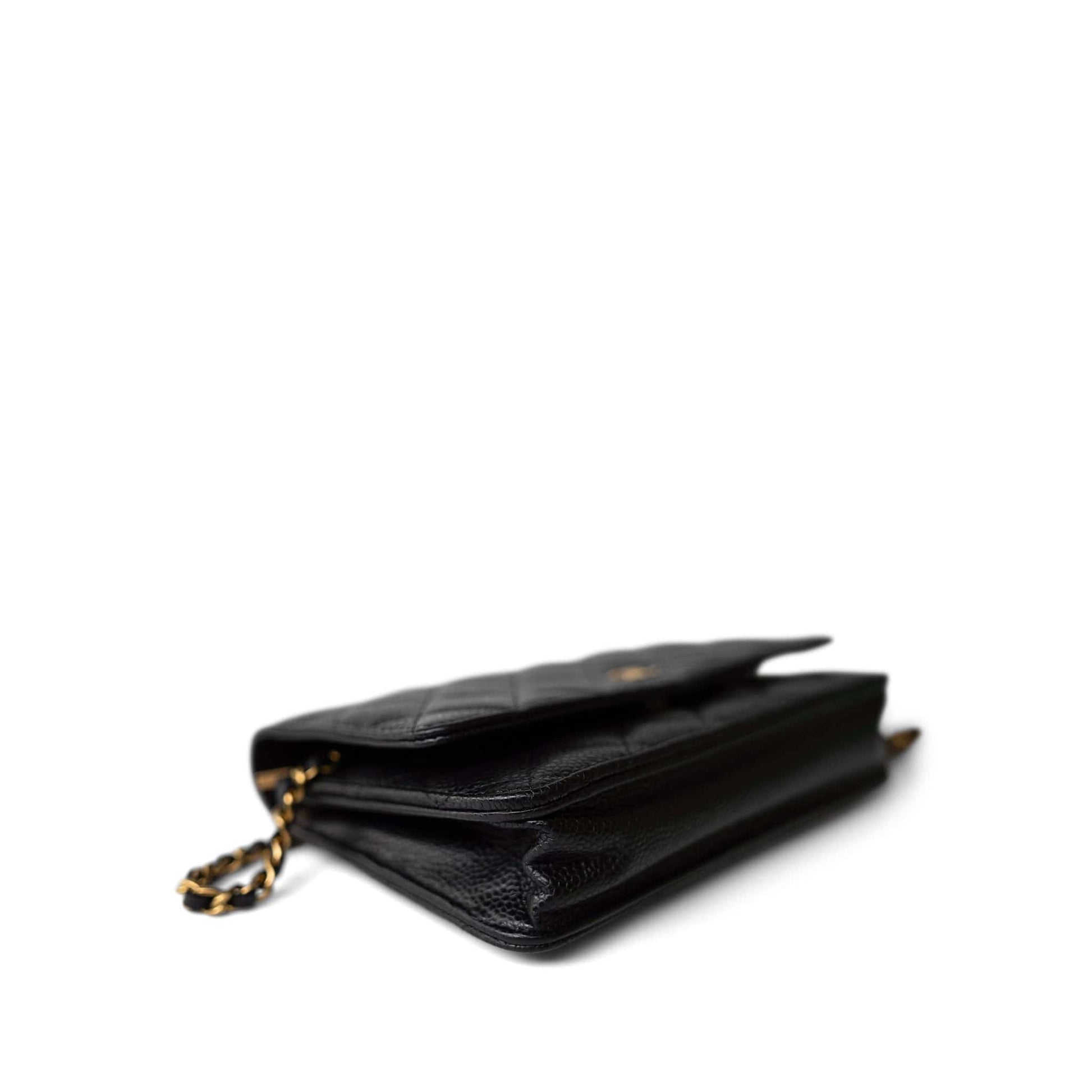 Black Caviar Quilted Wallet on Chain WOC Gold Hardware