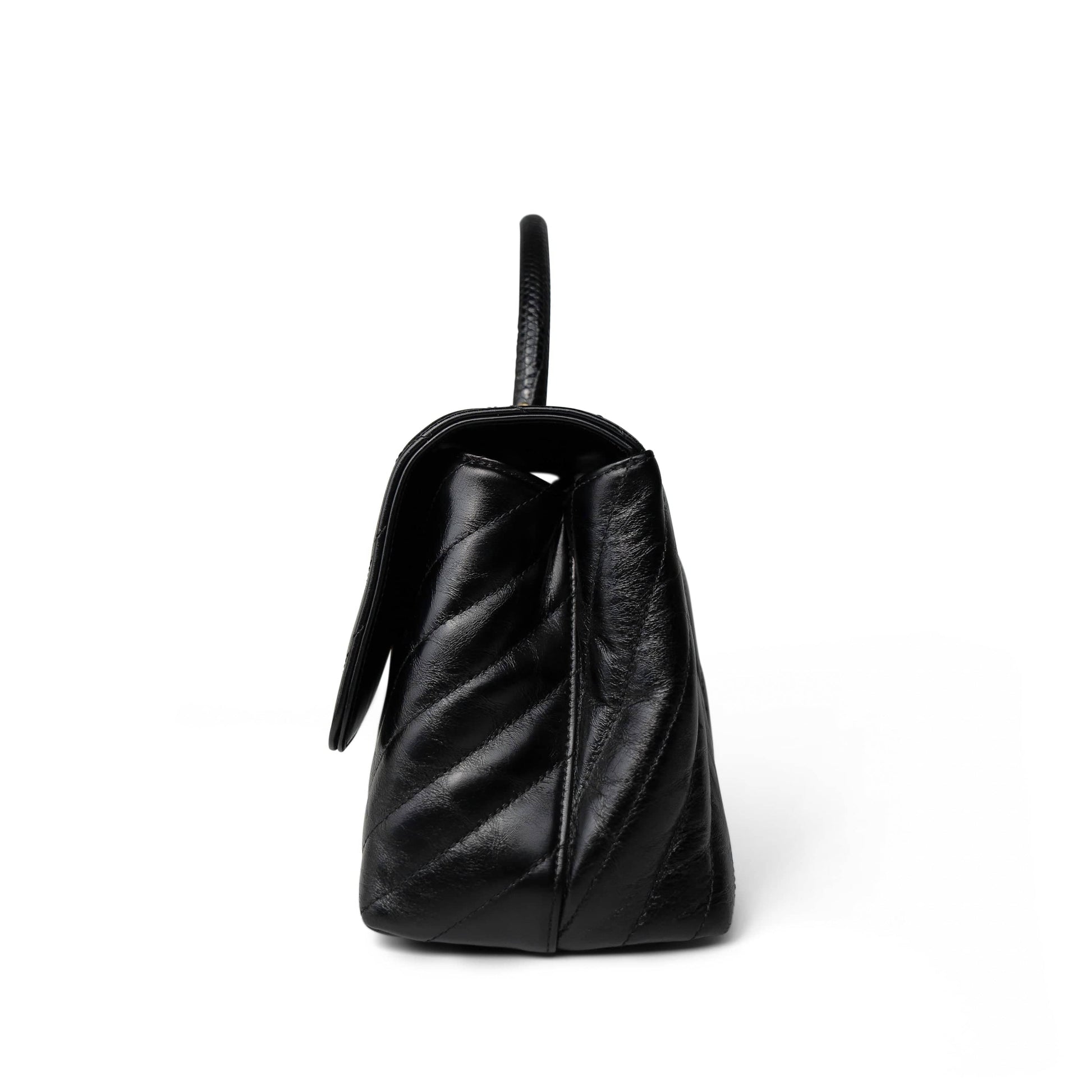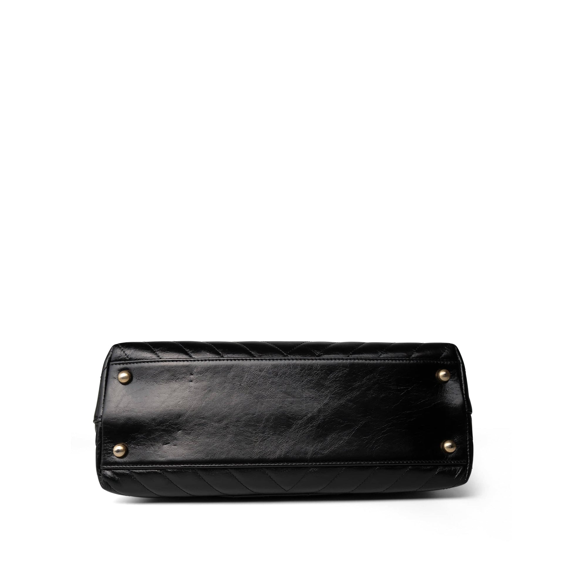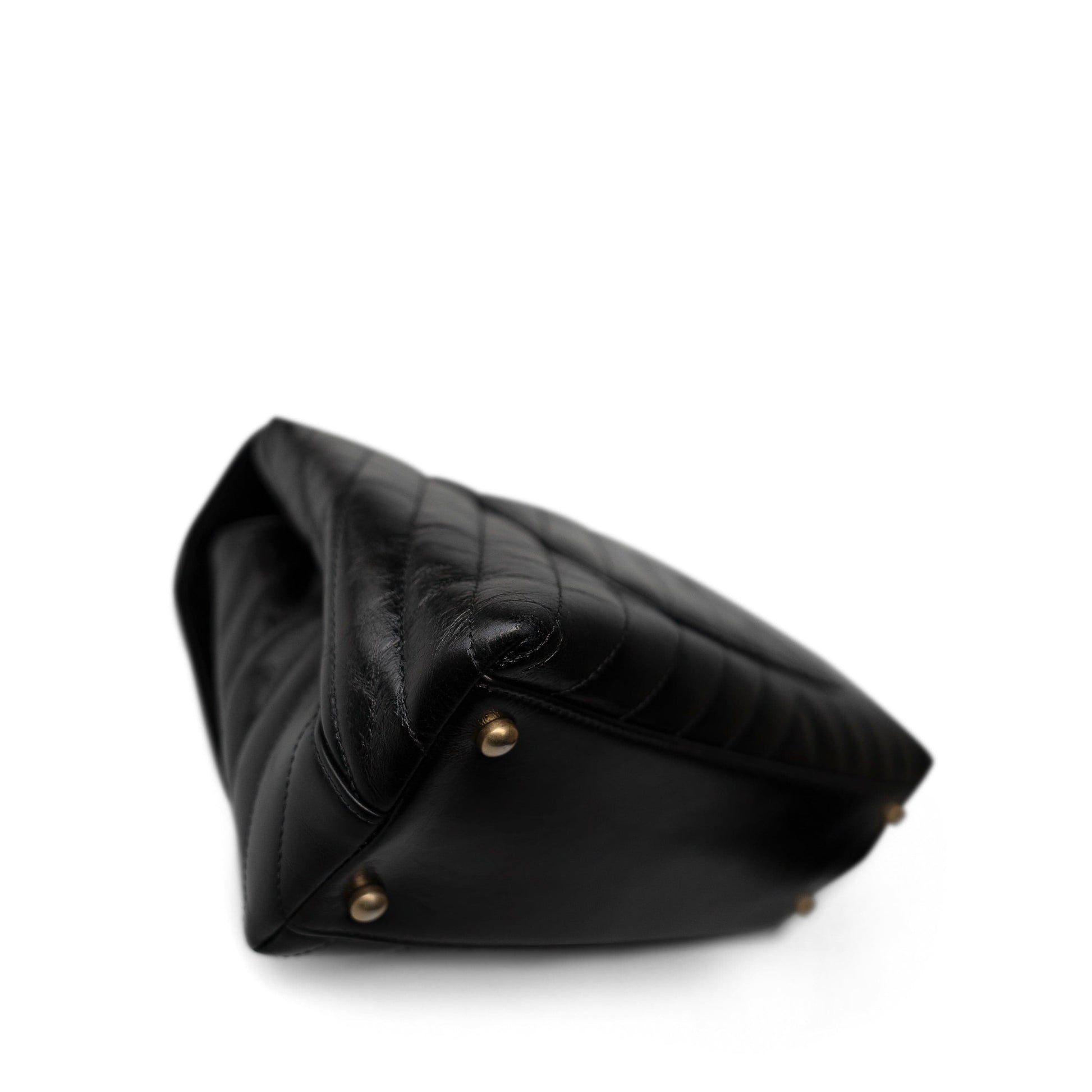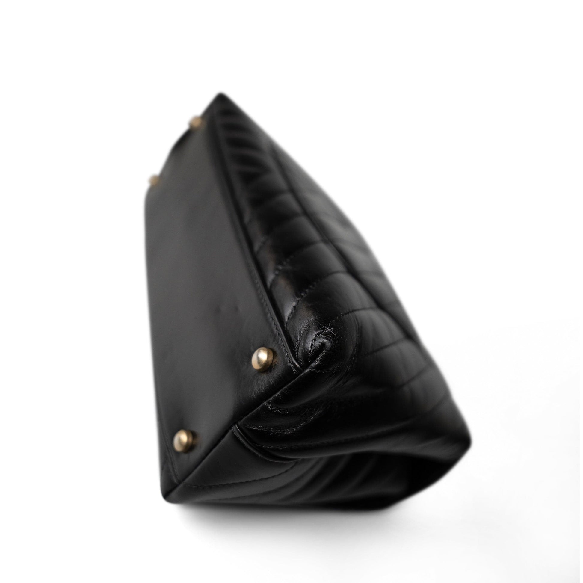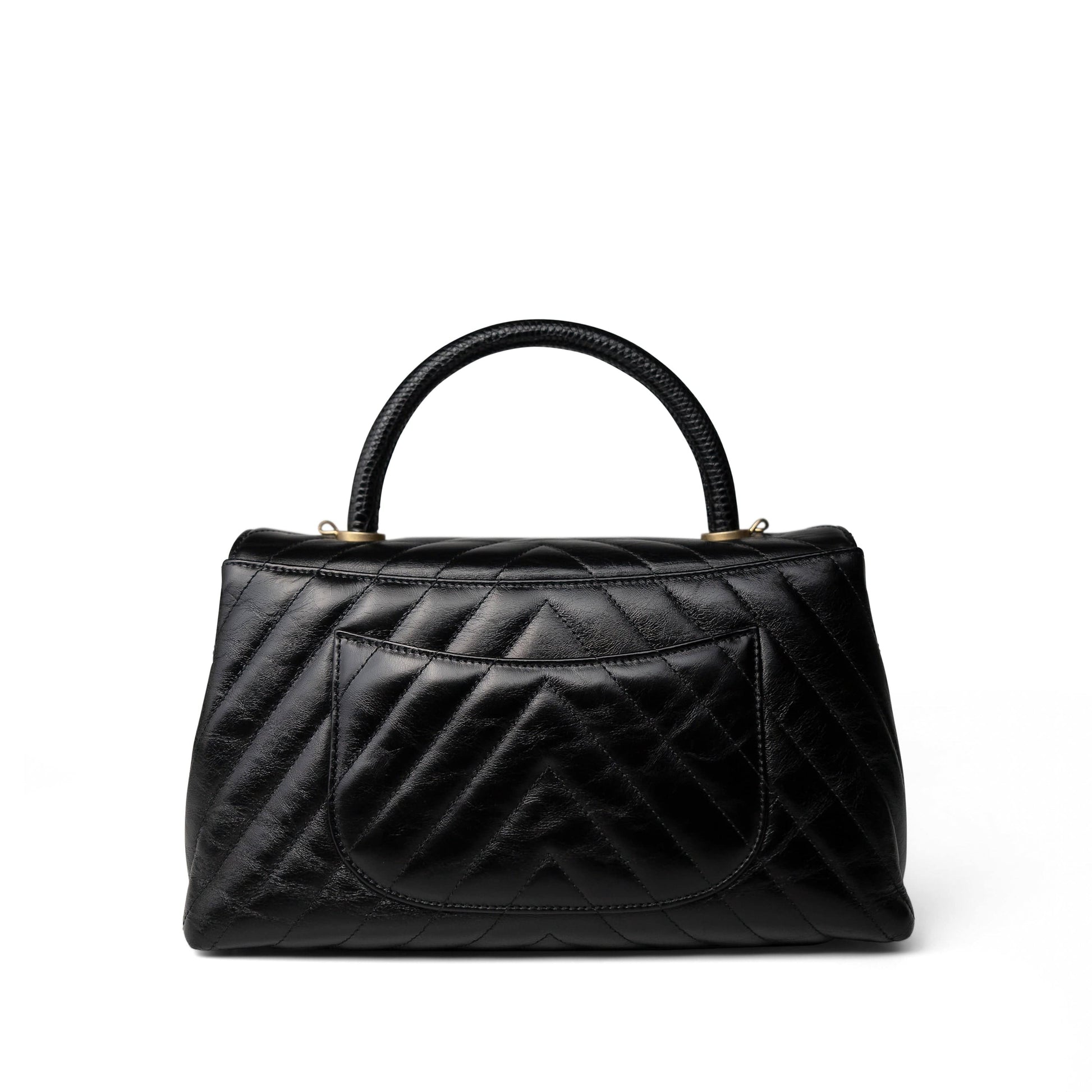 Black Chevron Calfskin Coco Handle Flap Medium (Old Small) Aged Gold Hardware