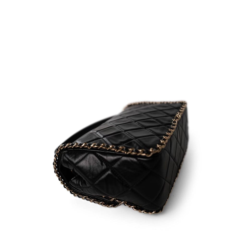 Black Crumpled Calfskin Medium Chain Around Flap Bag Light Gold Hardware
