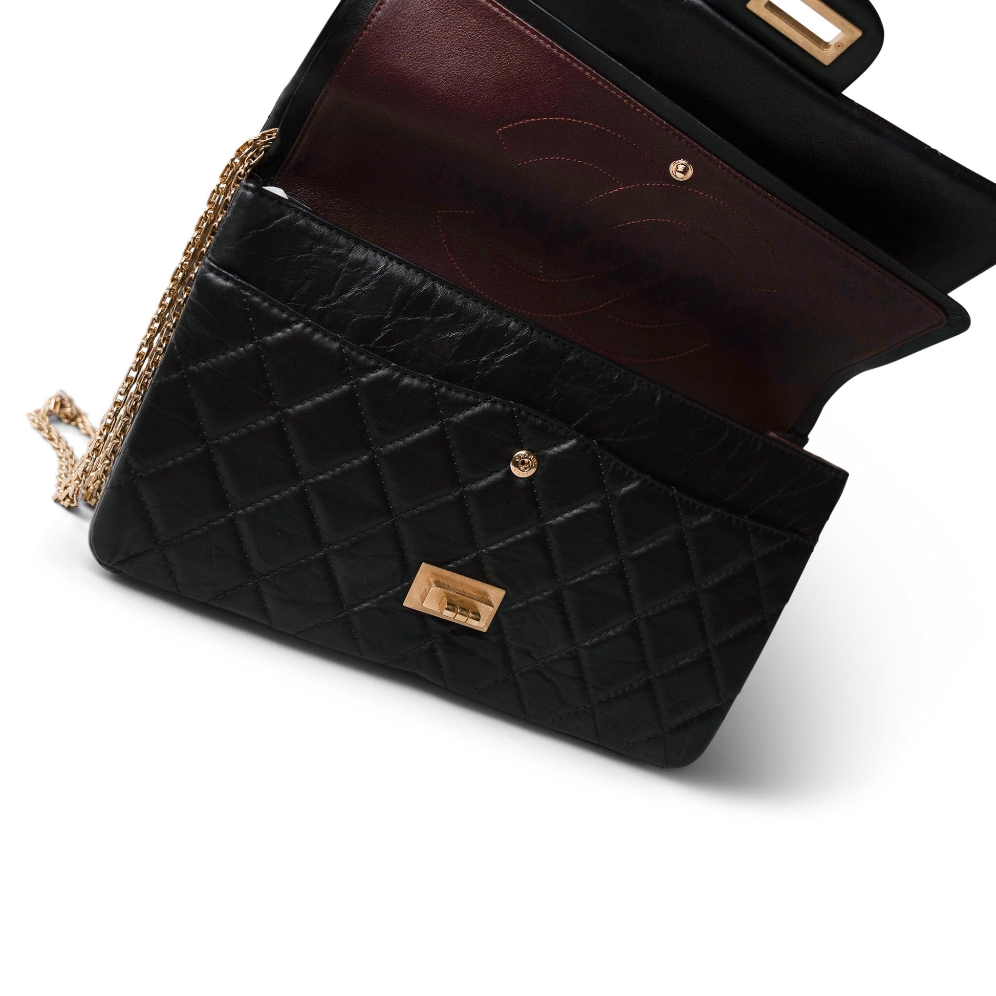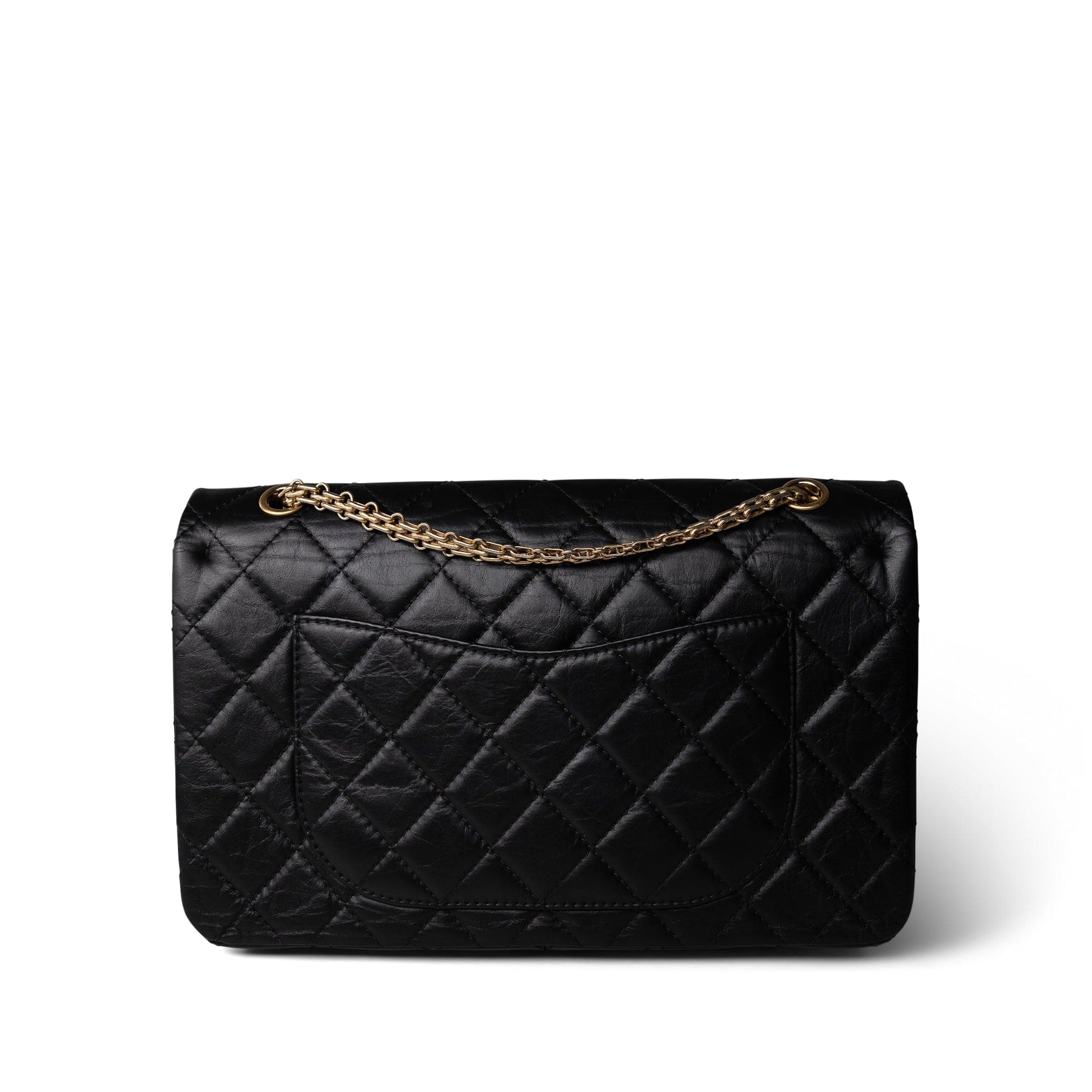 Black Crumpled Calfskin Quilted Reissue 2.55 227 Aged Gold Hardware