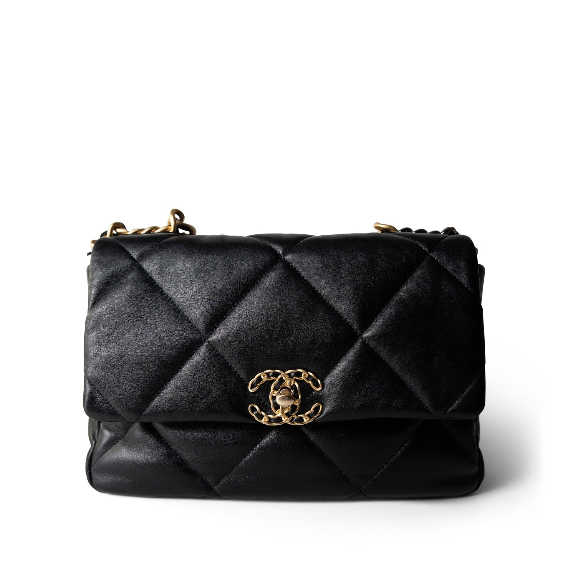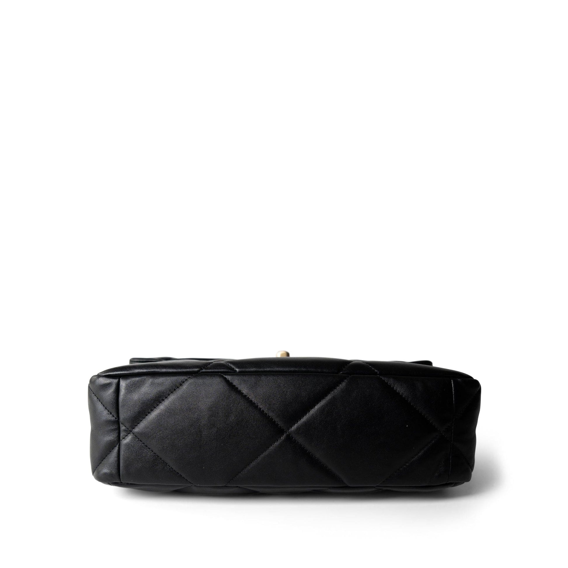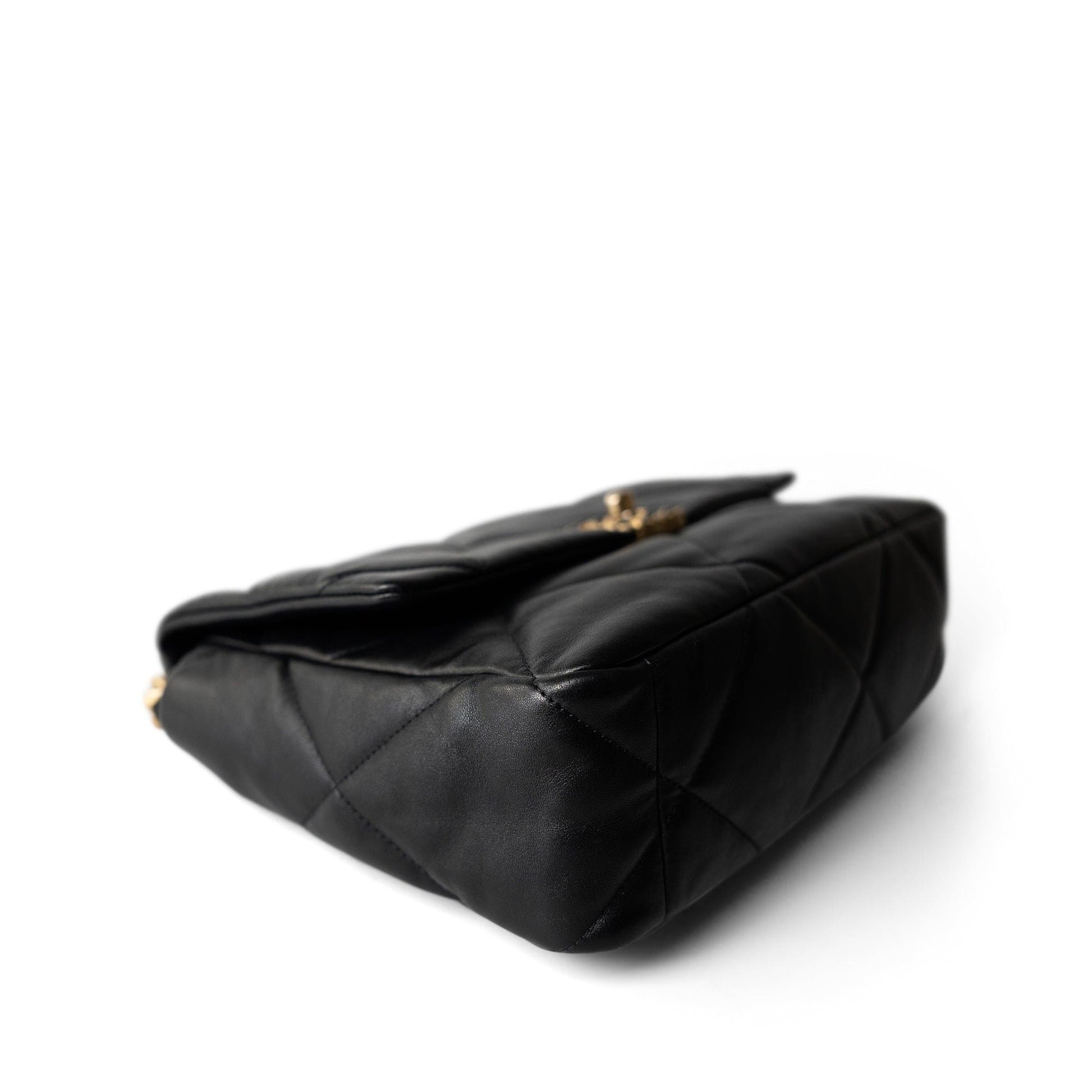 Black Lambskin Quilted 19 Flap Large Aged Gold Hardware