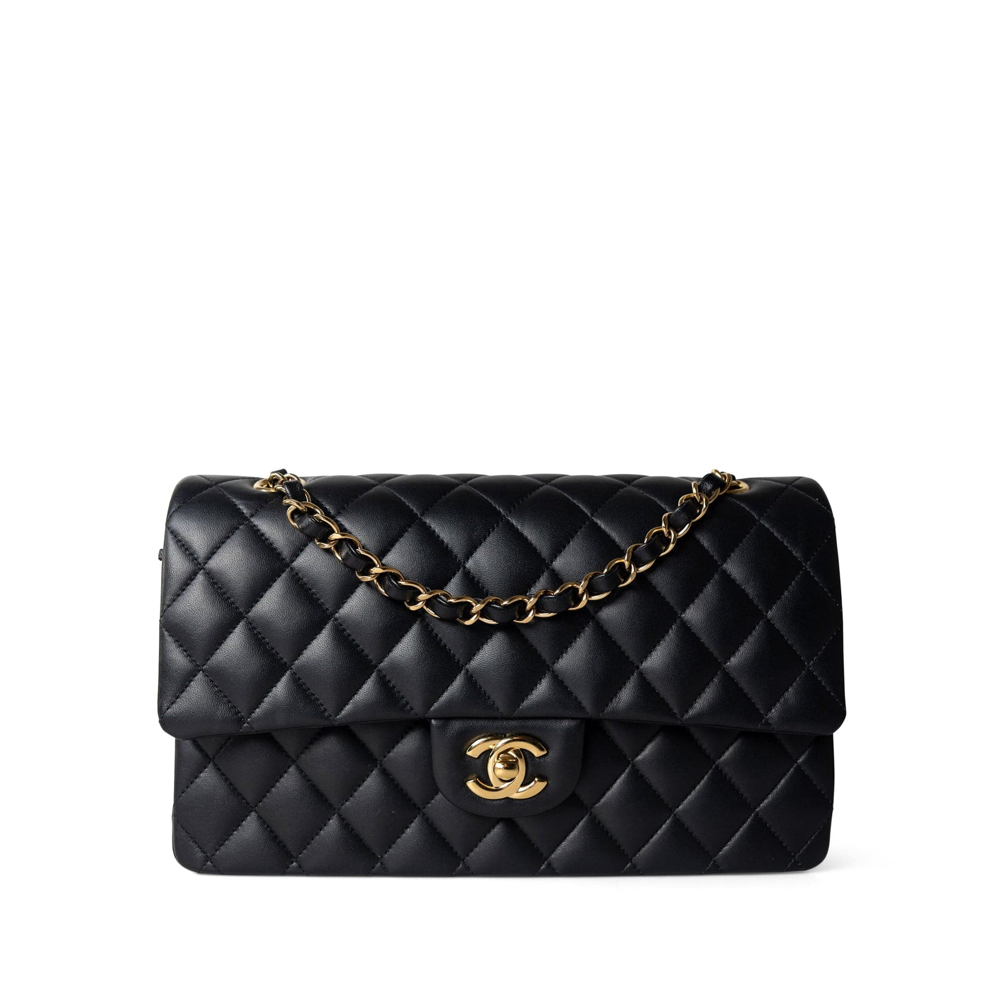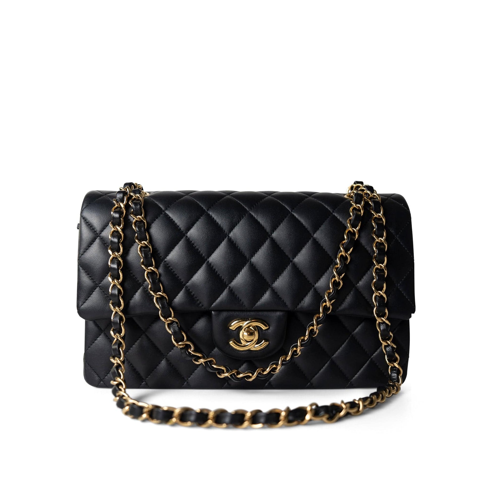 Black Lambskin Quilted Classic Flap Medium Gold Hardware