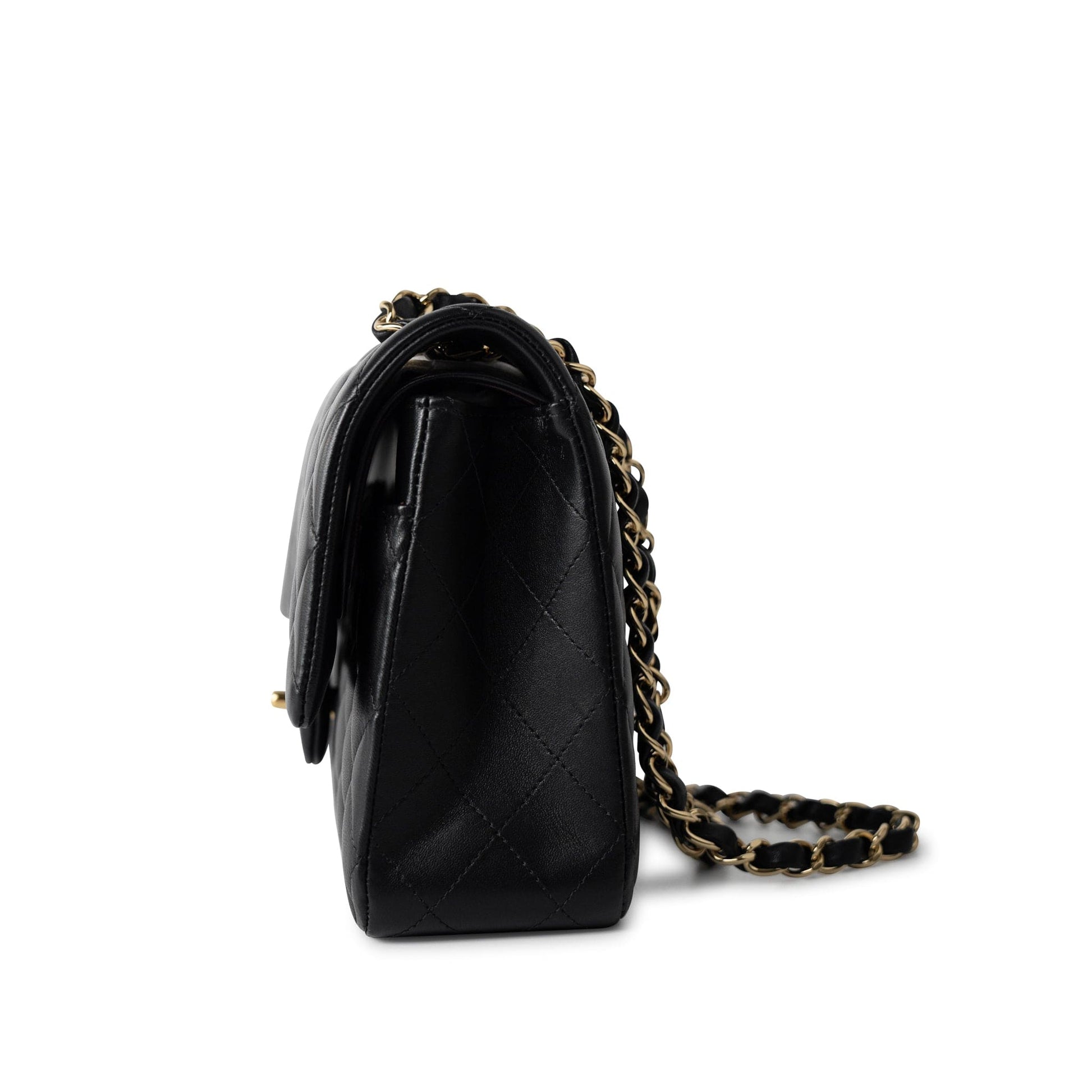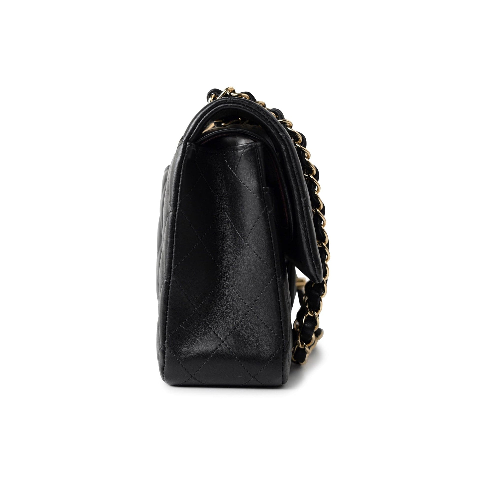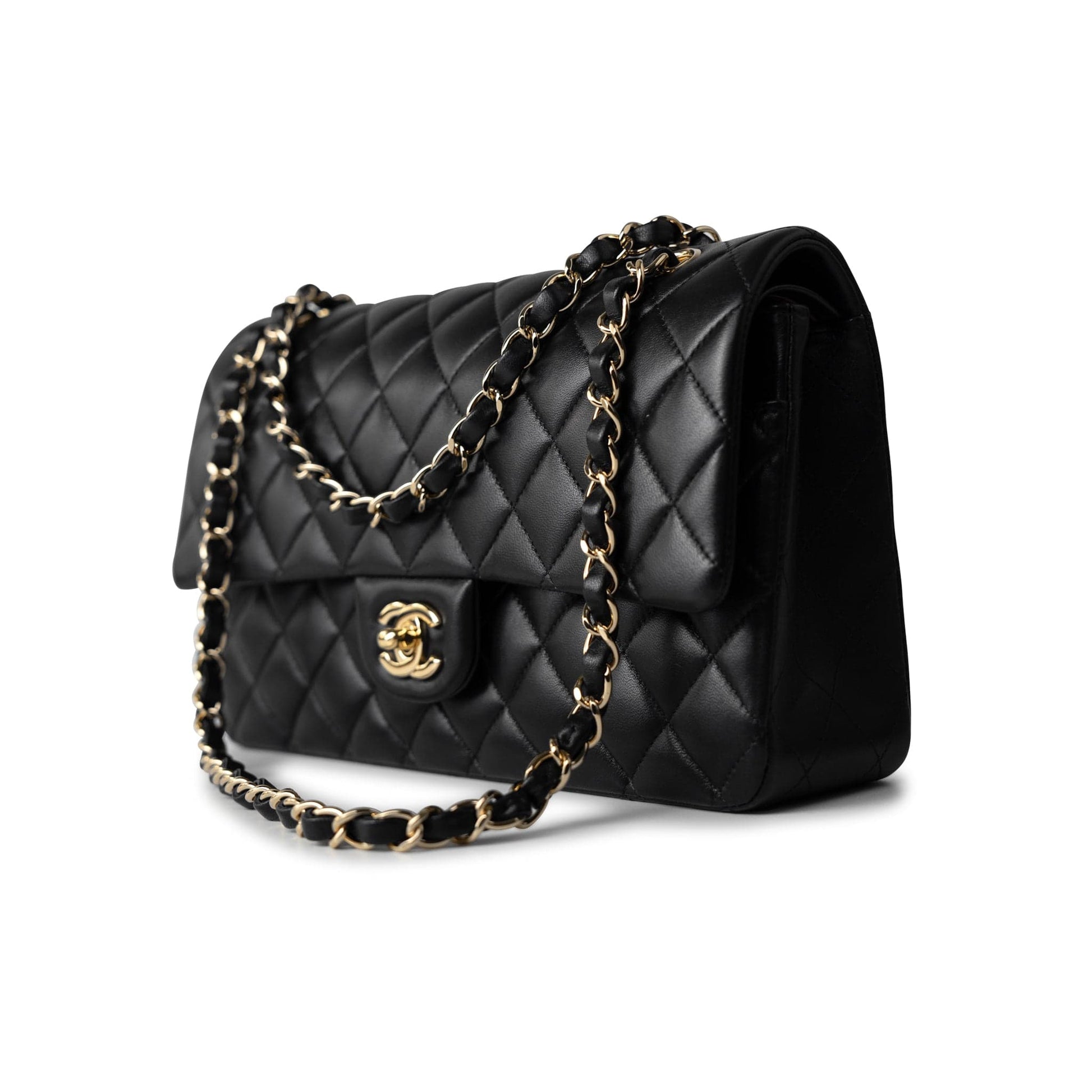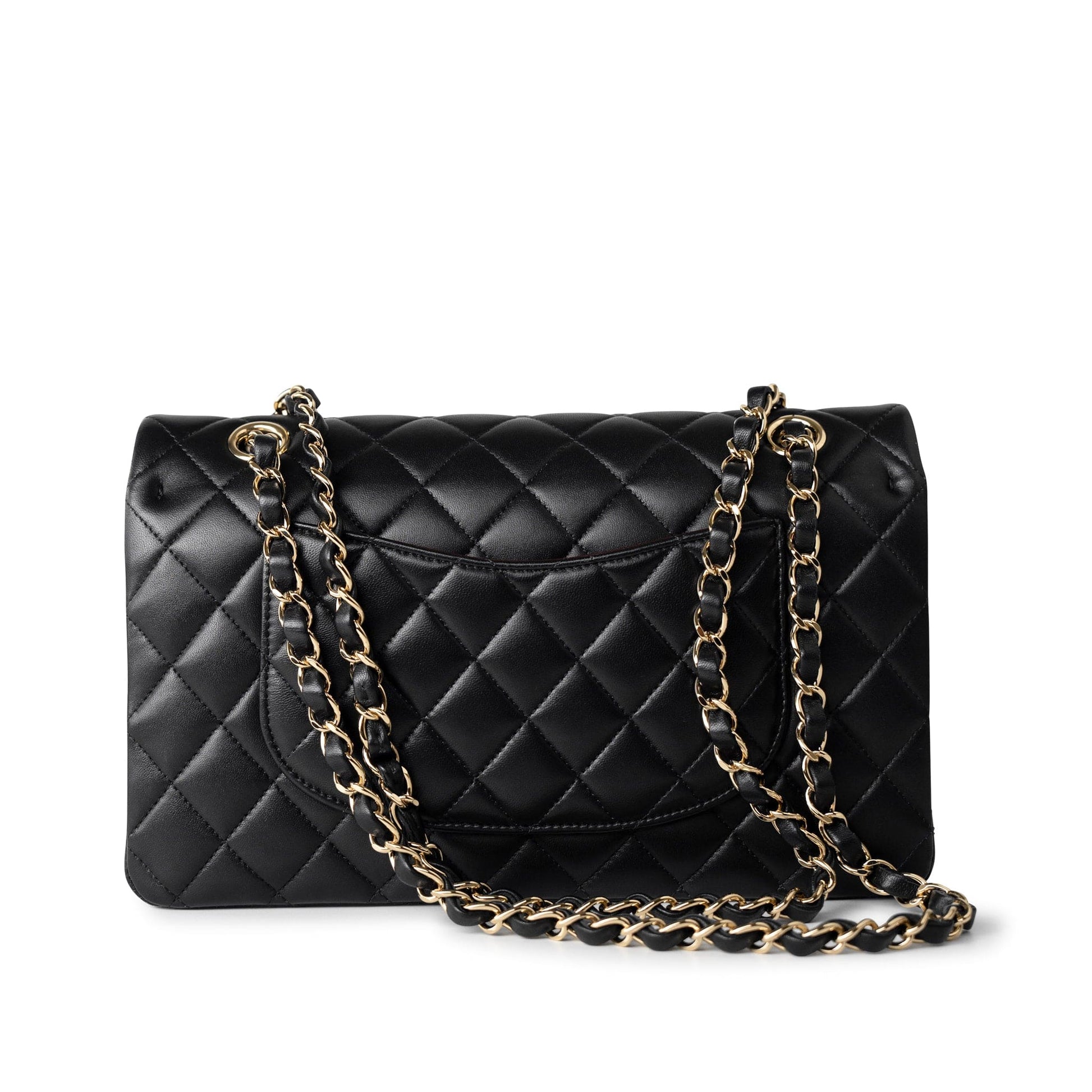 Black Lambskin Quilted Classic Flap Medium Light Gold Hardware