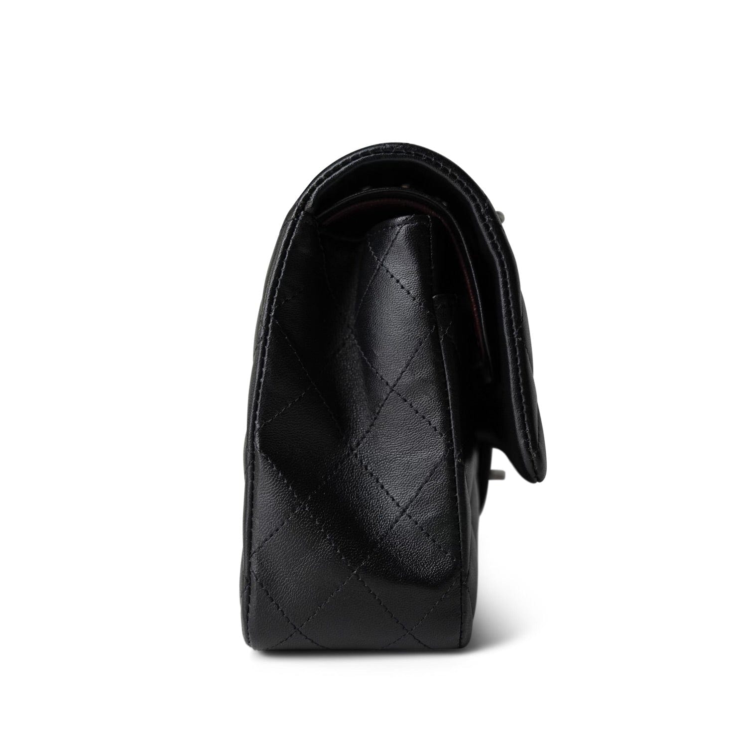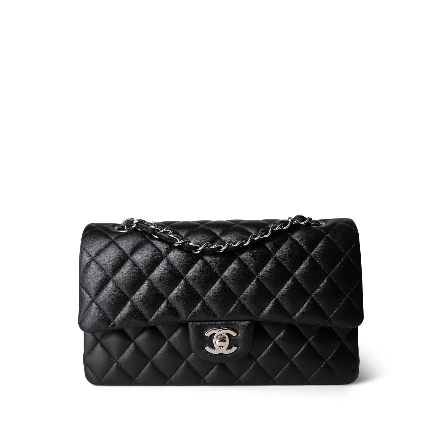 Black Lambskin Quilted Classic Flap Medium Silver Hardware