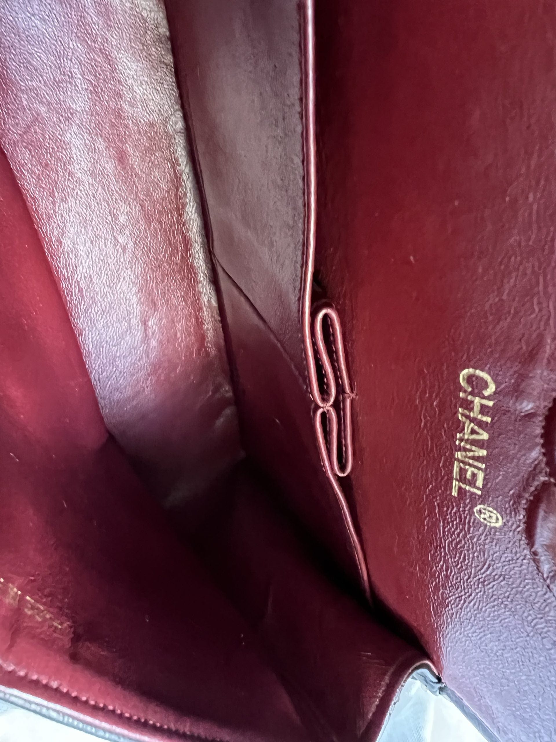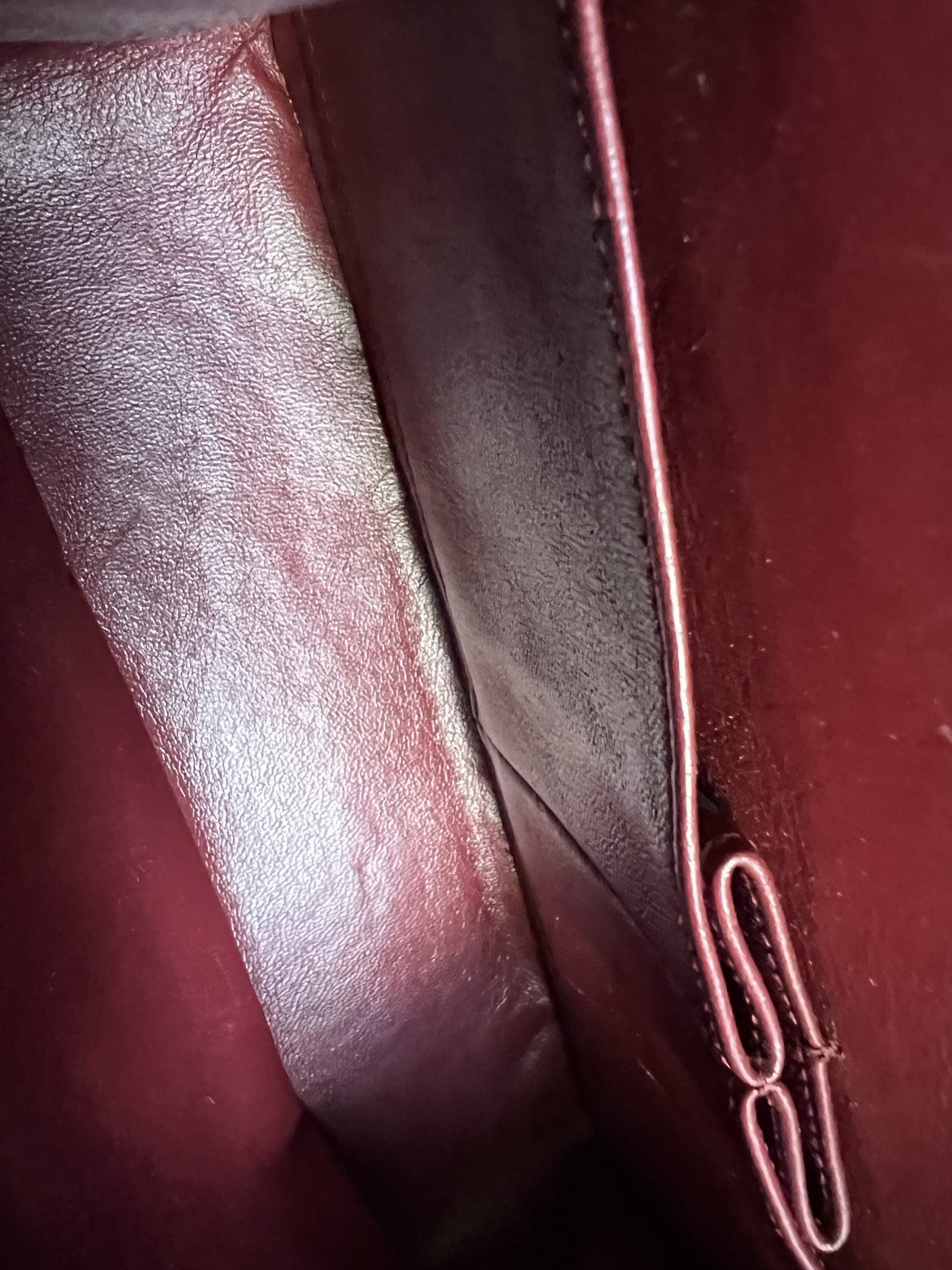 Condition Details: Minor dent on back pocket from chain and from left interior flap. Minor Crease on front pocket and some wear/scratches on the hardware. Very minor crease near turn lock, and slight vintage odor (interior only)