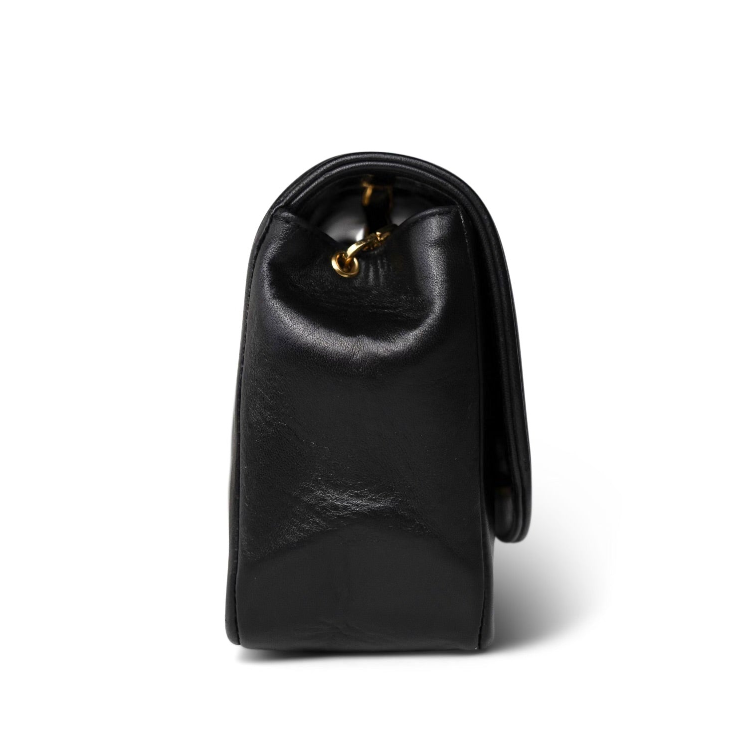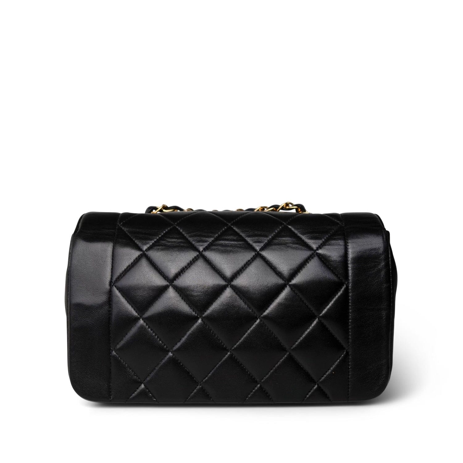 Black Lambskin Quilted Diana Flap Small Gold Hardware