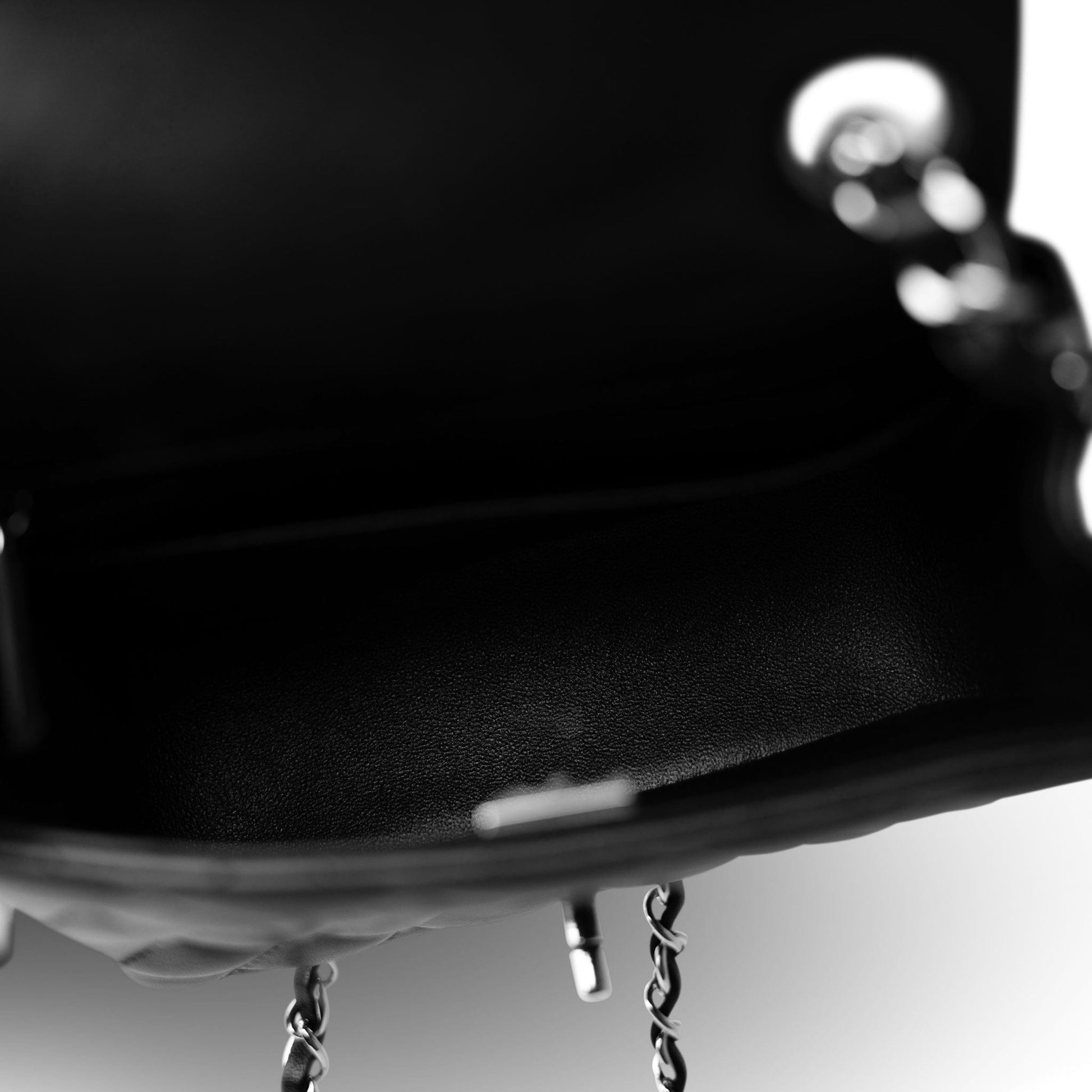 Black Lambskin Quilted Mini Square Flap Silver Hardware