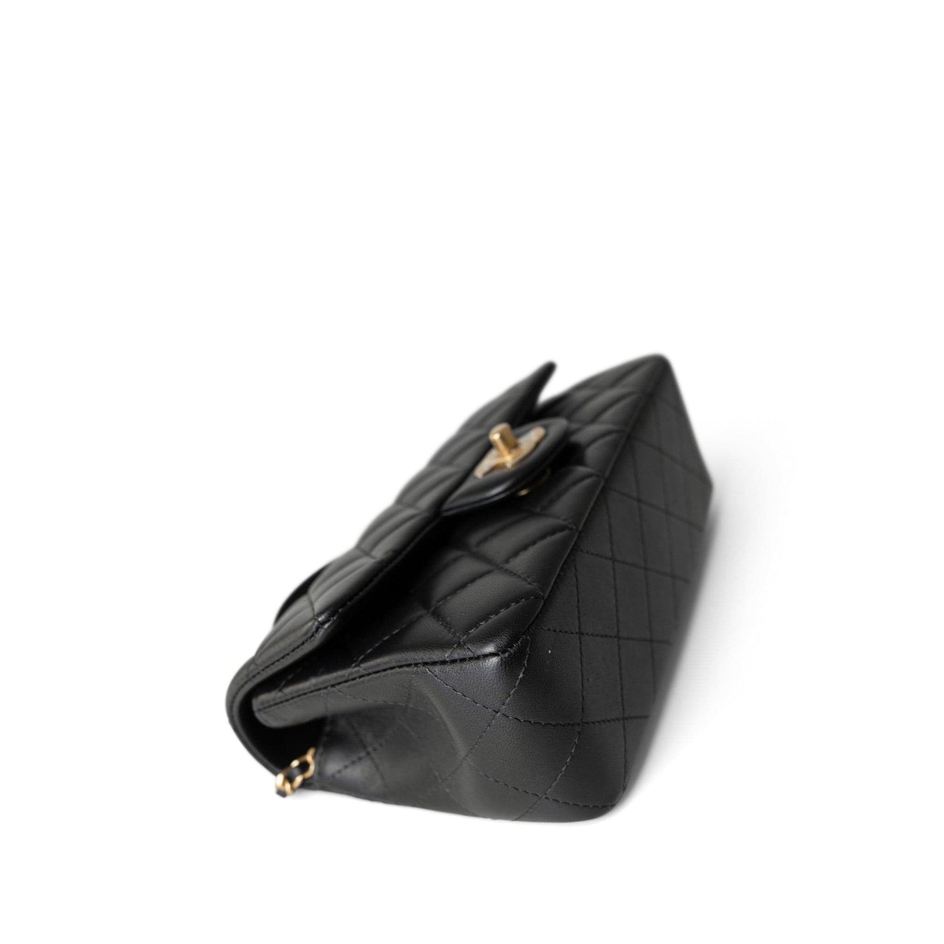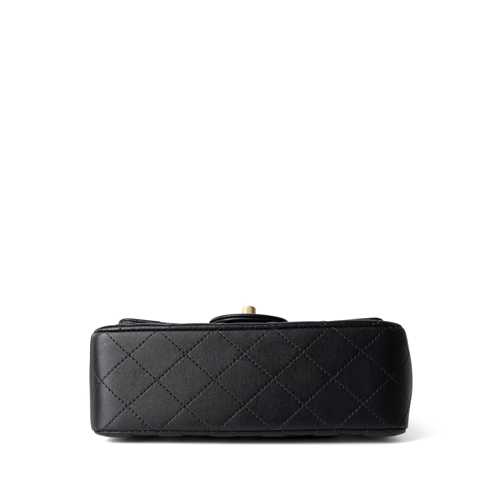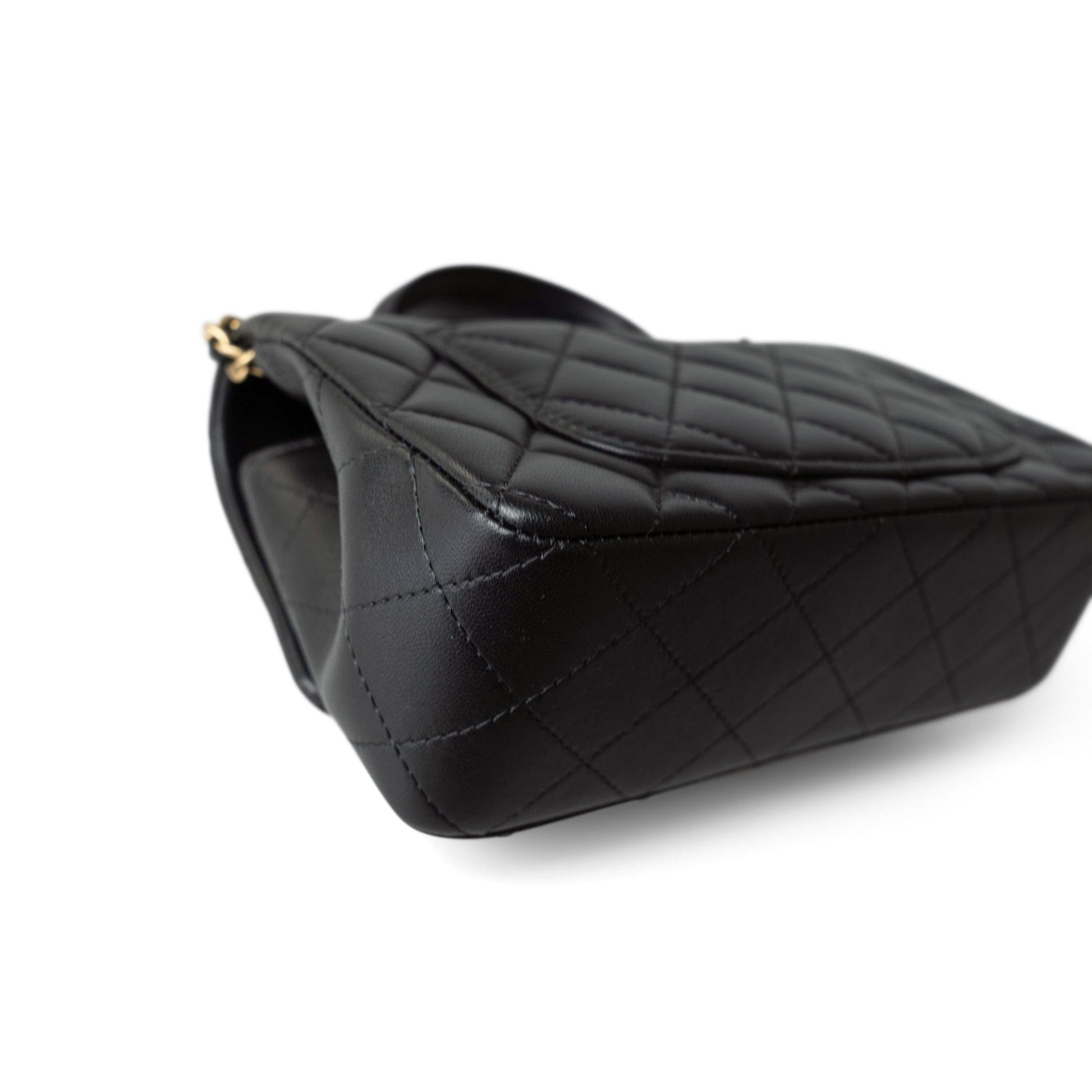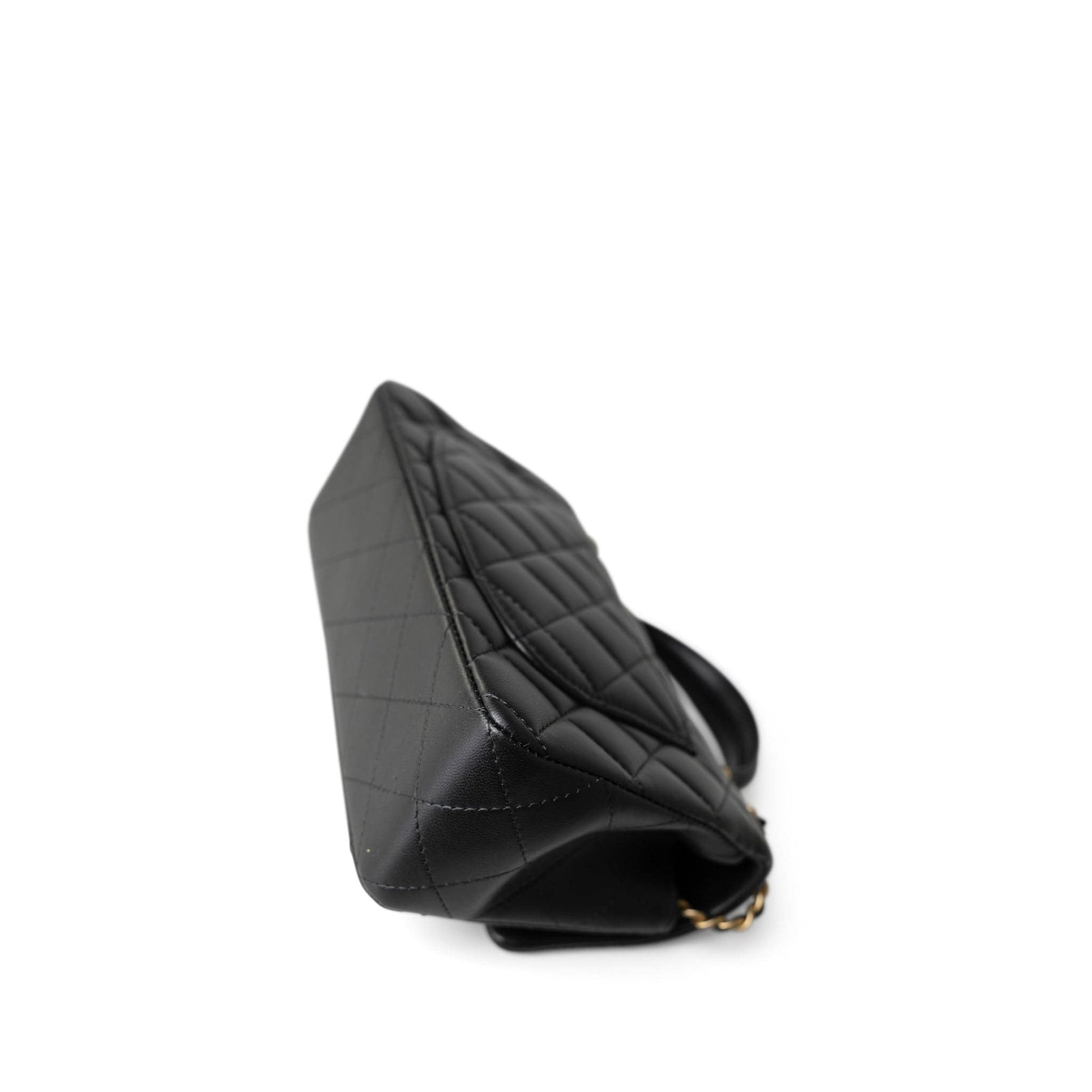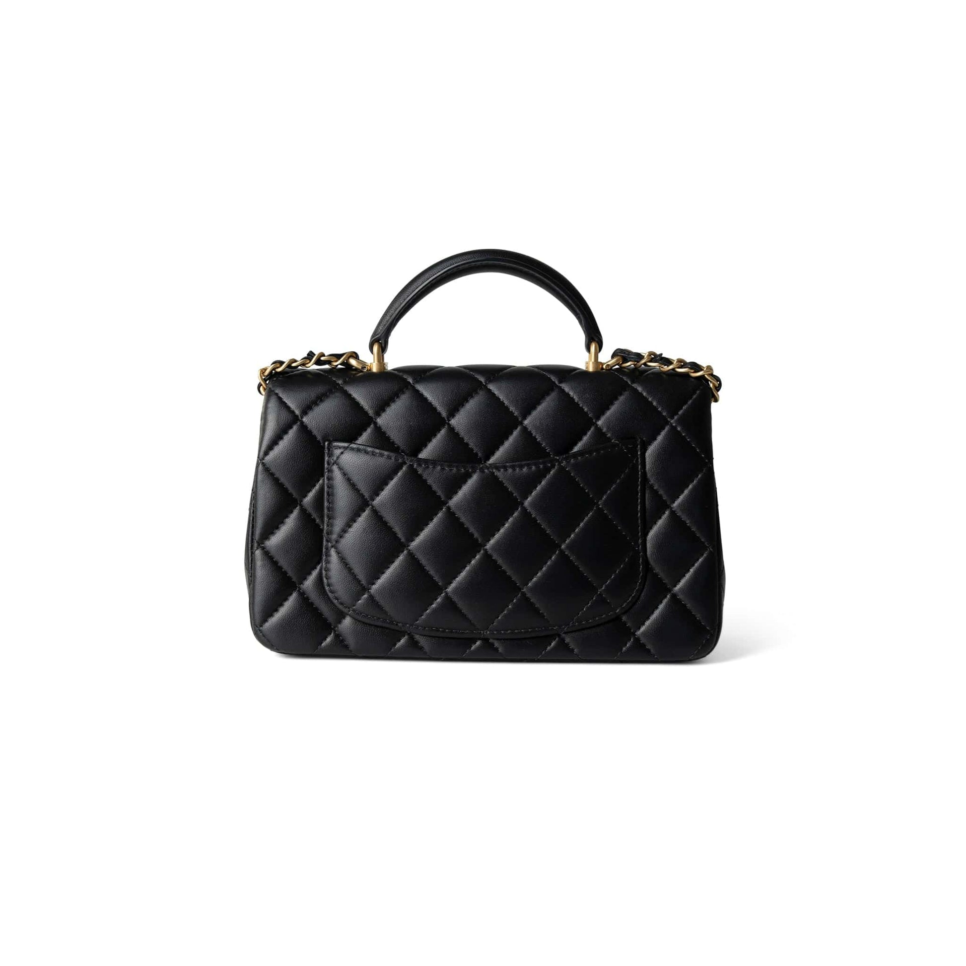 Black Lambskin Quilted Mini Top Handle Antique Gold Hardware