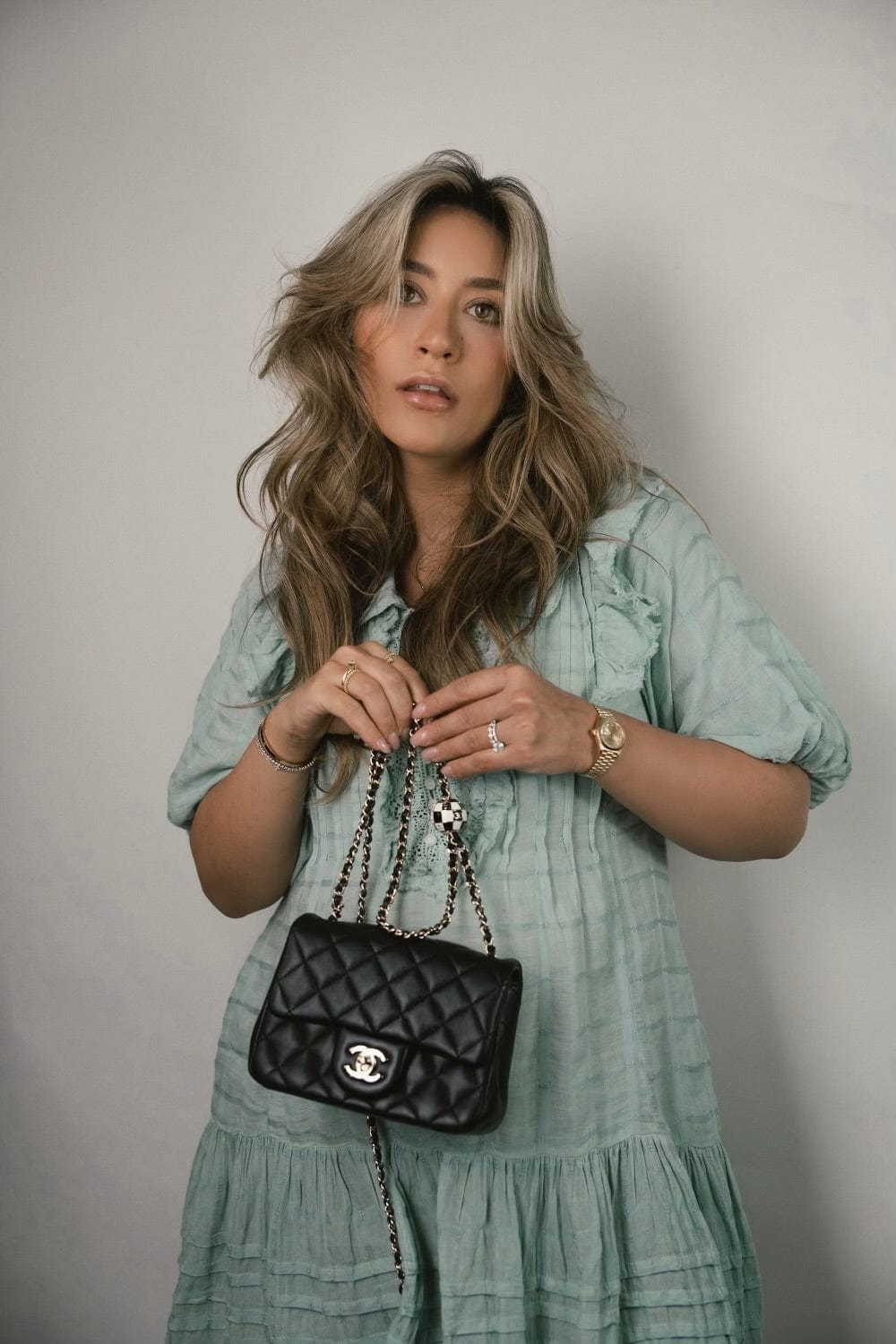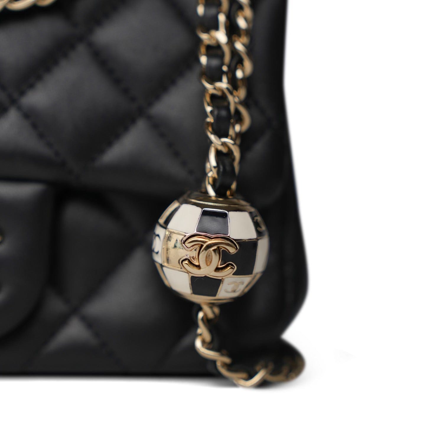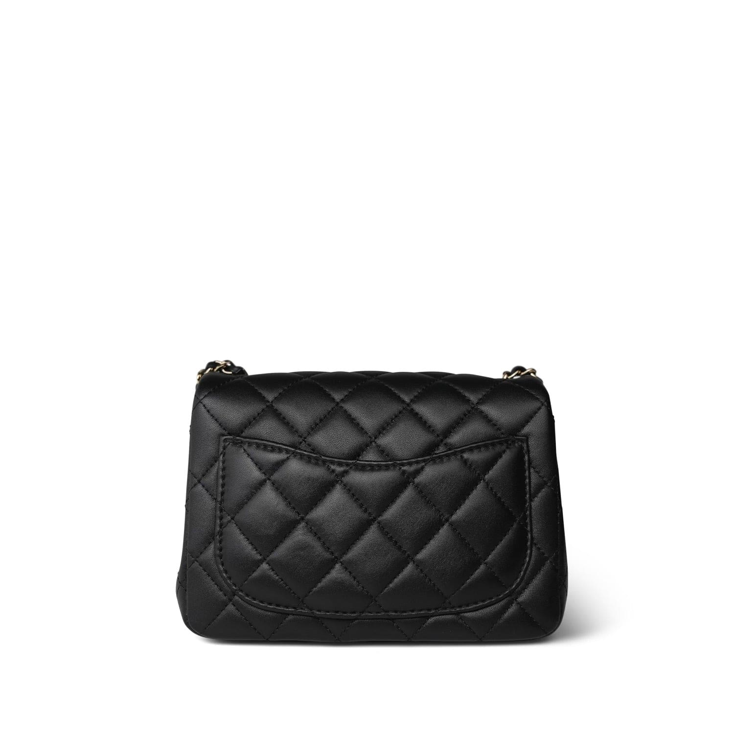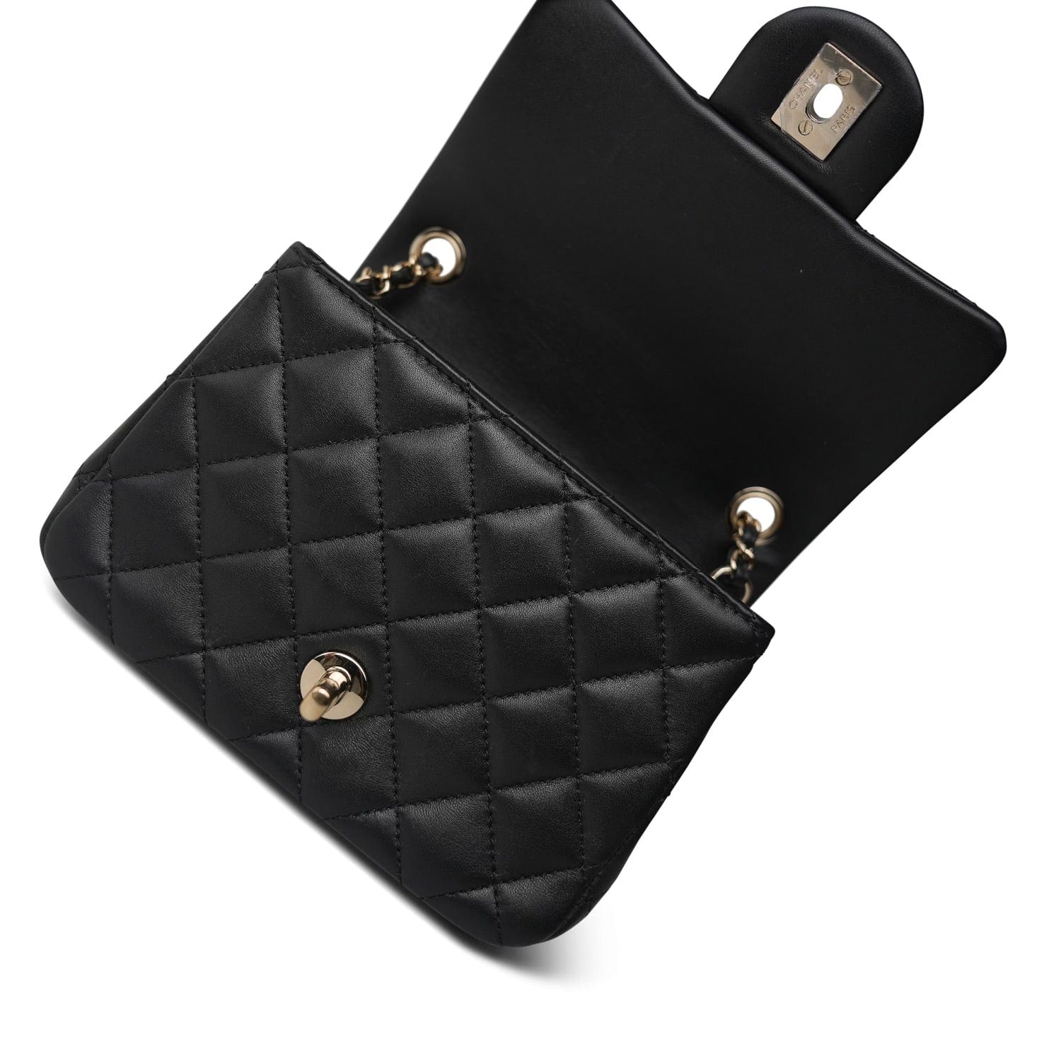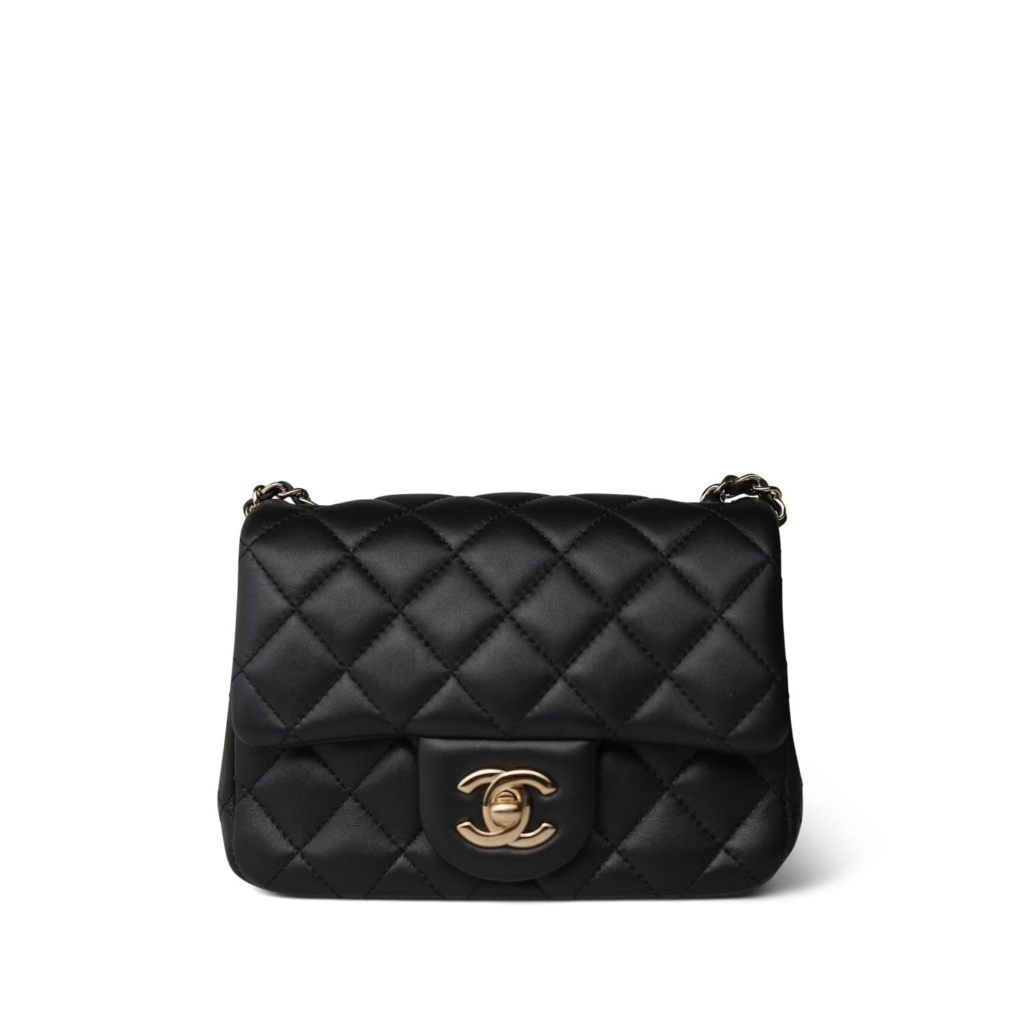 Black Lambskin Quilted Pearl Crush Mini Square Flap Light Gold Hardware