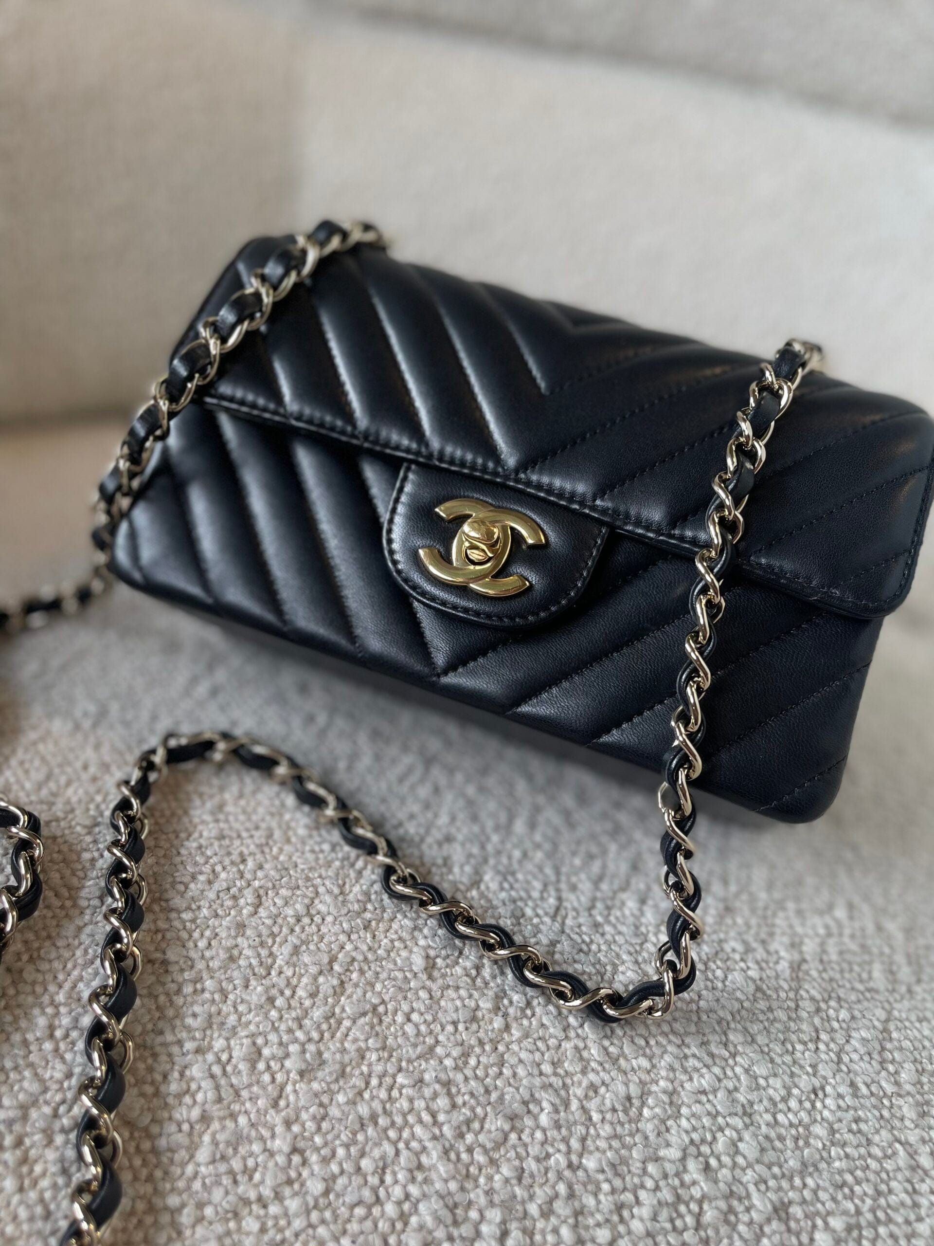Black Mini Rectangular Lambskin Chevron Light Gold Hardware