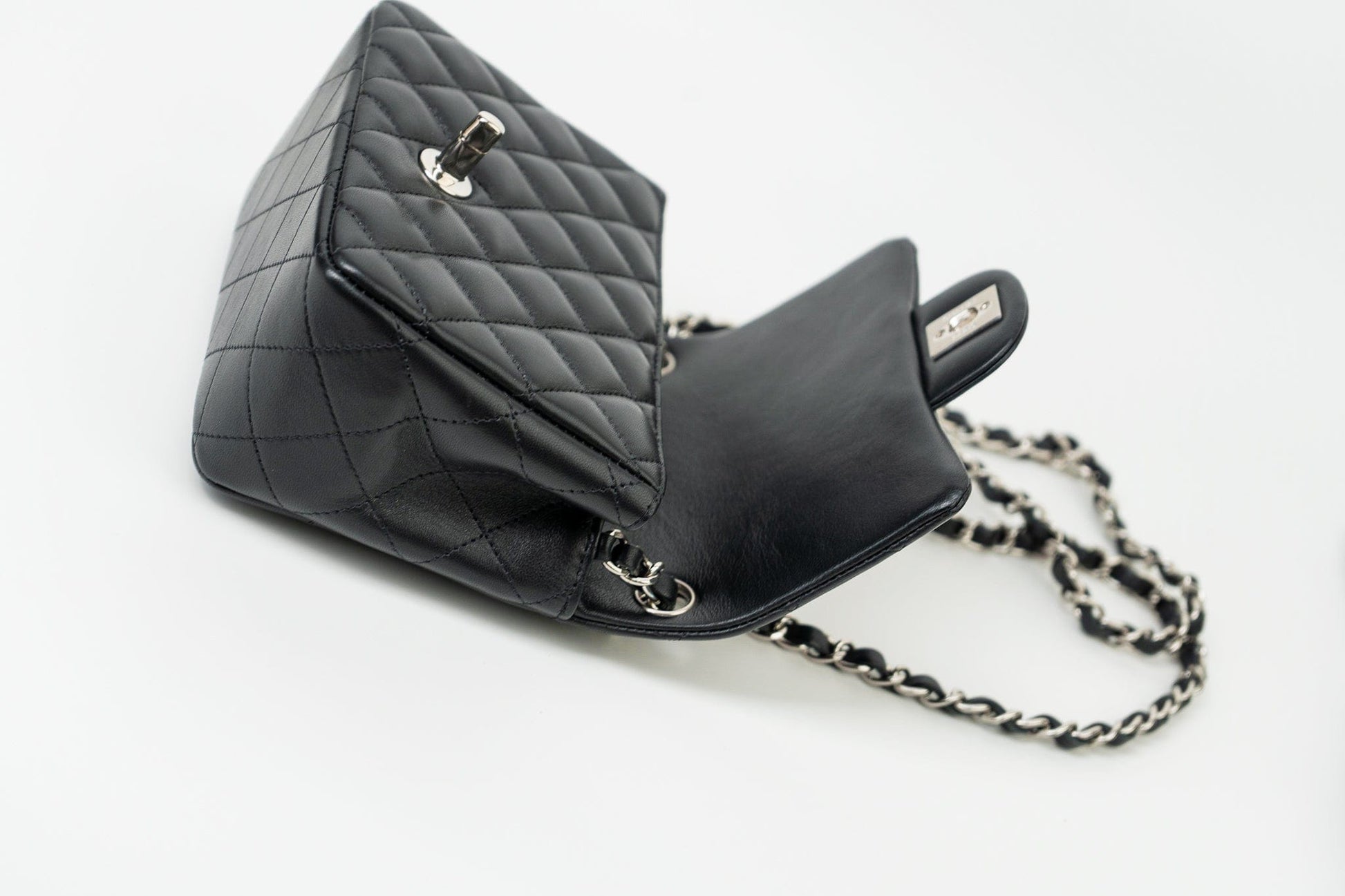 Black Mini Square Lambskin Quilted Flap Silver Hardware