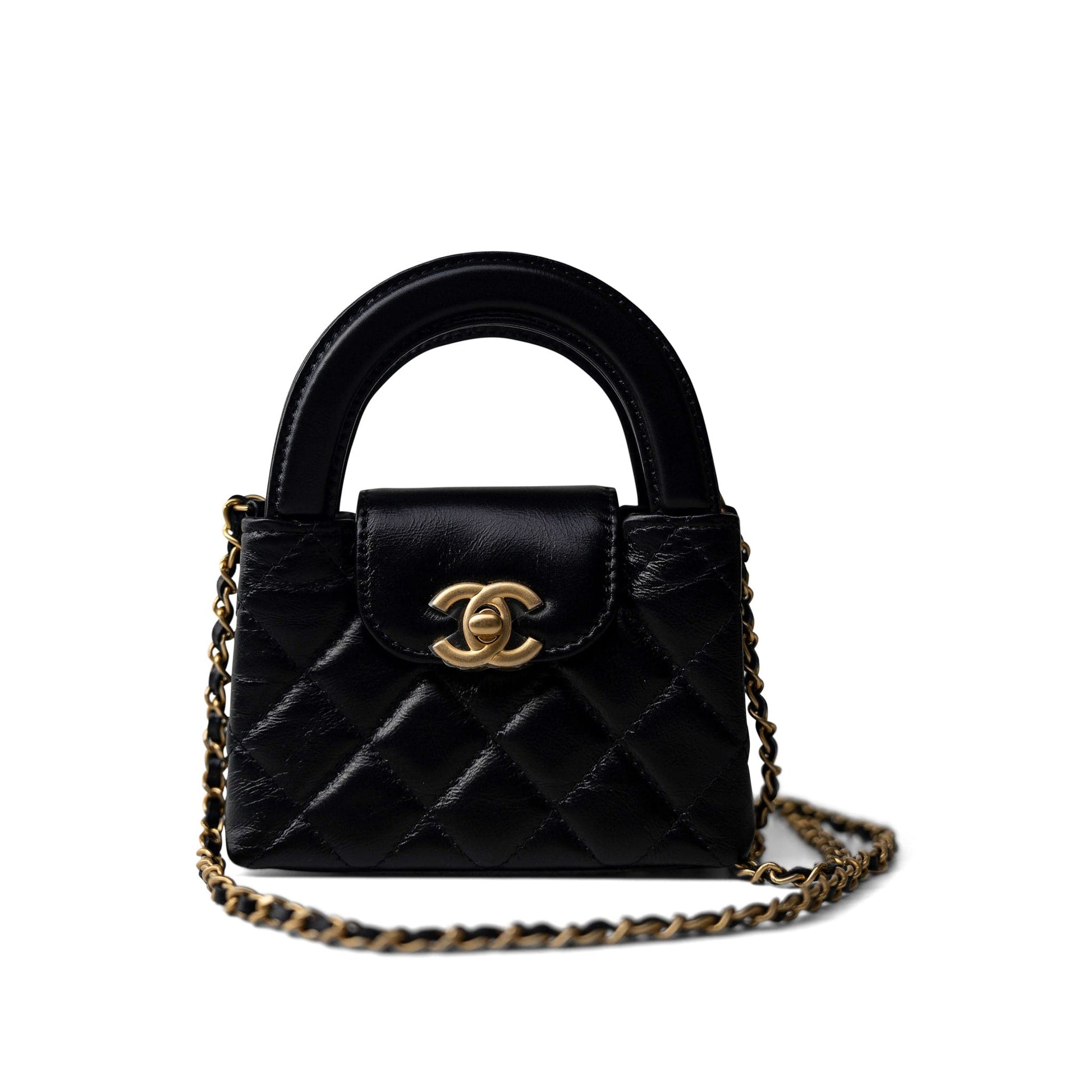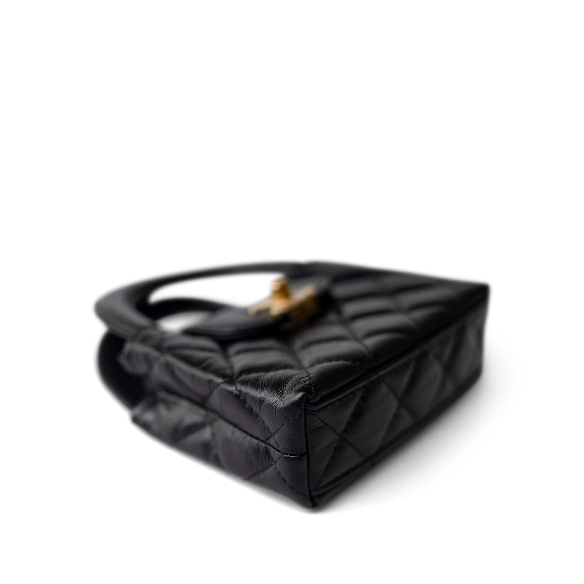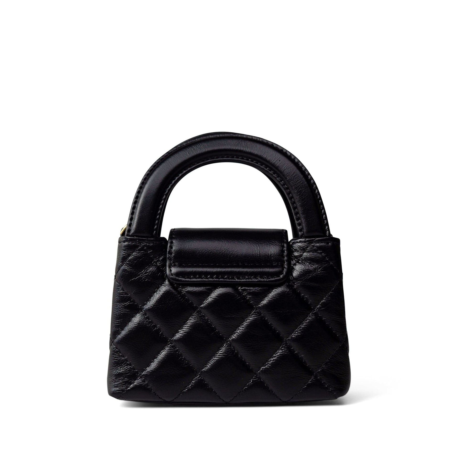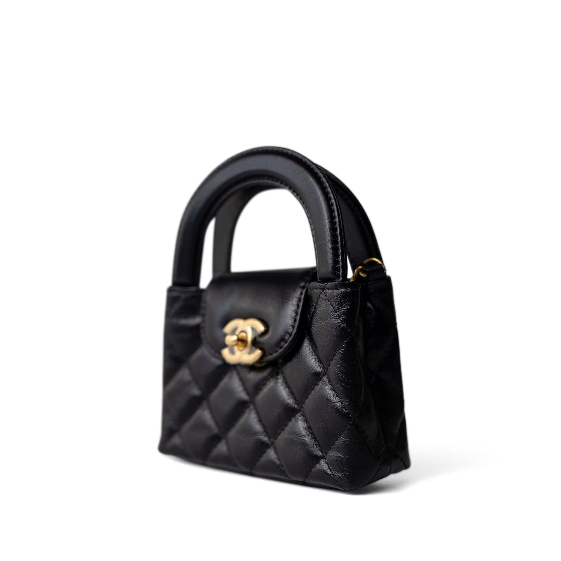 Black Shiny Aged Calfskin Nano Kelly Mini Shopper