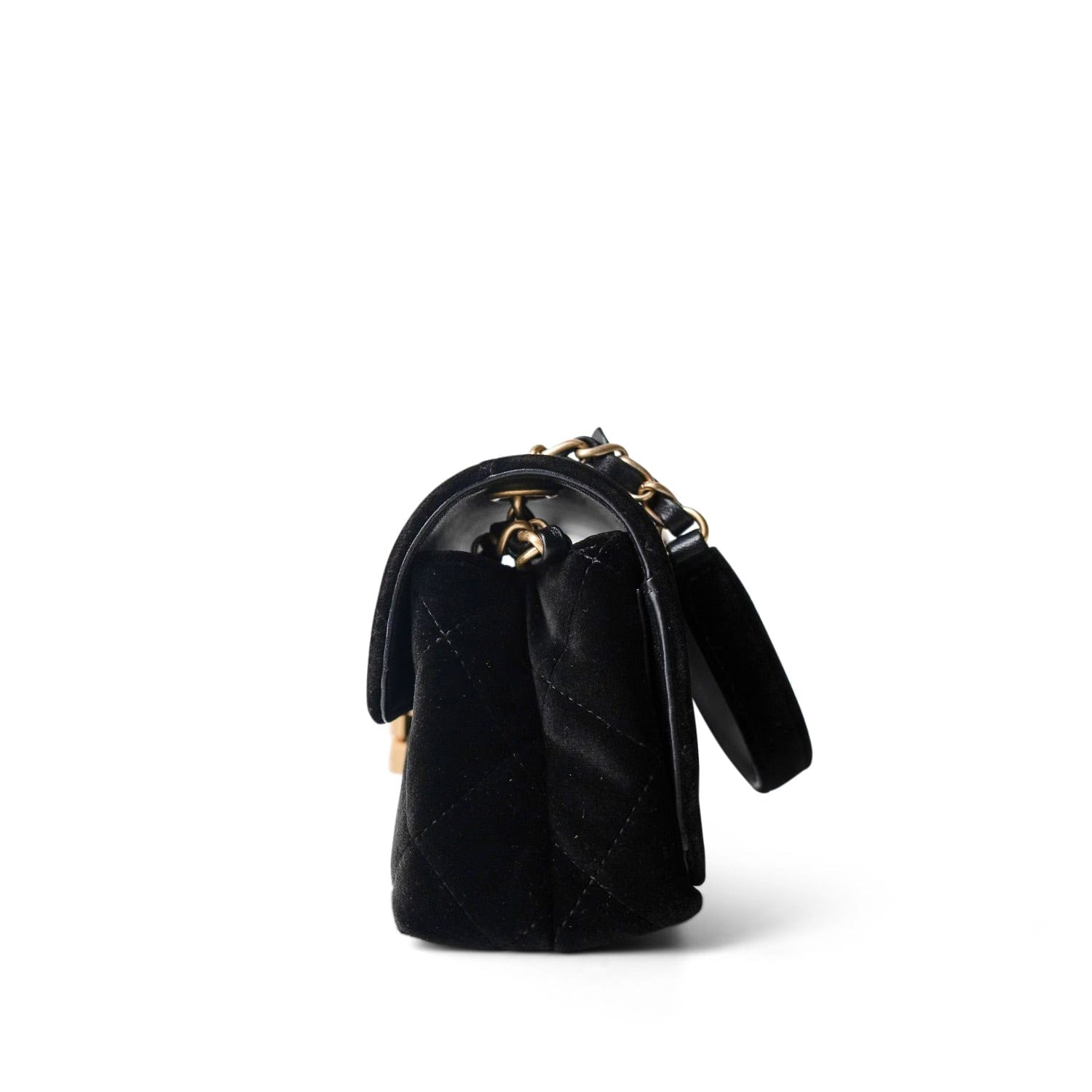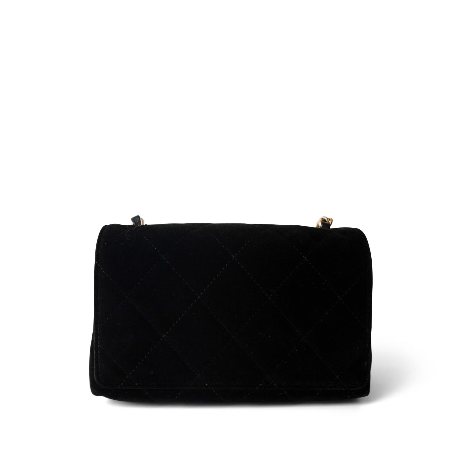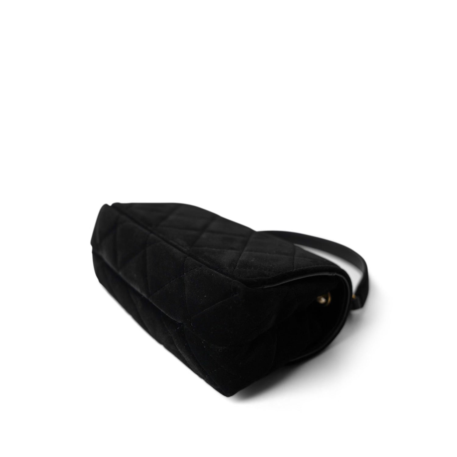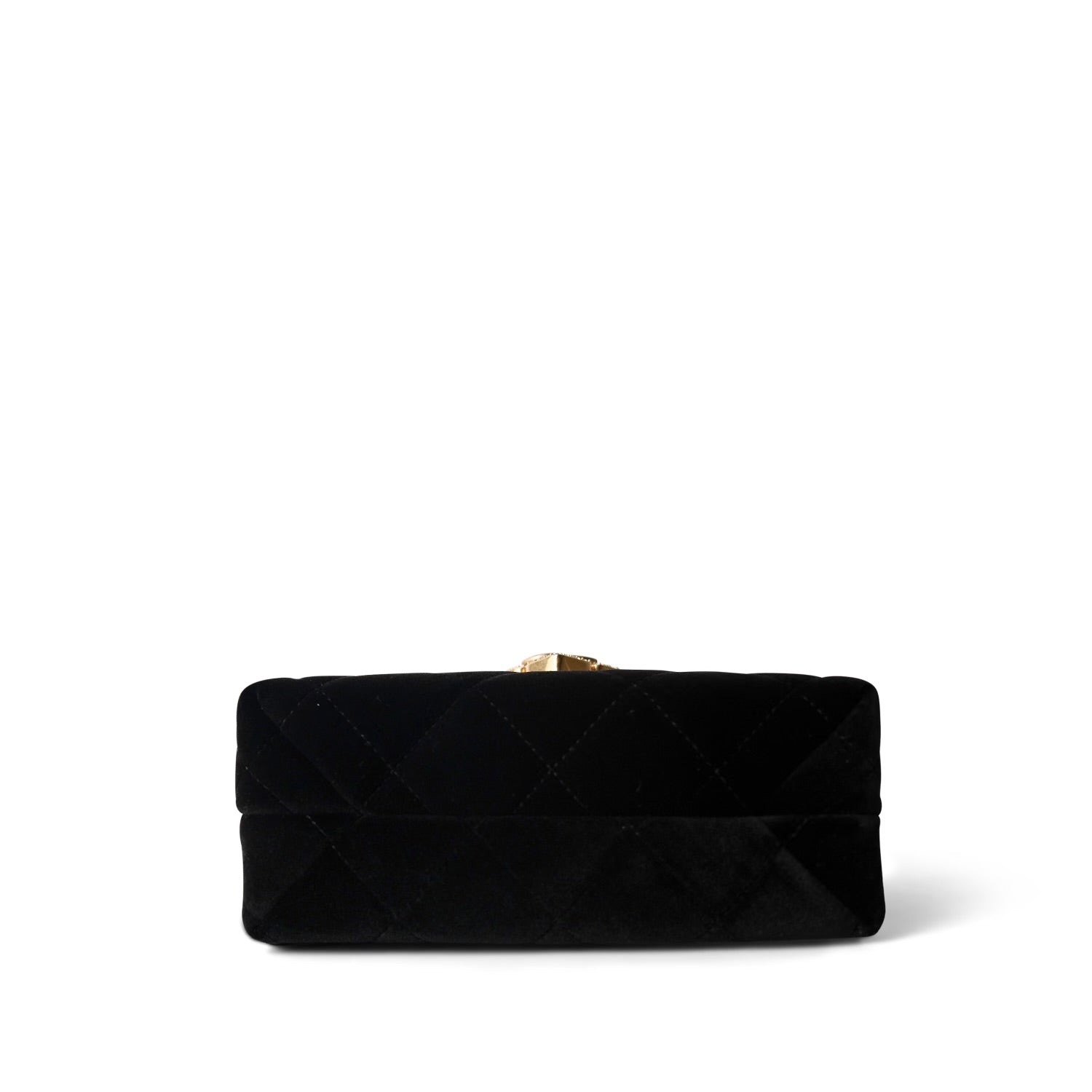 Black Velvet Strass Evening Bag Diamond Lock Flap Bag Aged GHW