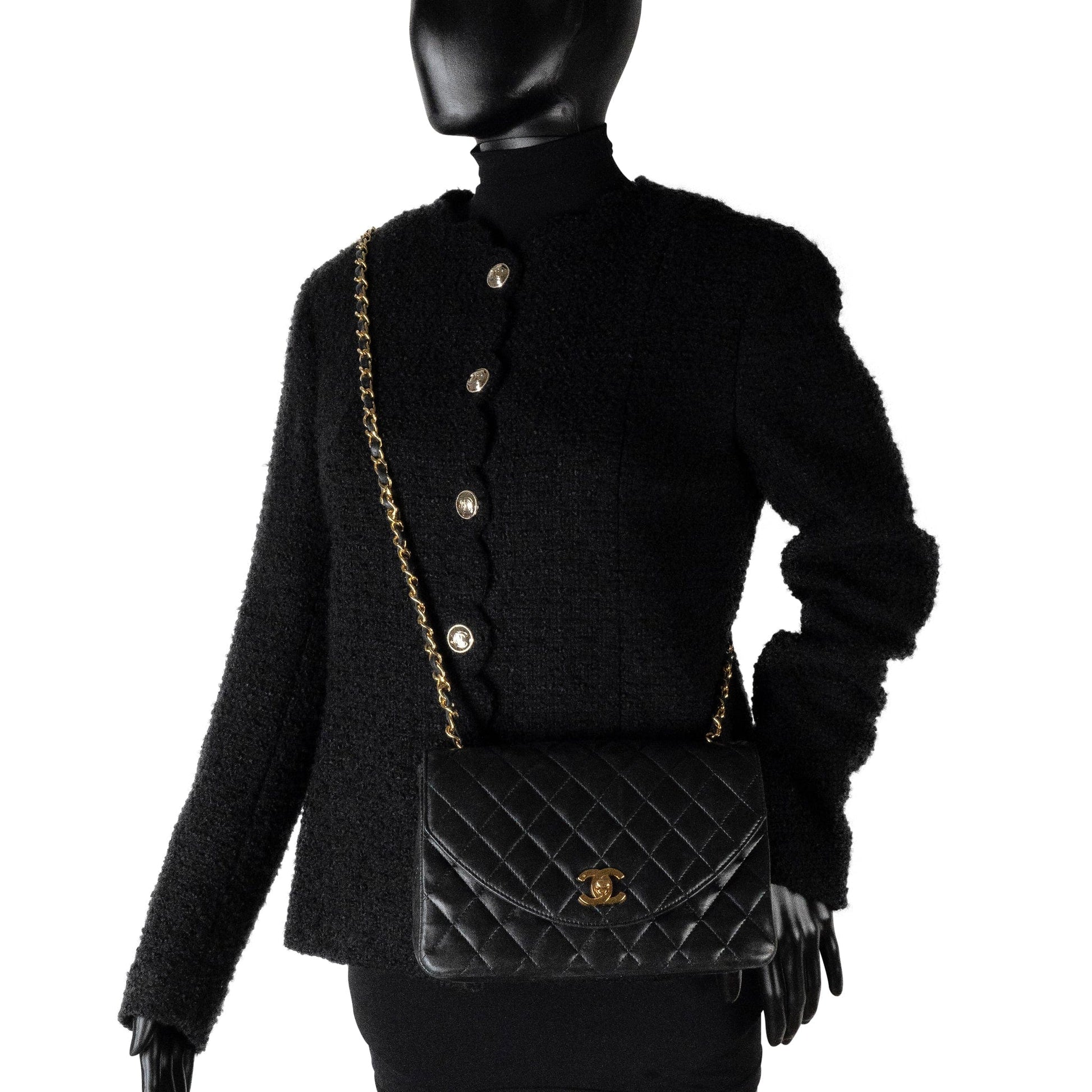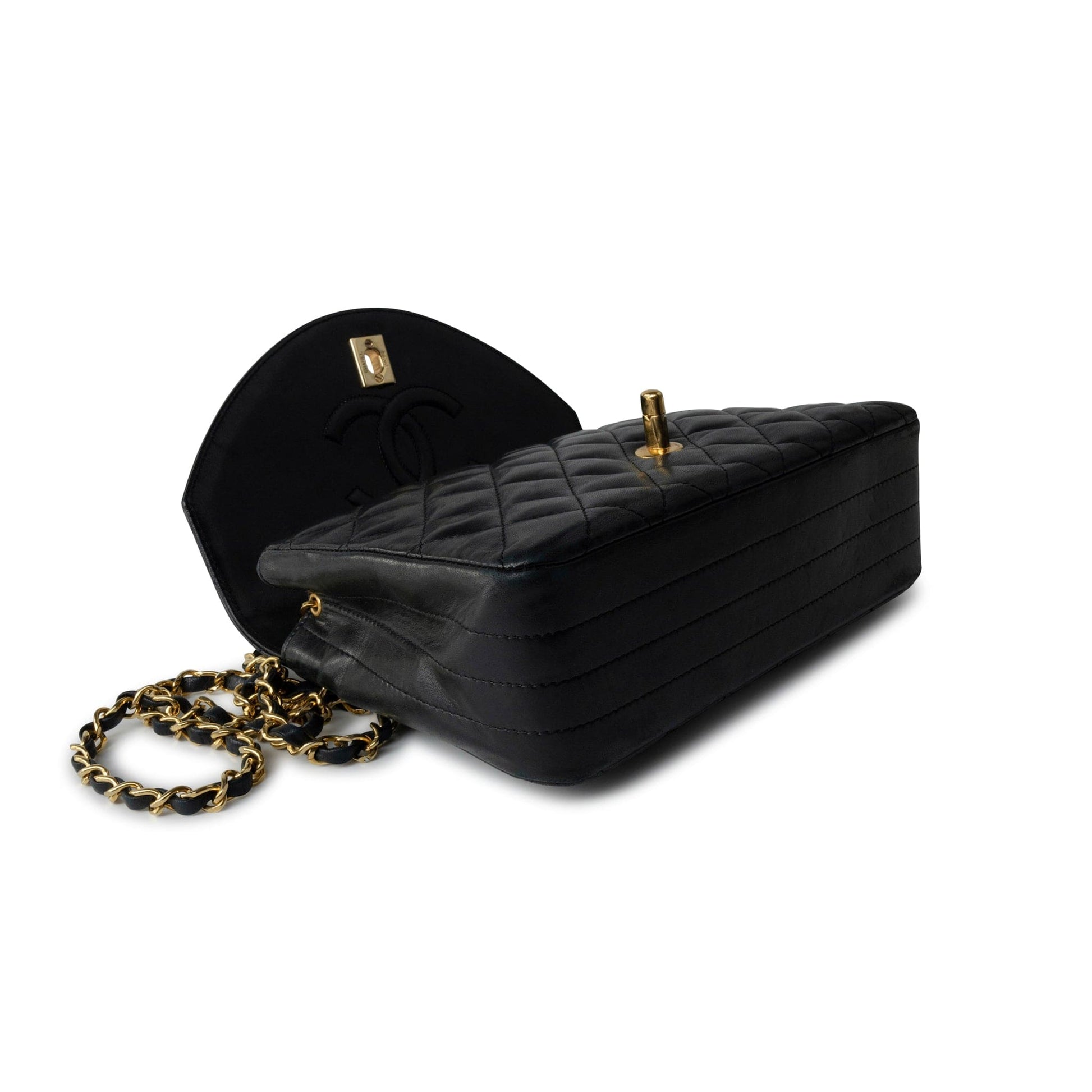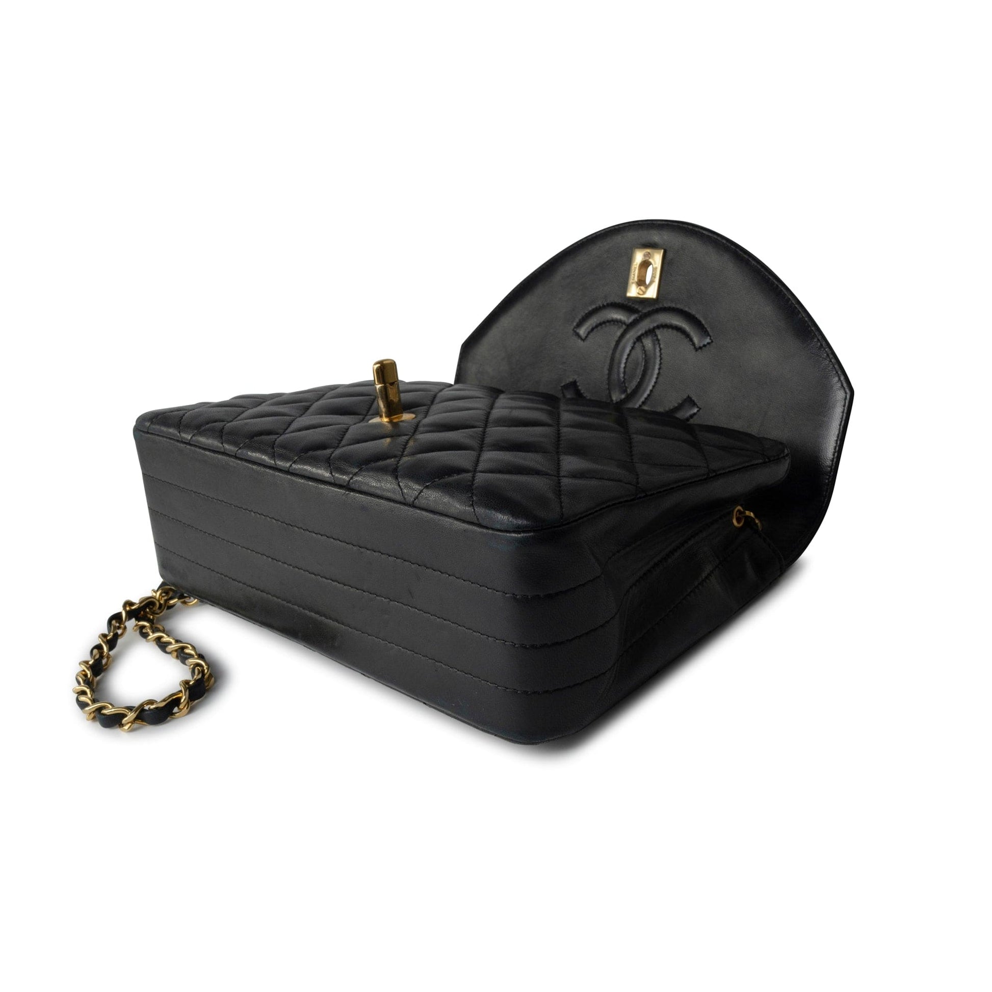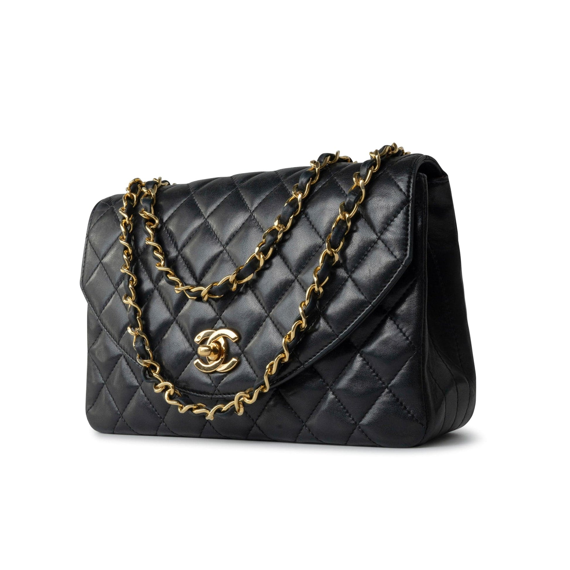 Black Vintage Lambskin Quilted Half Moon Single Flap Small GHW