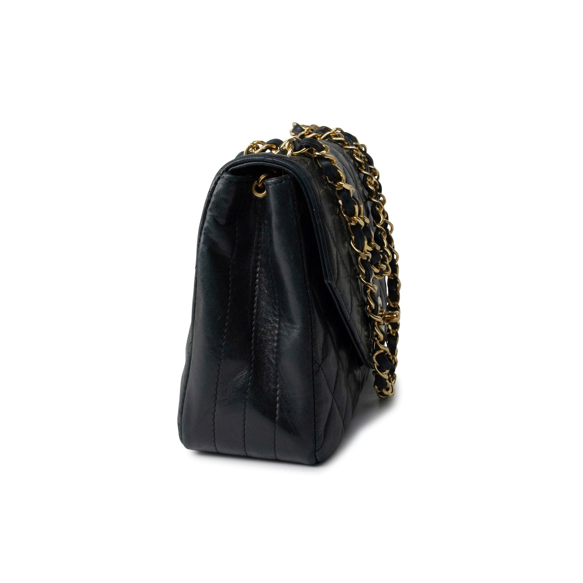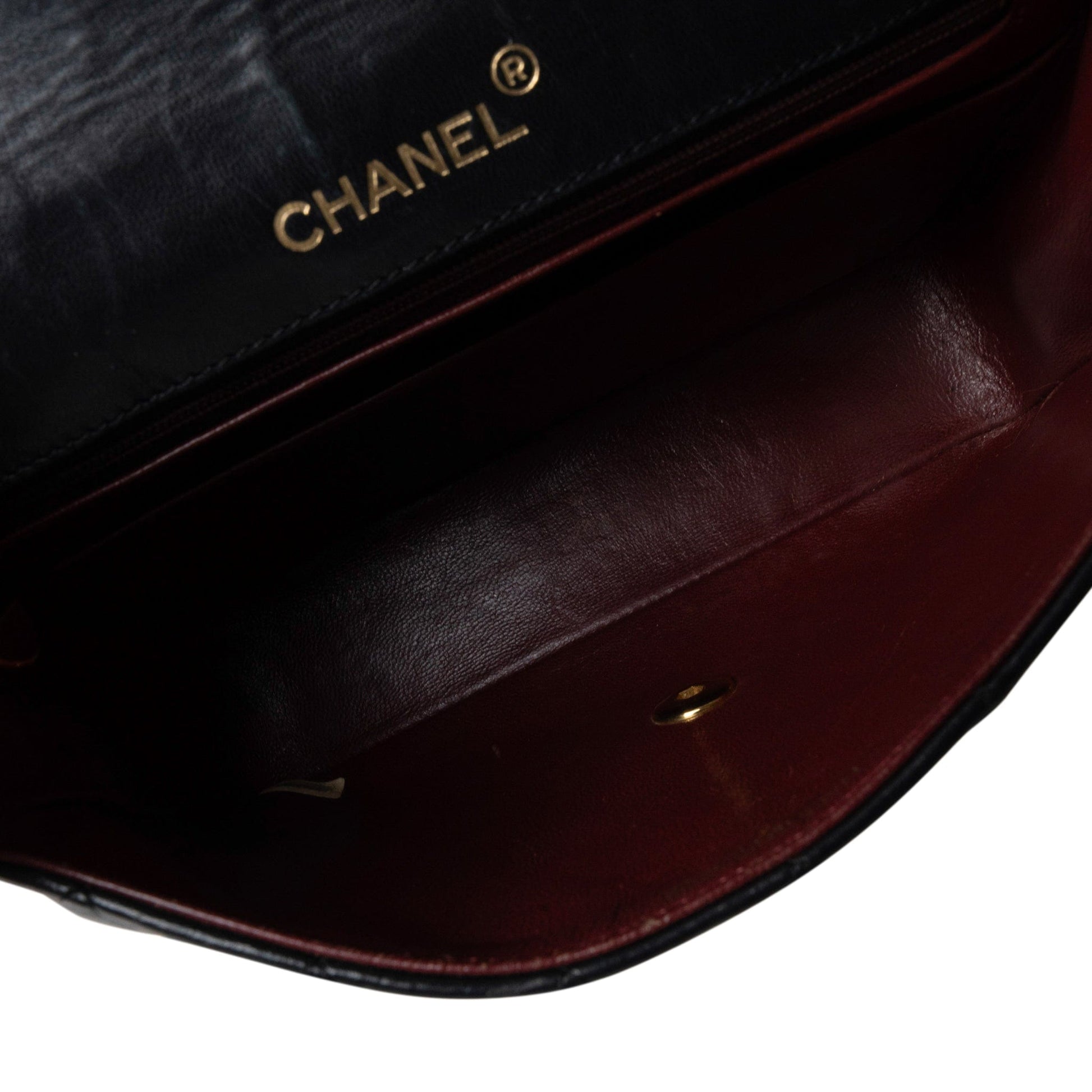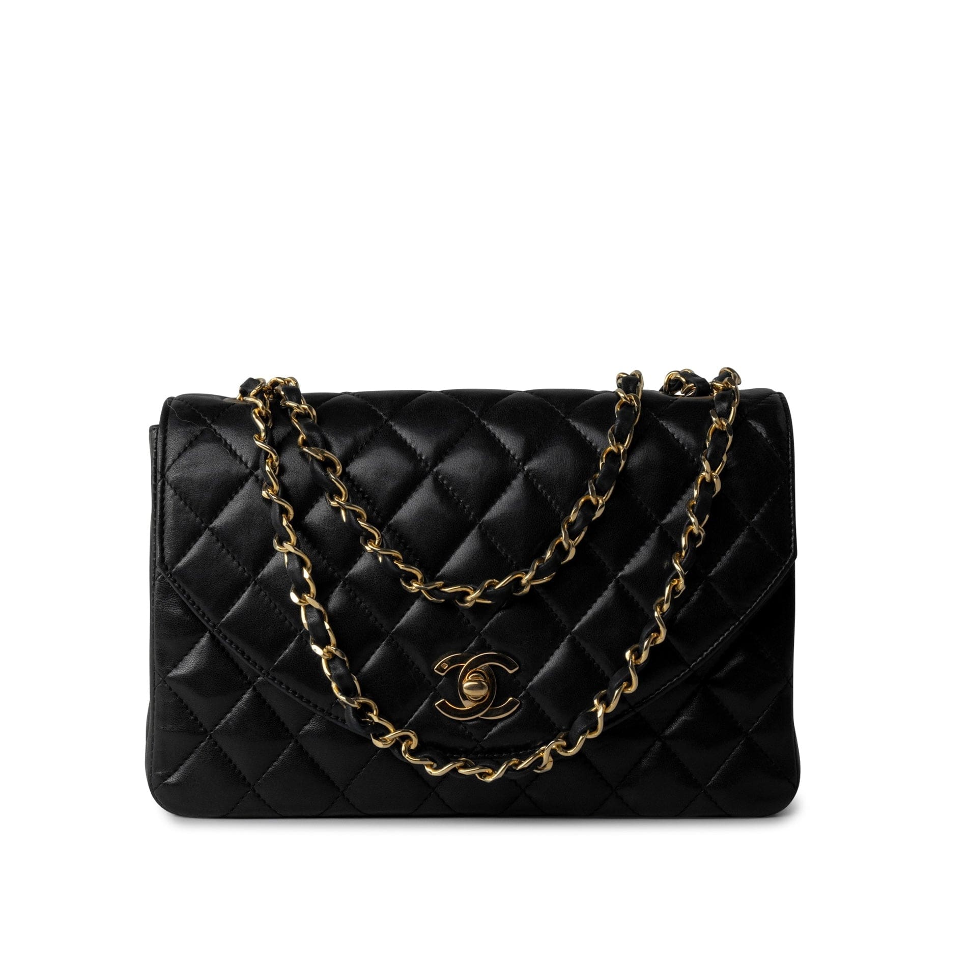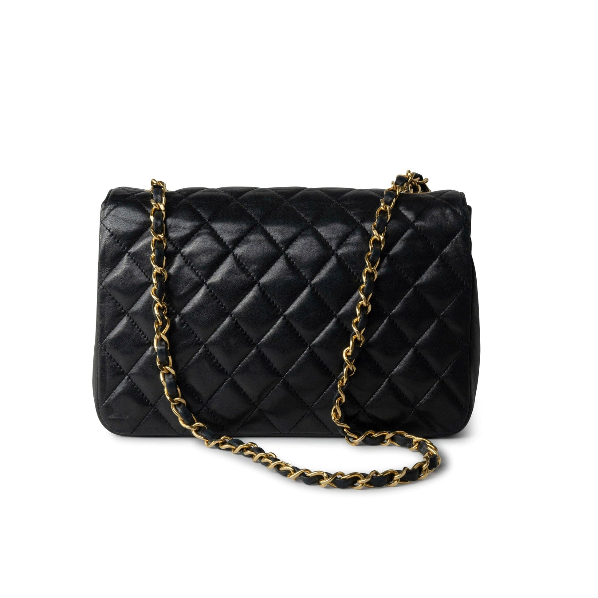 Black Vintage Lambskin Quilted Half Moon Single Flap Small GHW