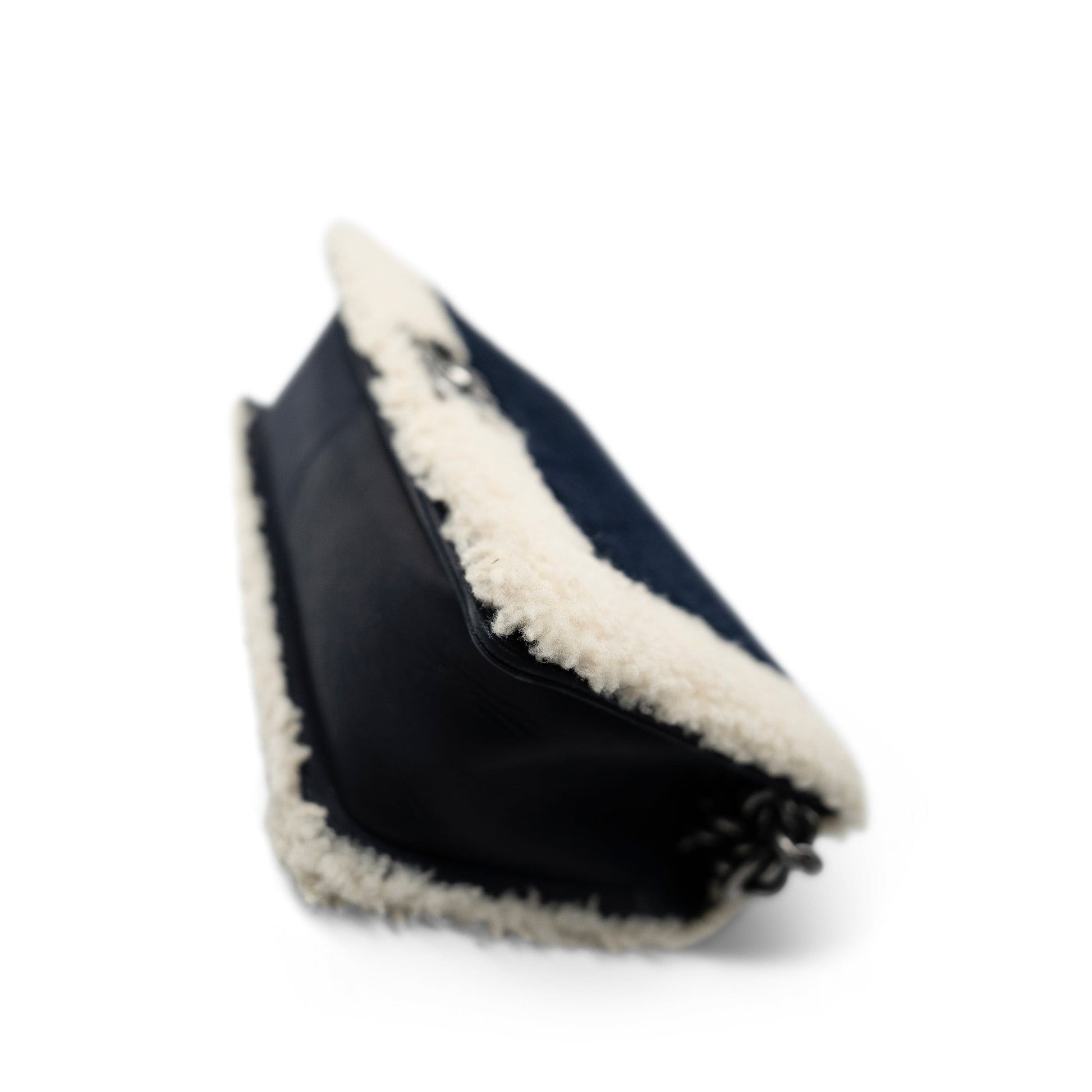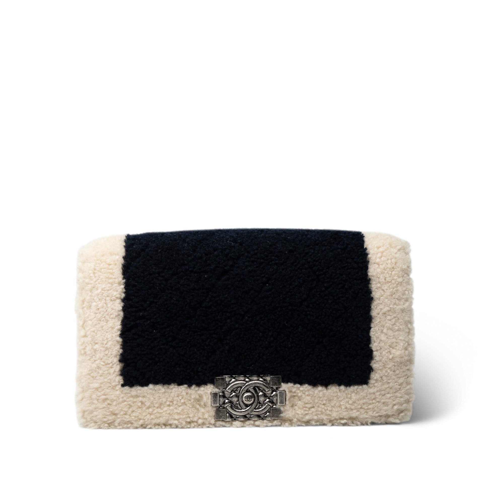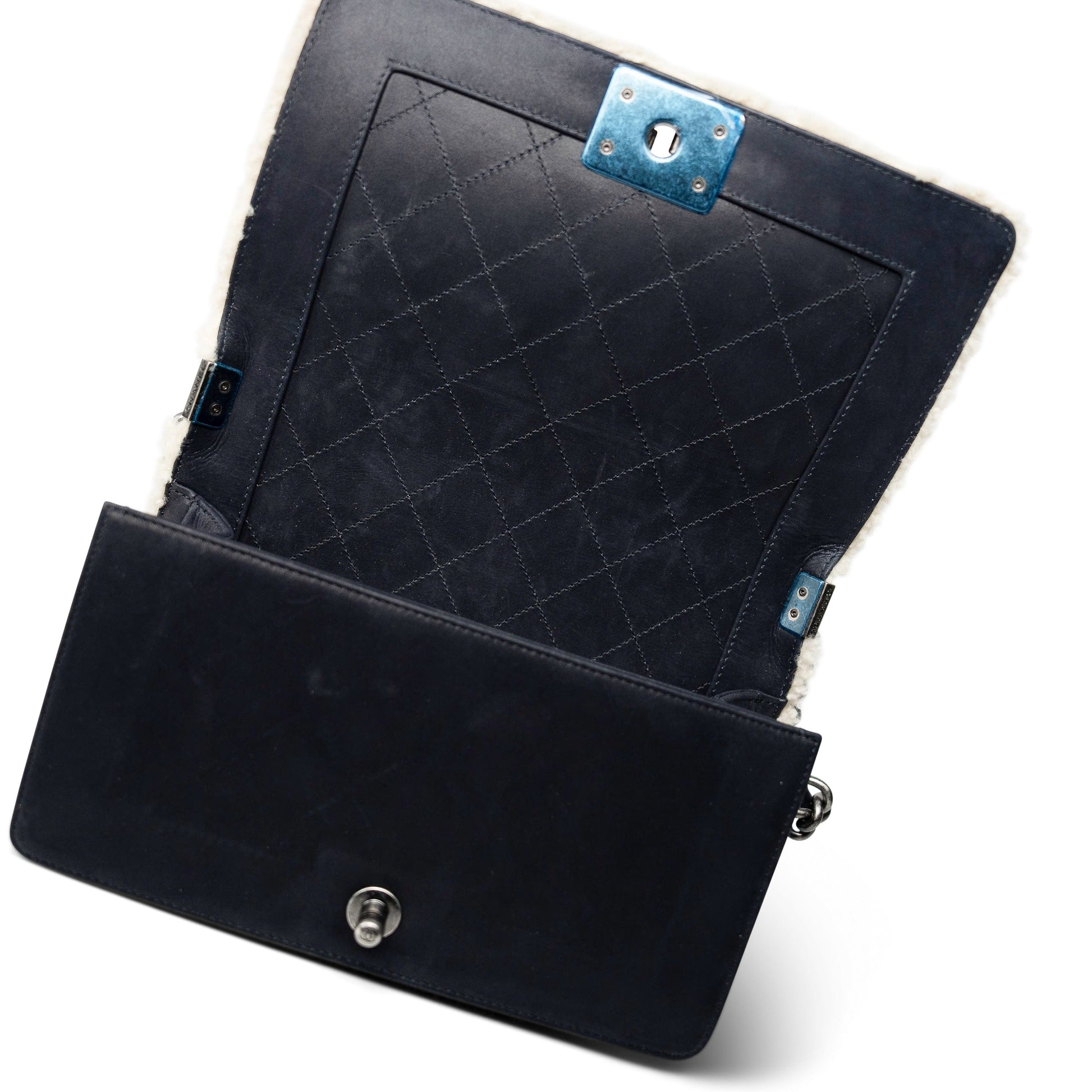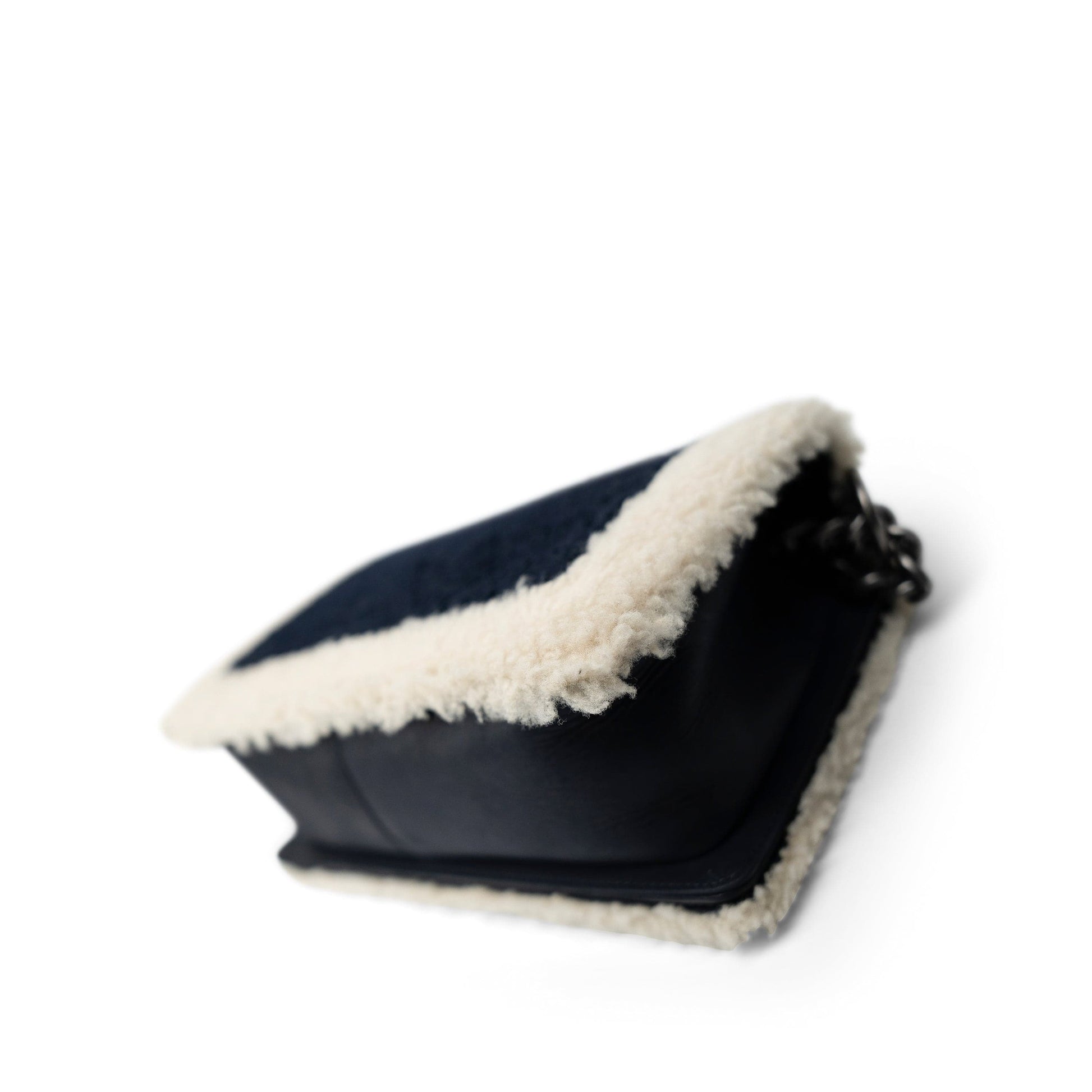 Navy/Cream Shearling Boy Bag Old Medium Ruthenium Hardware