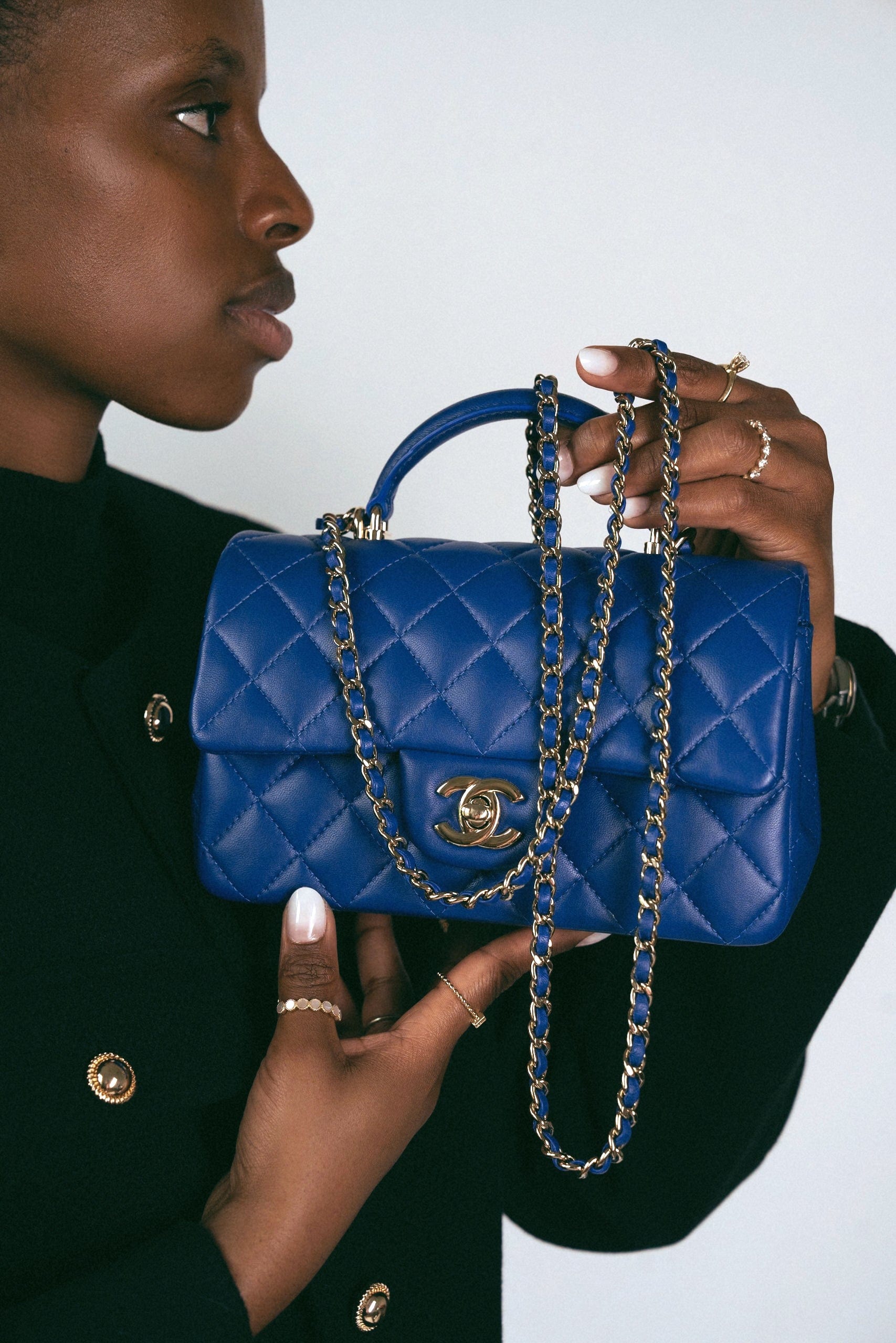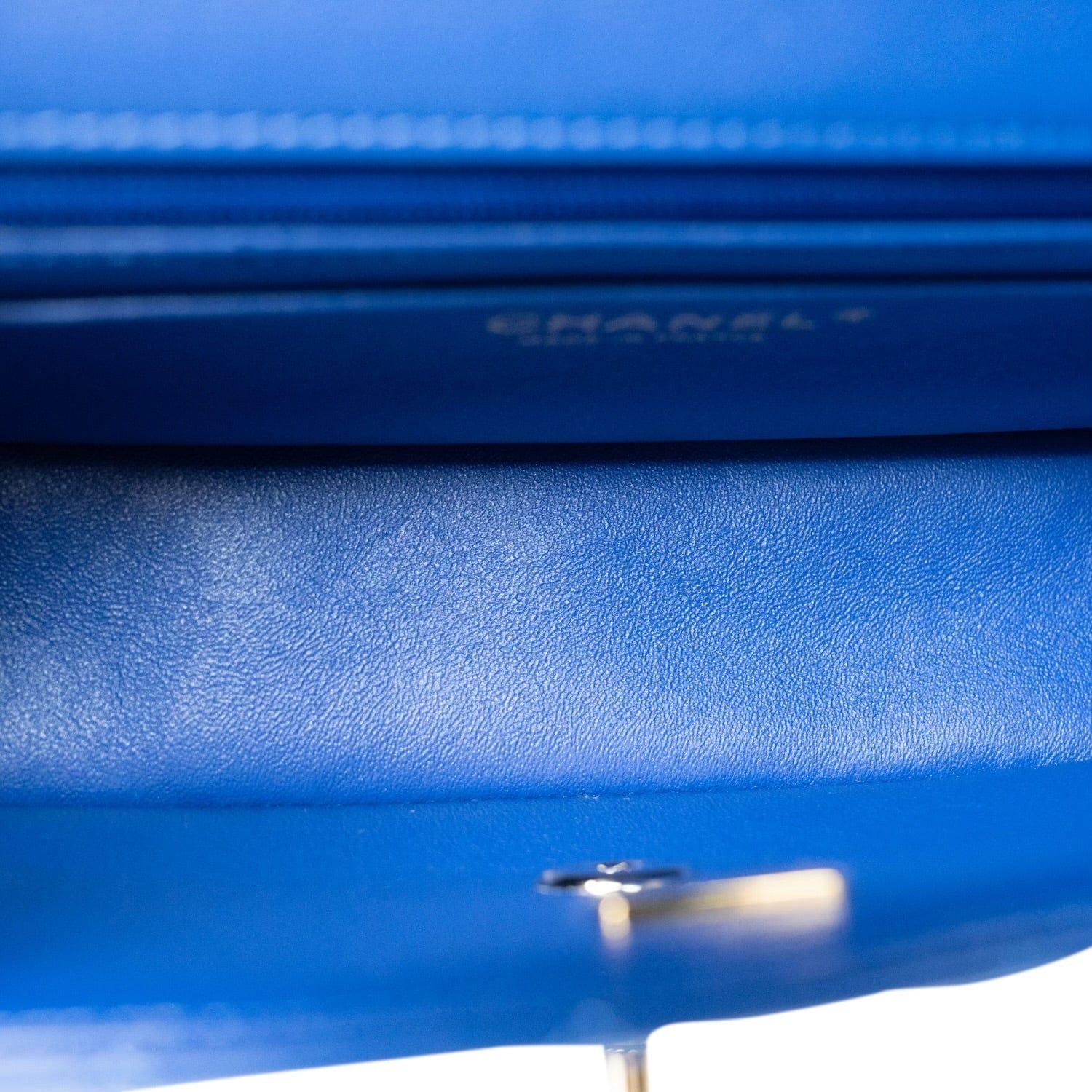 Blue Lambskin Quilted Mini Top Handle Light Gold Hardware