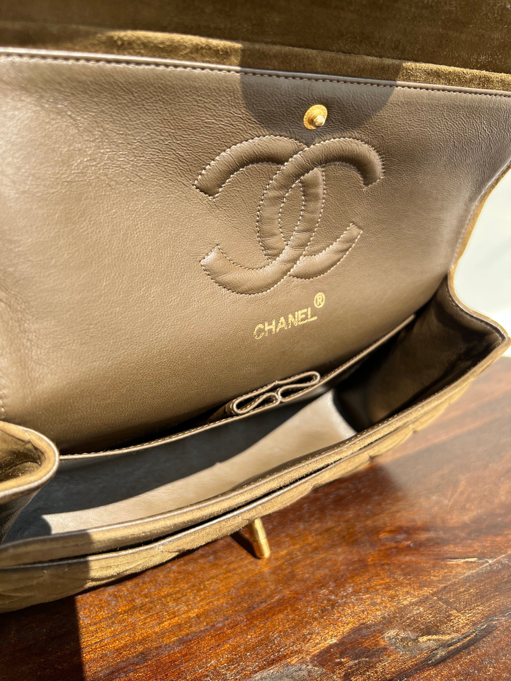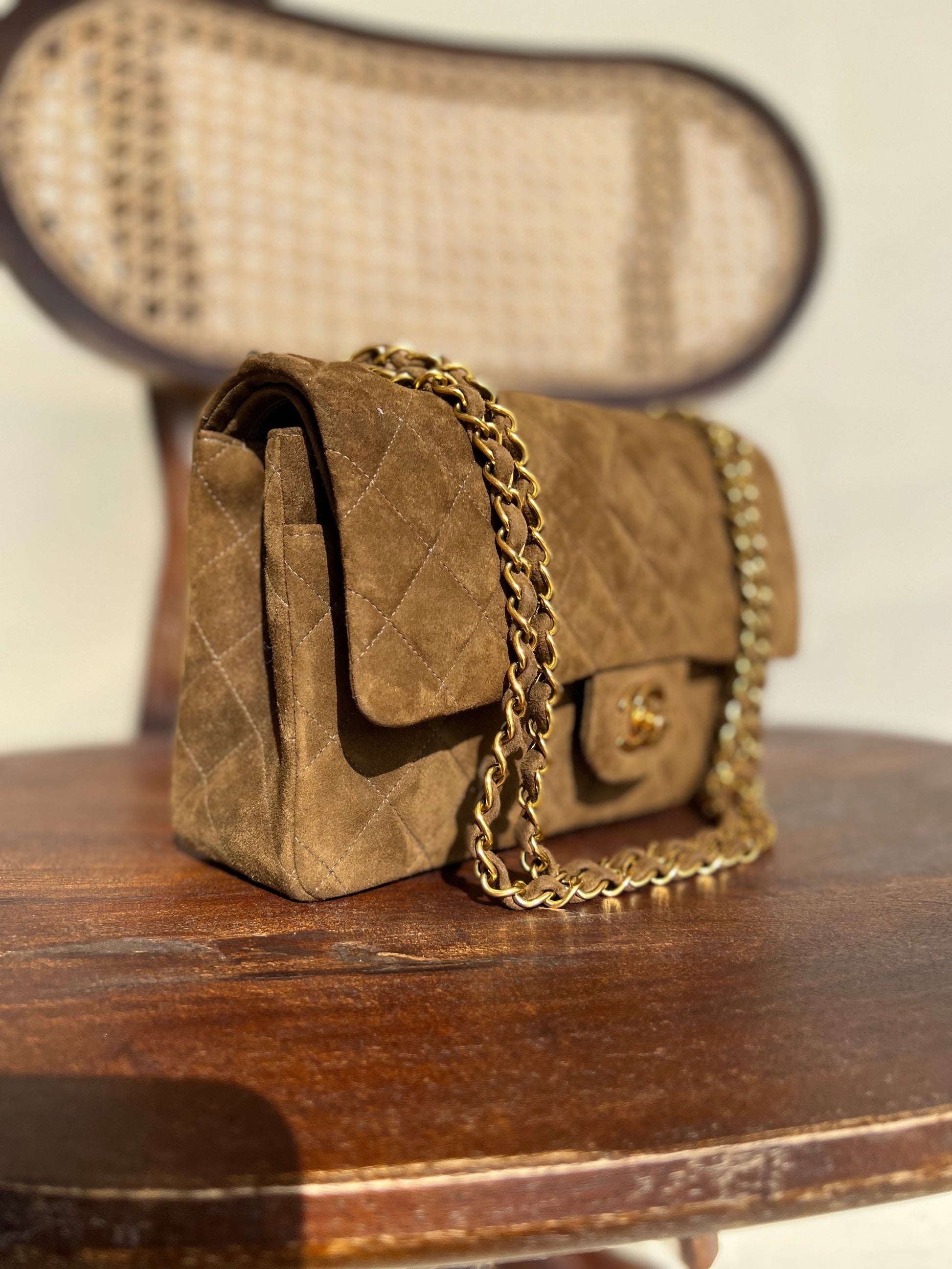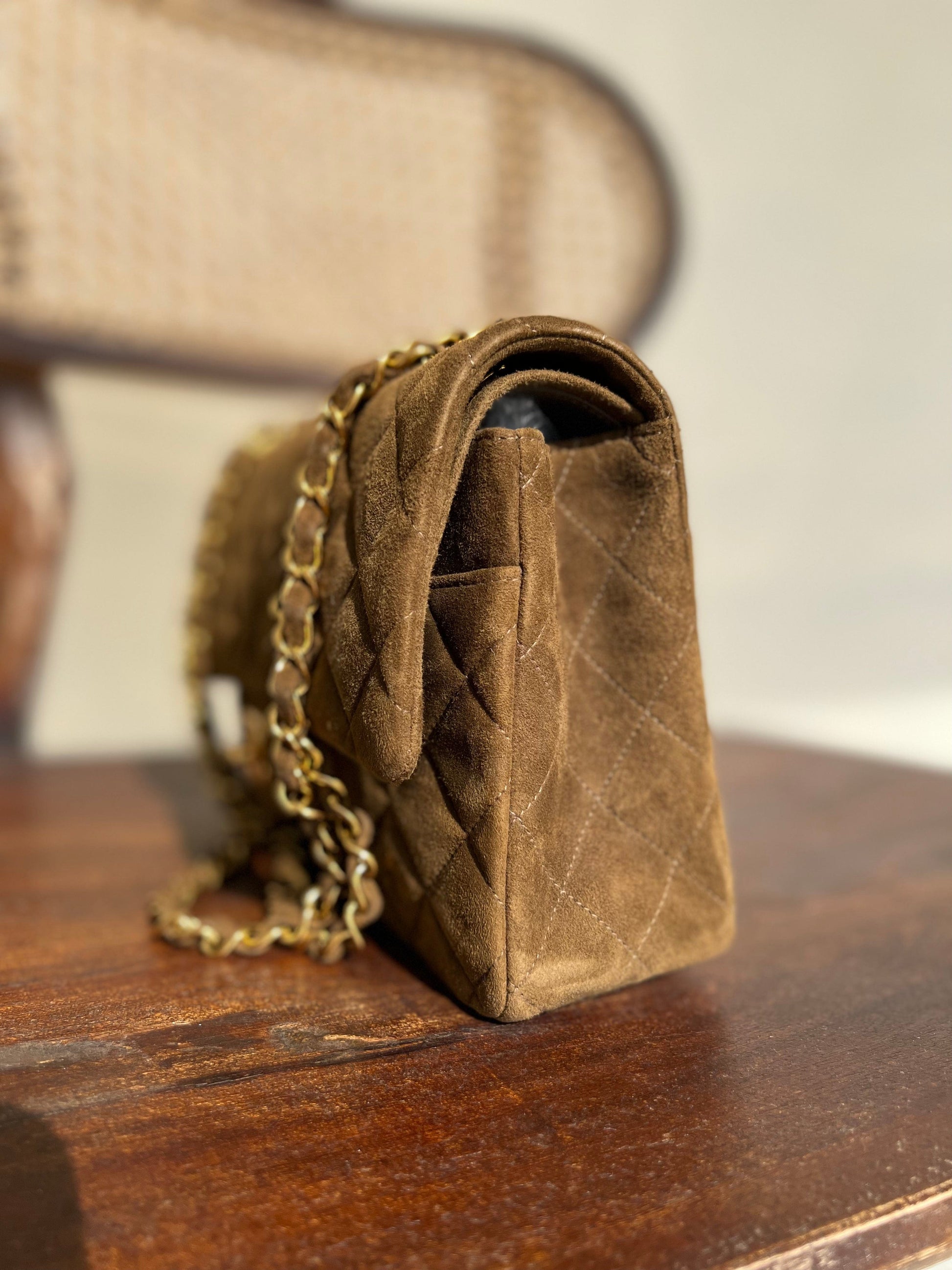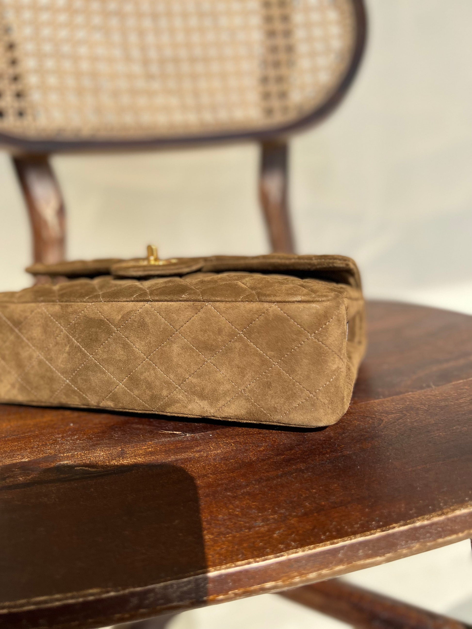 Vintage Brown Suede Quilted Classic Double Flap GHW