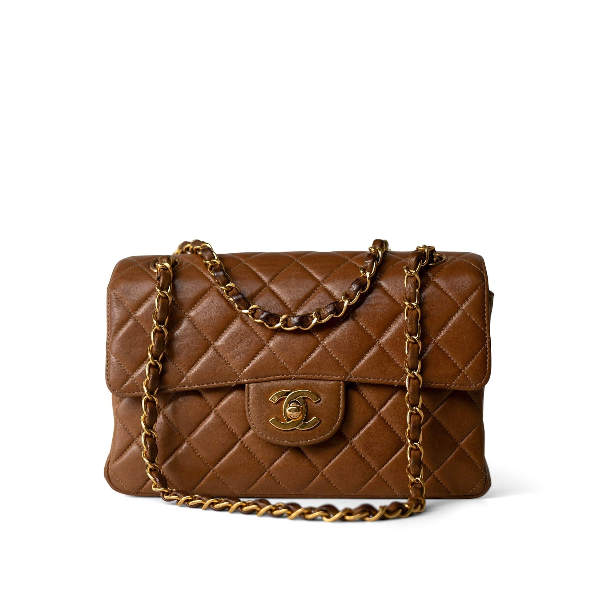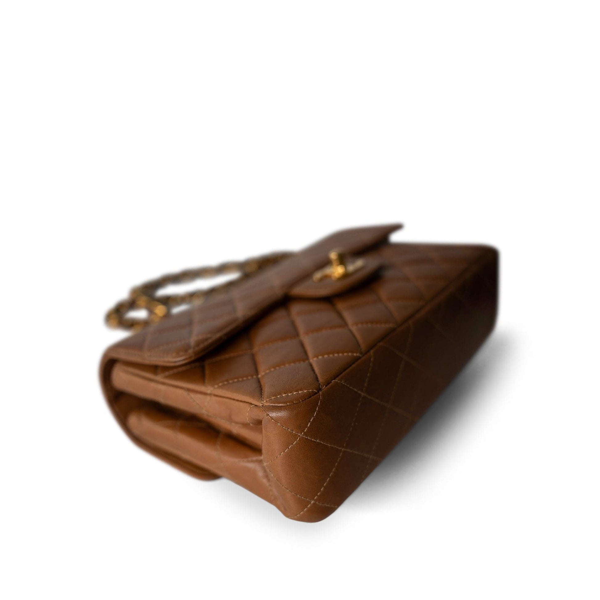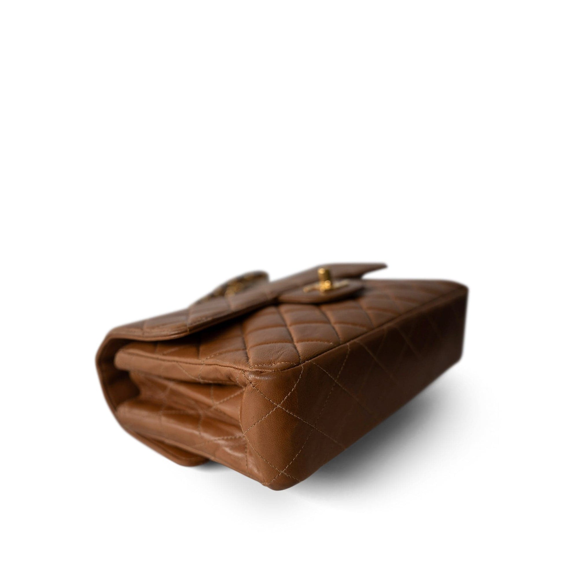 Brown Lambskin Double Faced Flap Bag Gold Hardware