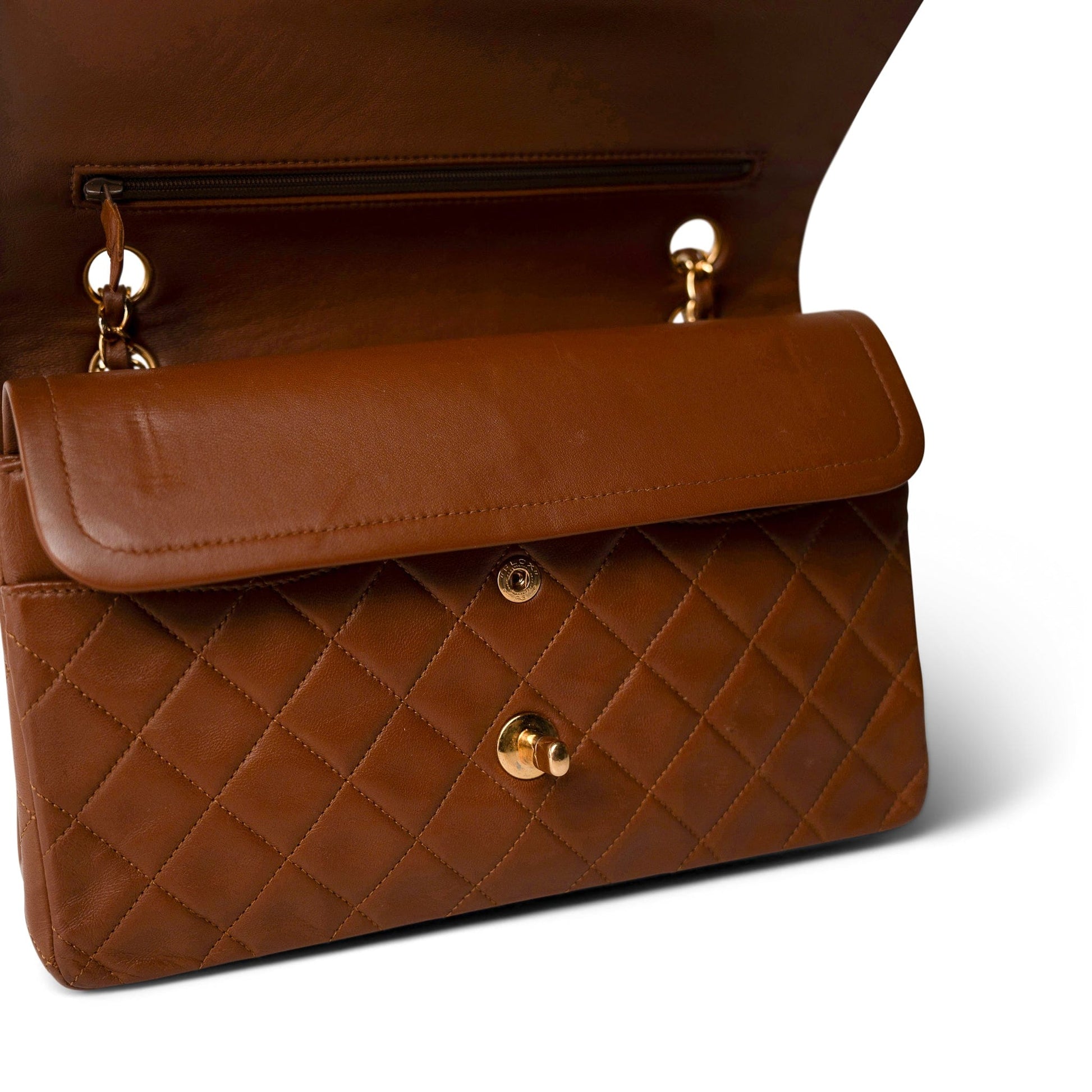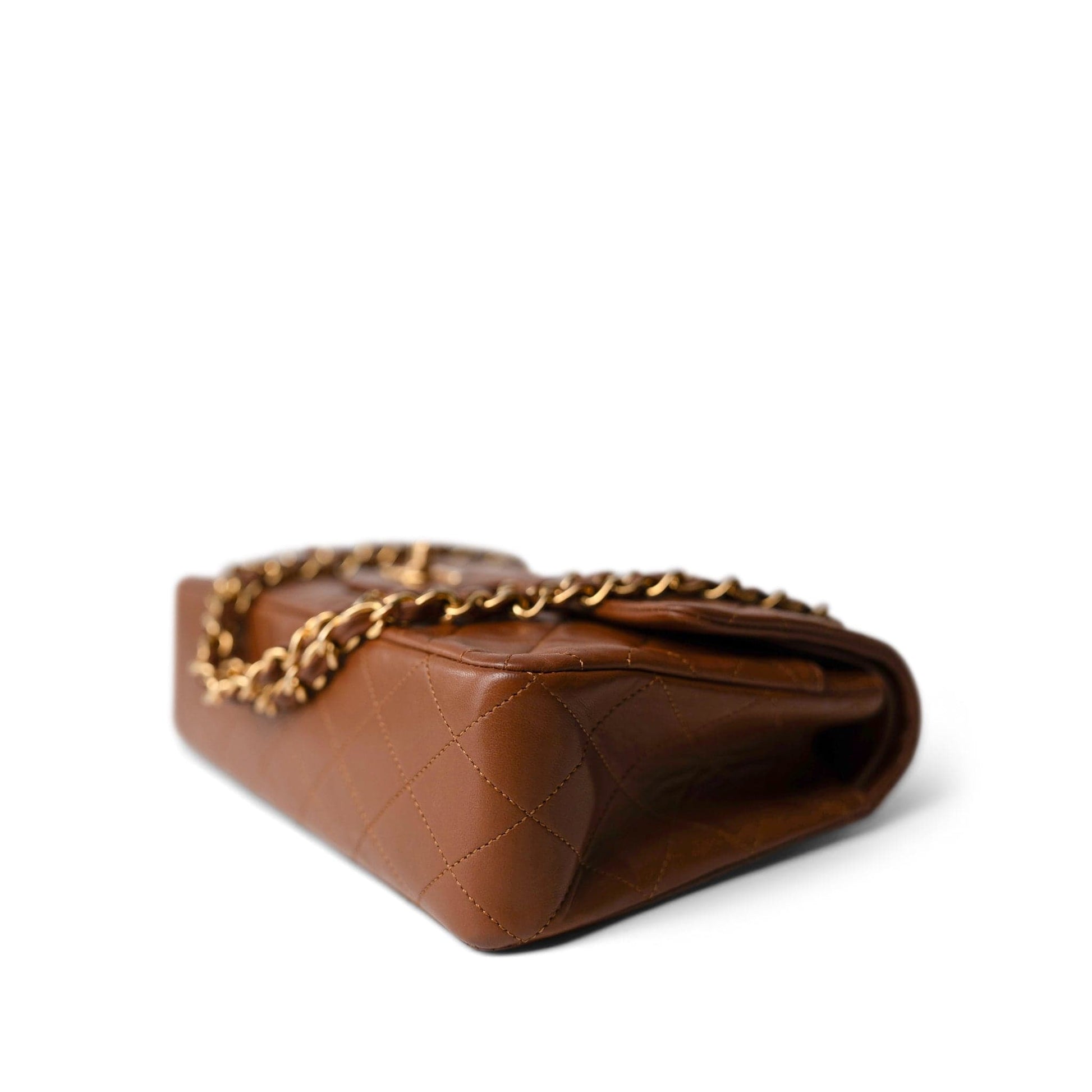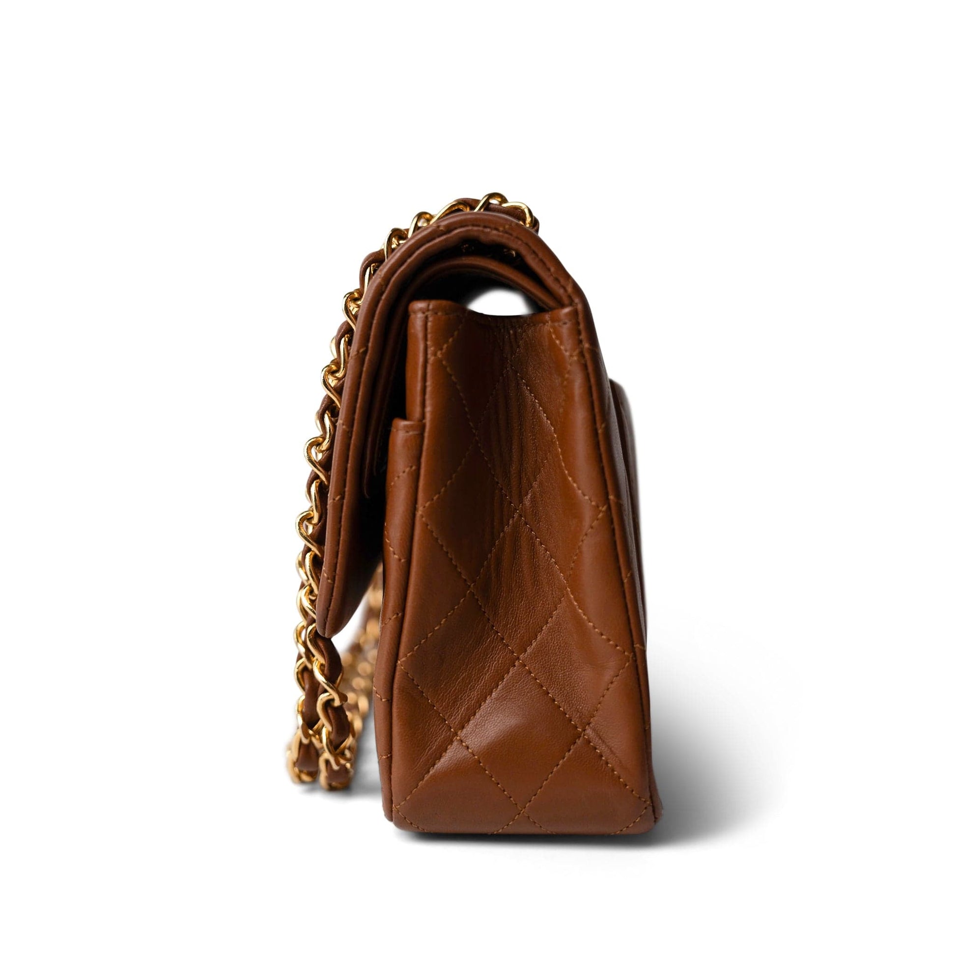 Vintage Brown Lambskin Quilted Classic Flap Medium Gold Hardware