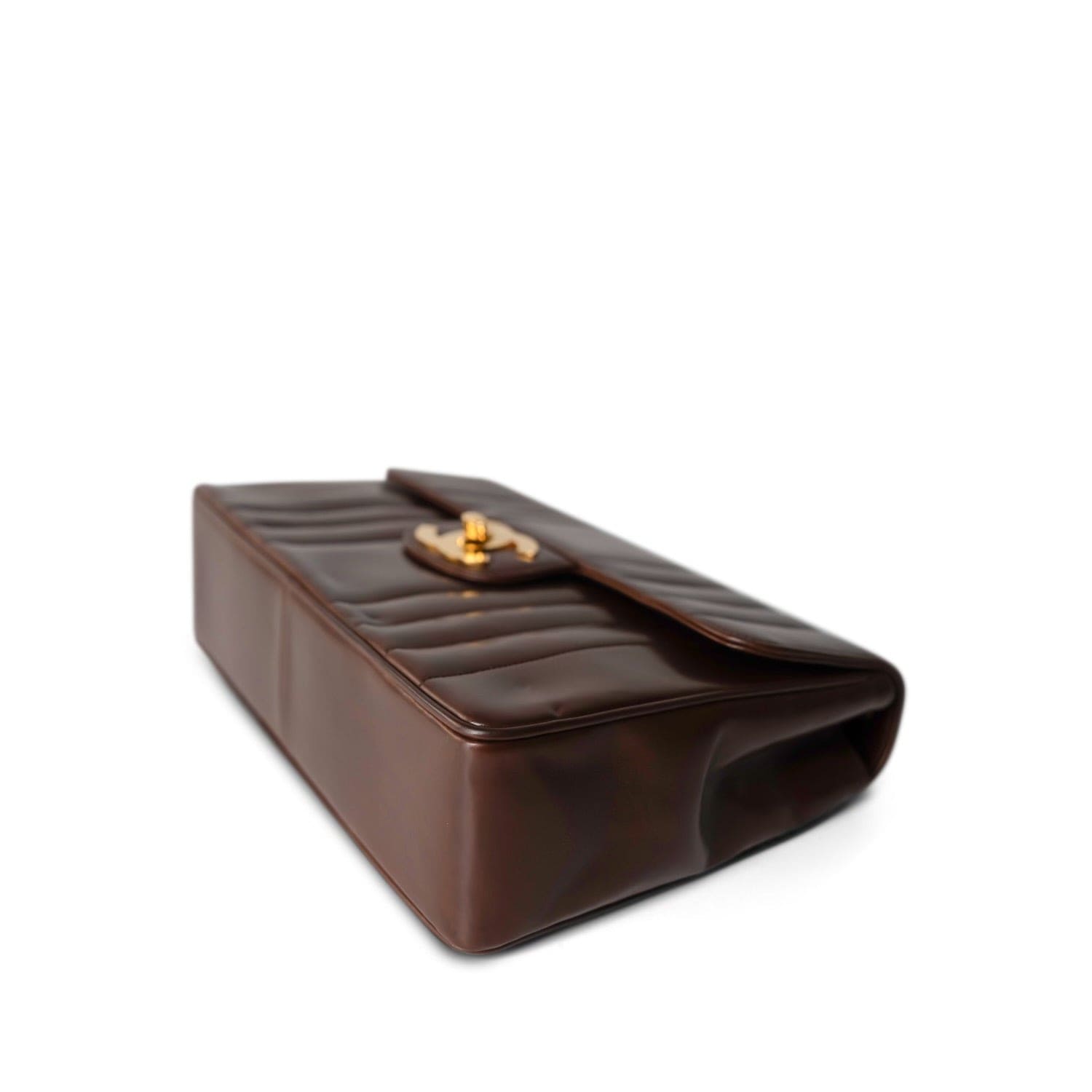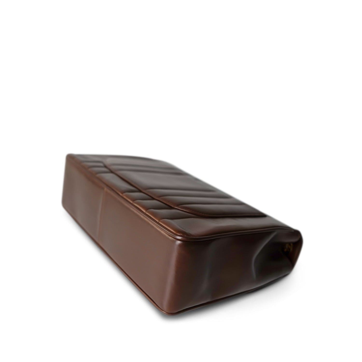 Brown Mademoiselle Lambskin Vertical Flap Jumbo Gold Hardware