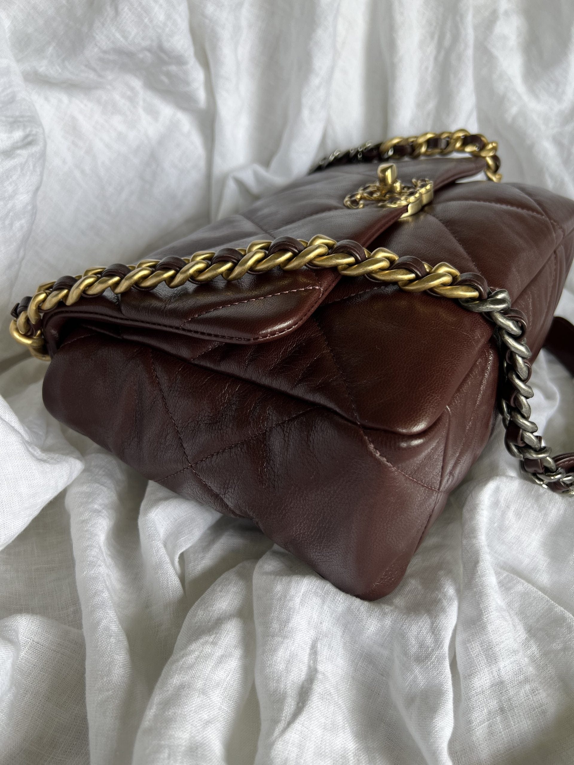 Burgundy Goatskin Quilted 19 Flap Medium/Large Mixed Hardware