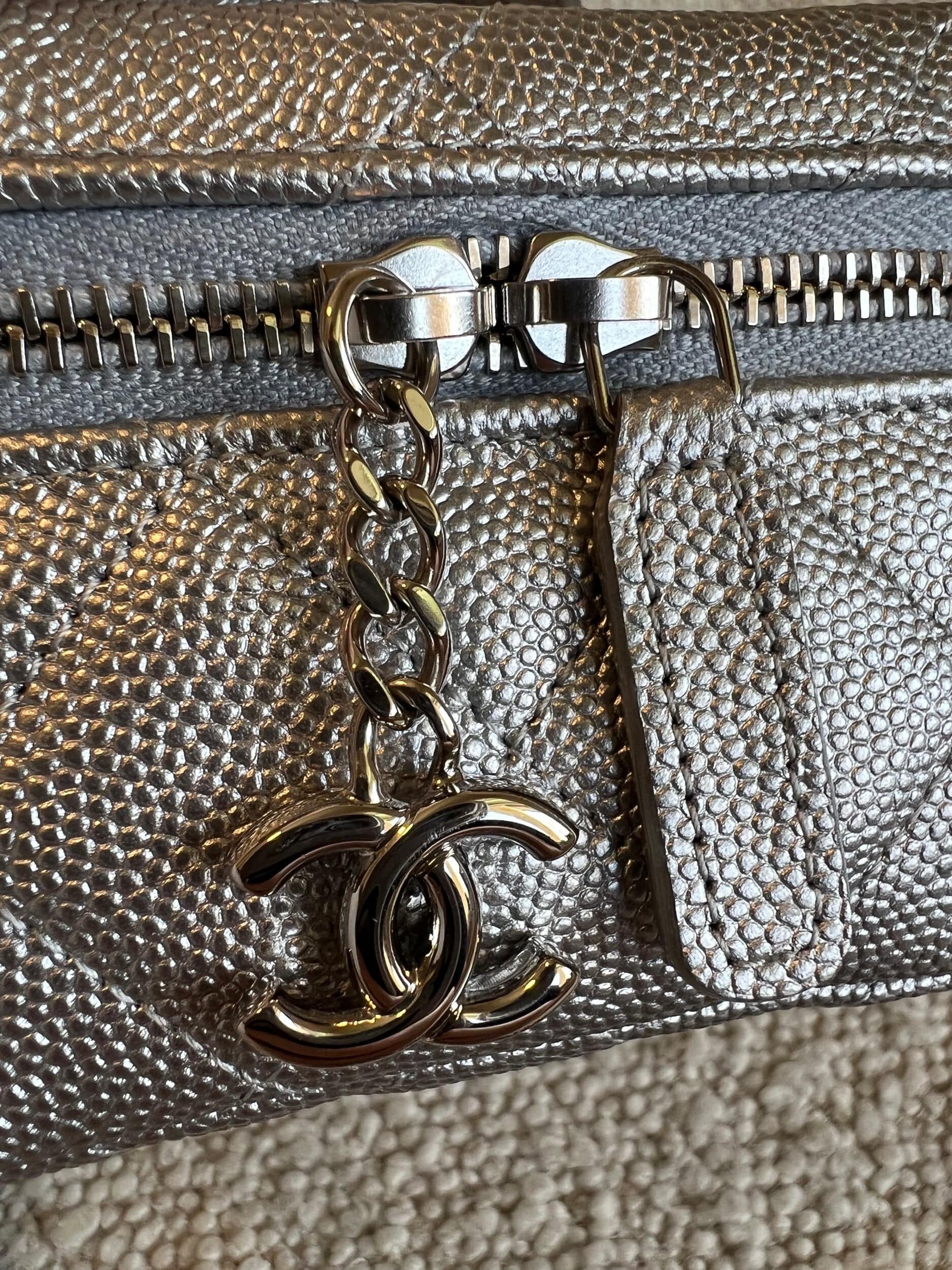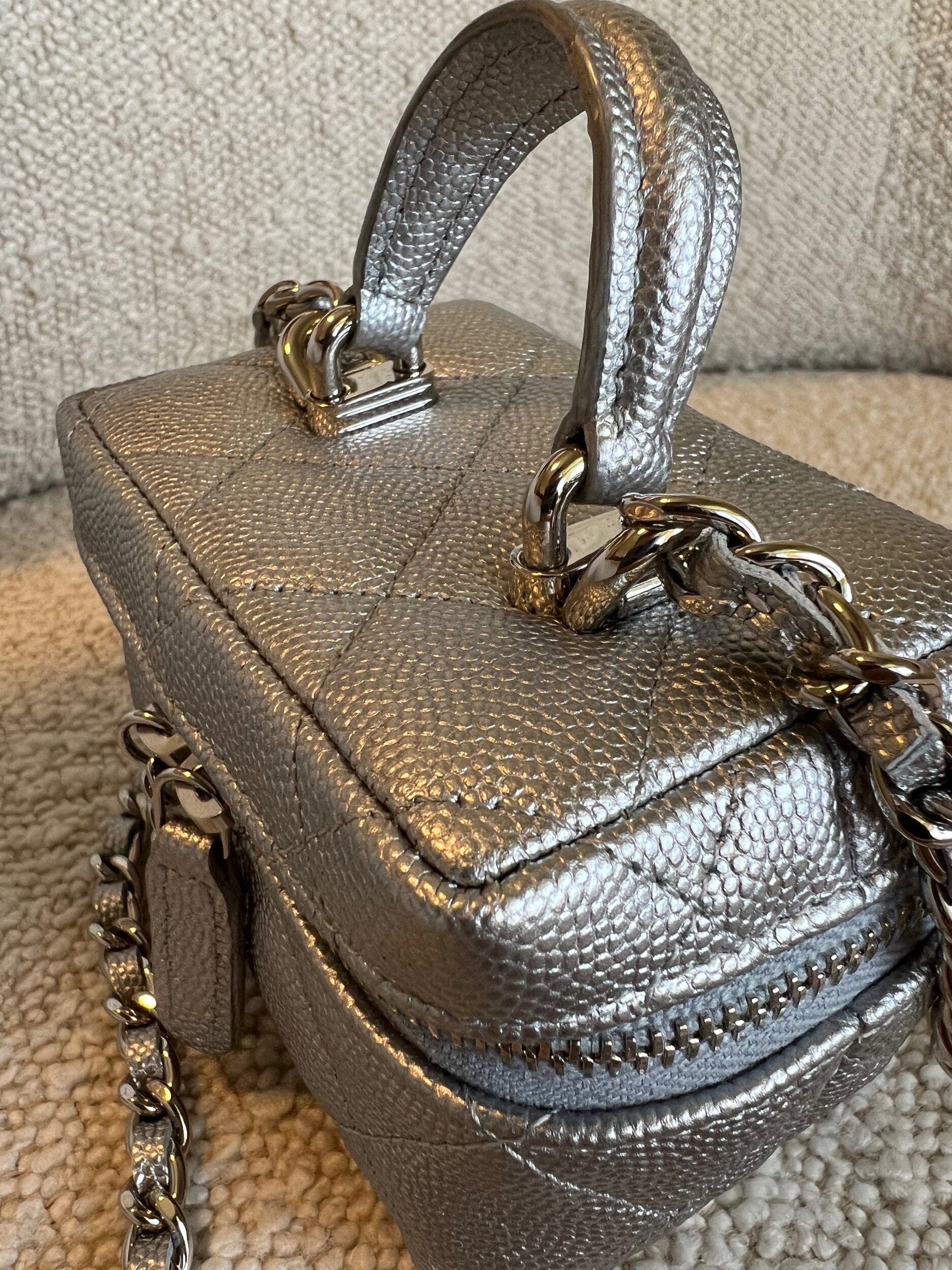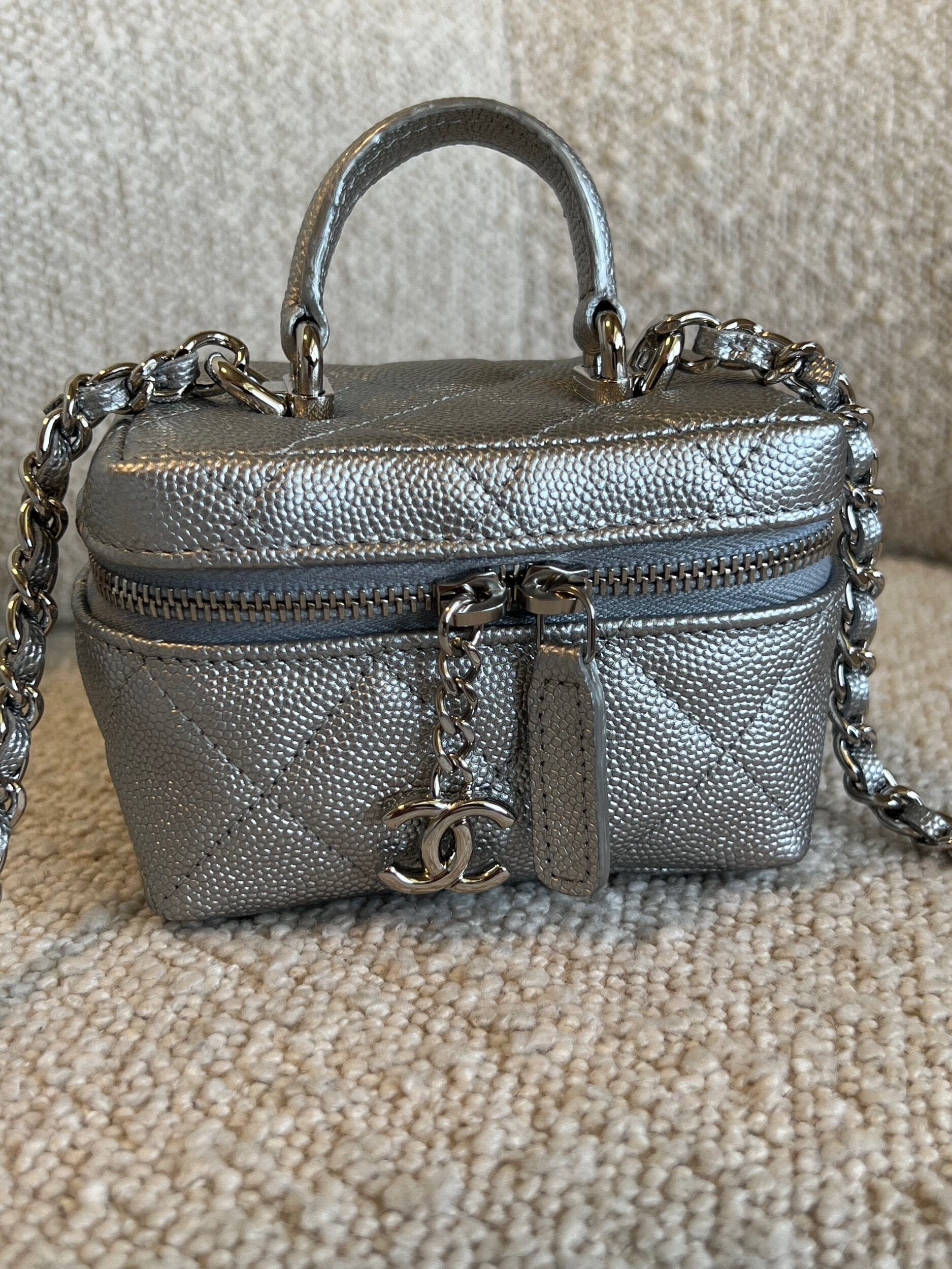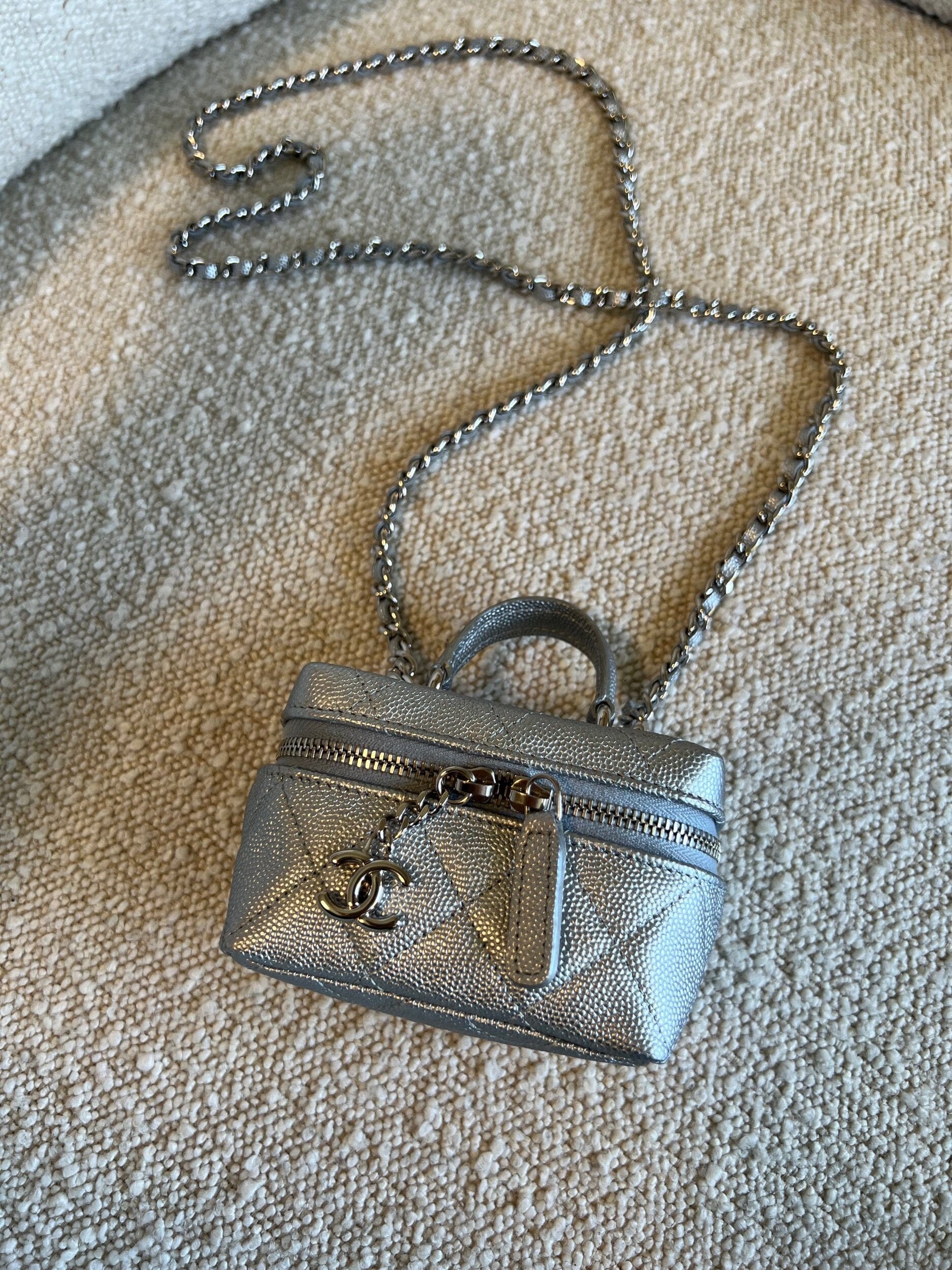 Chanel 21S Metallic Silver Micro Vanity Grained Calfskin SHW