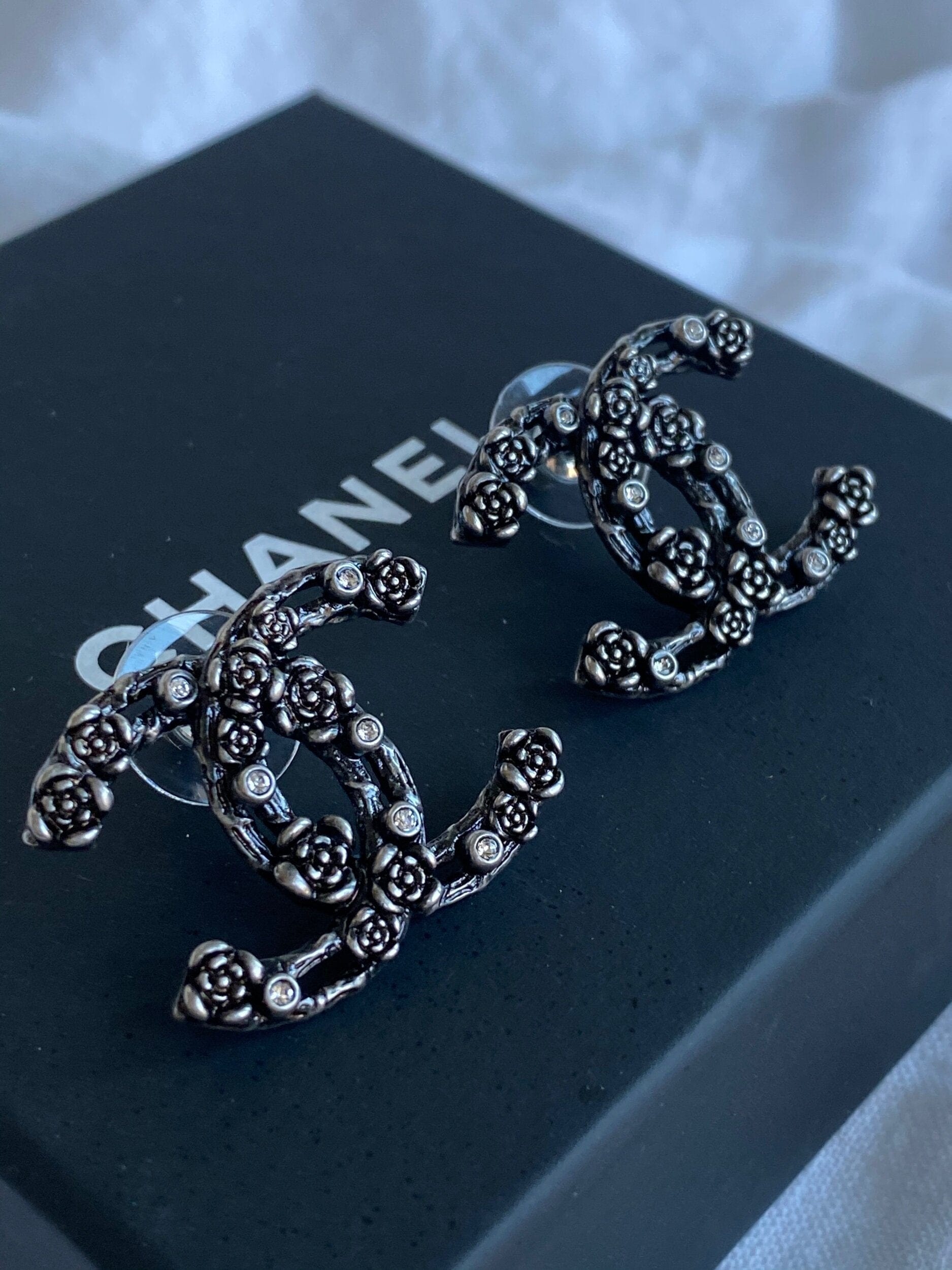 Chanel 22C Earrings Metal Ruthenium Crystal
