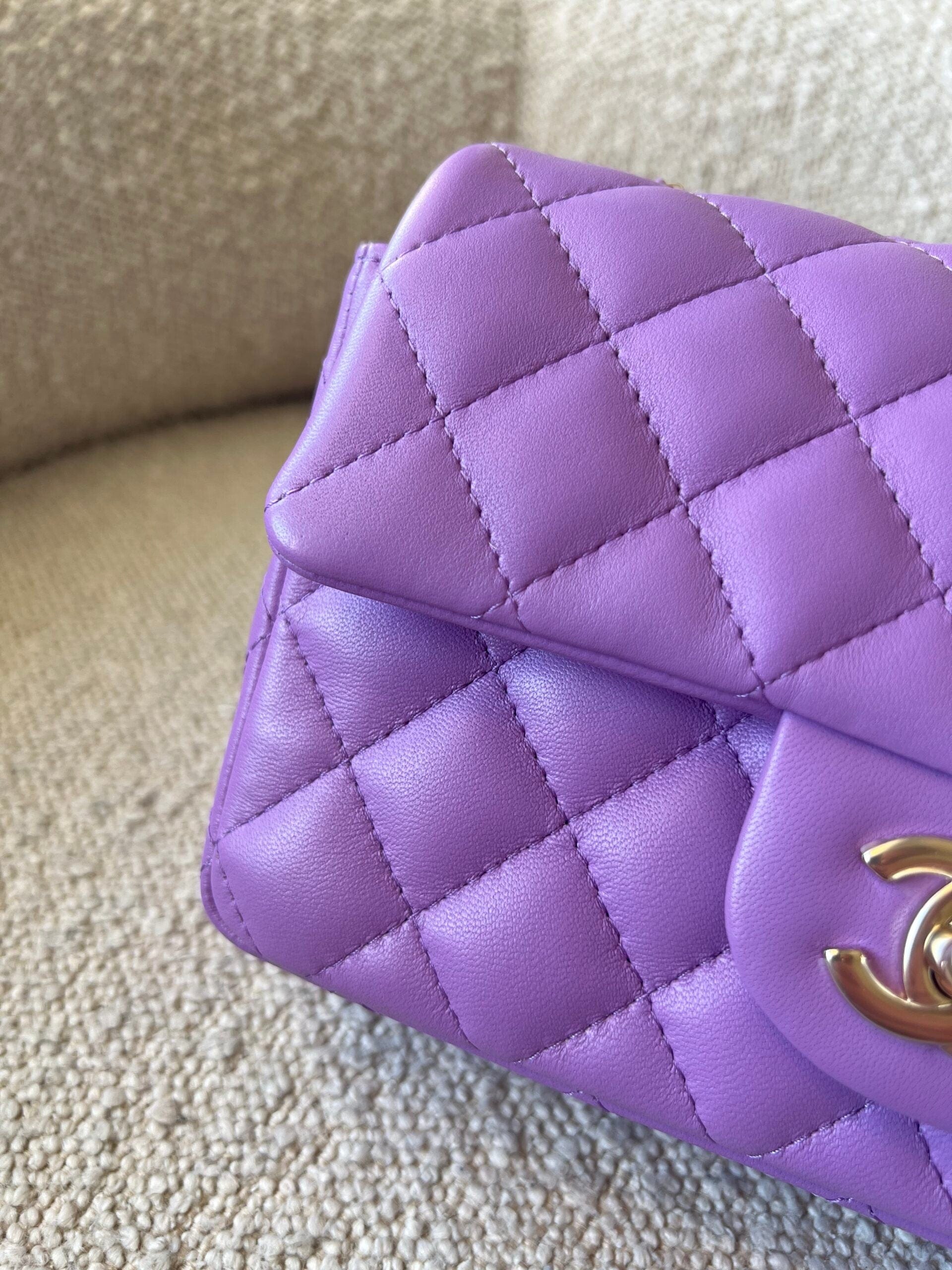 Chanel 22S Light Purple Lambskin Quilted Mini Rectangular Single Flap LGHW