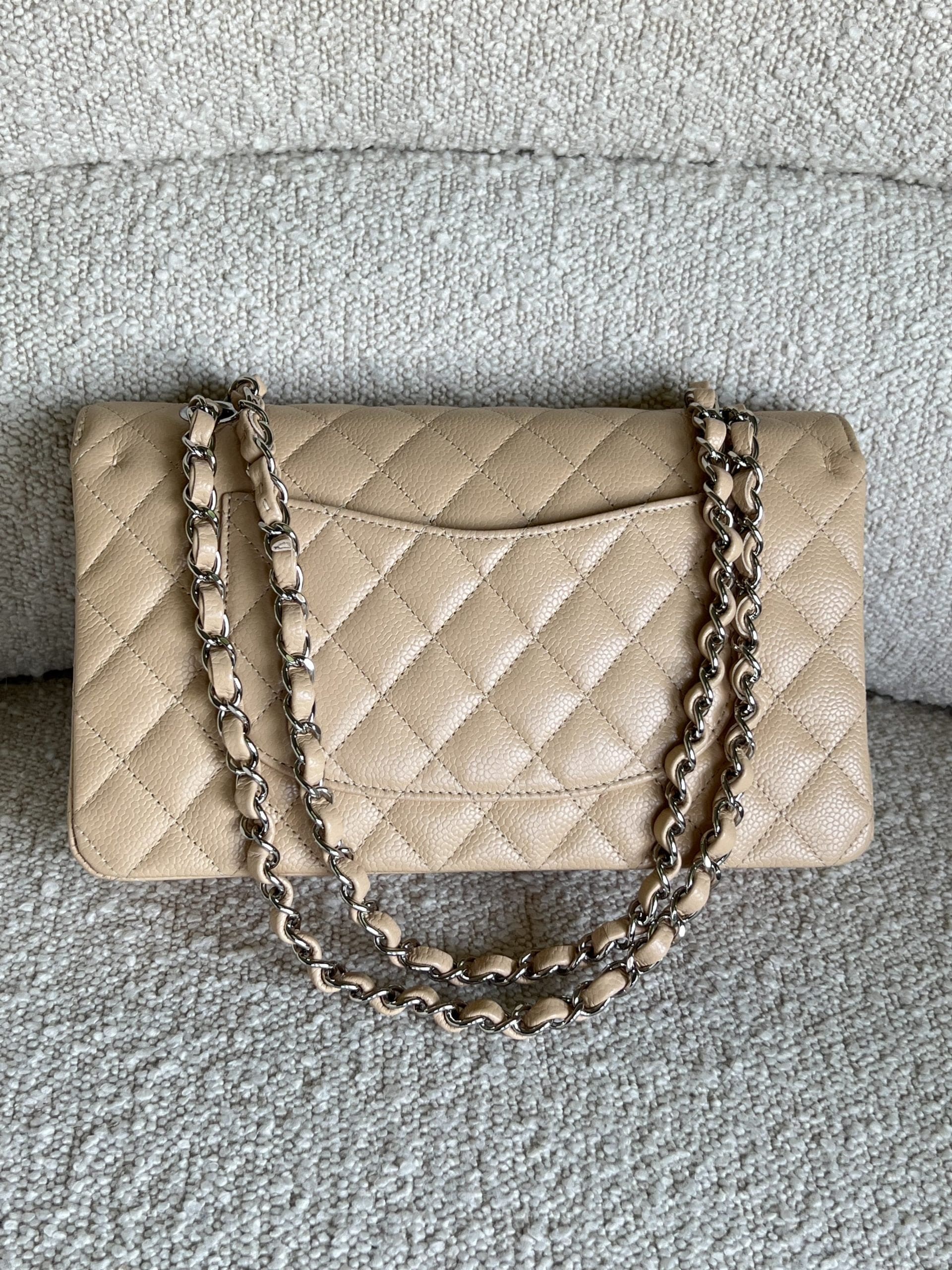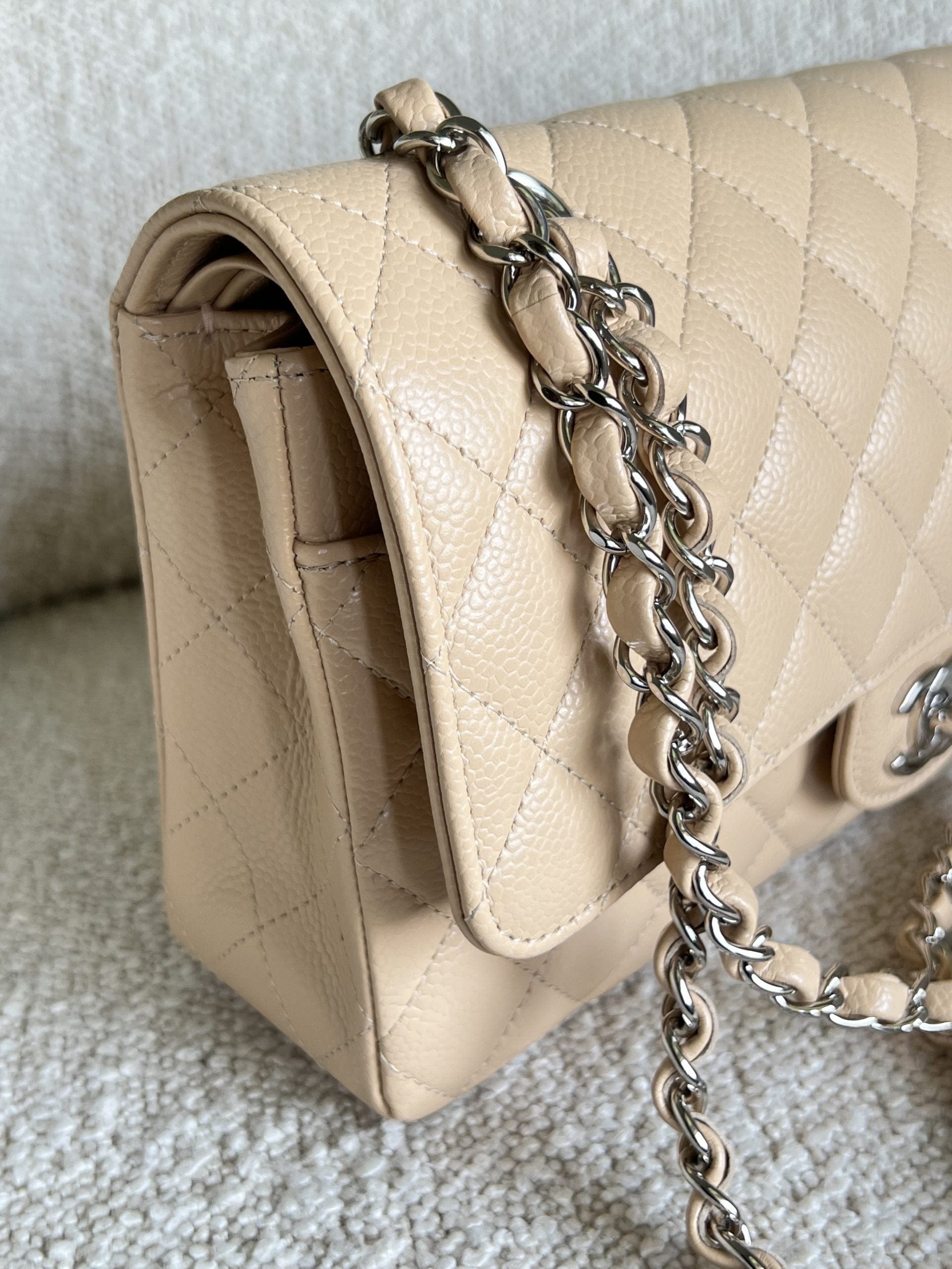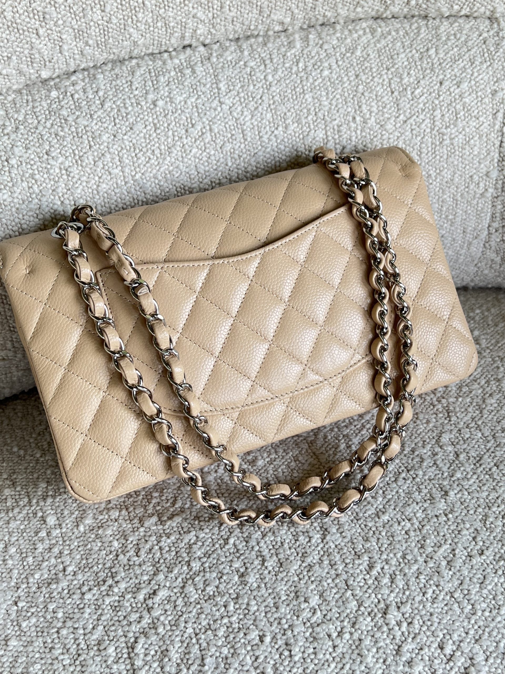 Chanel Beige Clair Caviar Quilted Classic Flap Medium SHW
