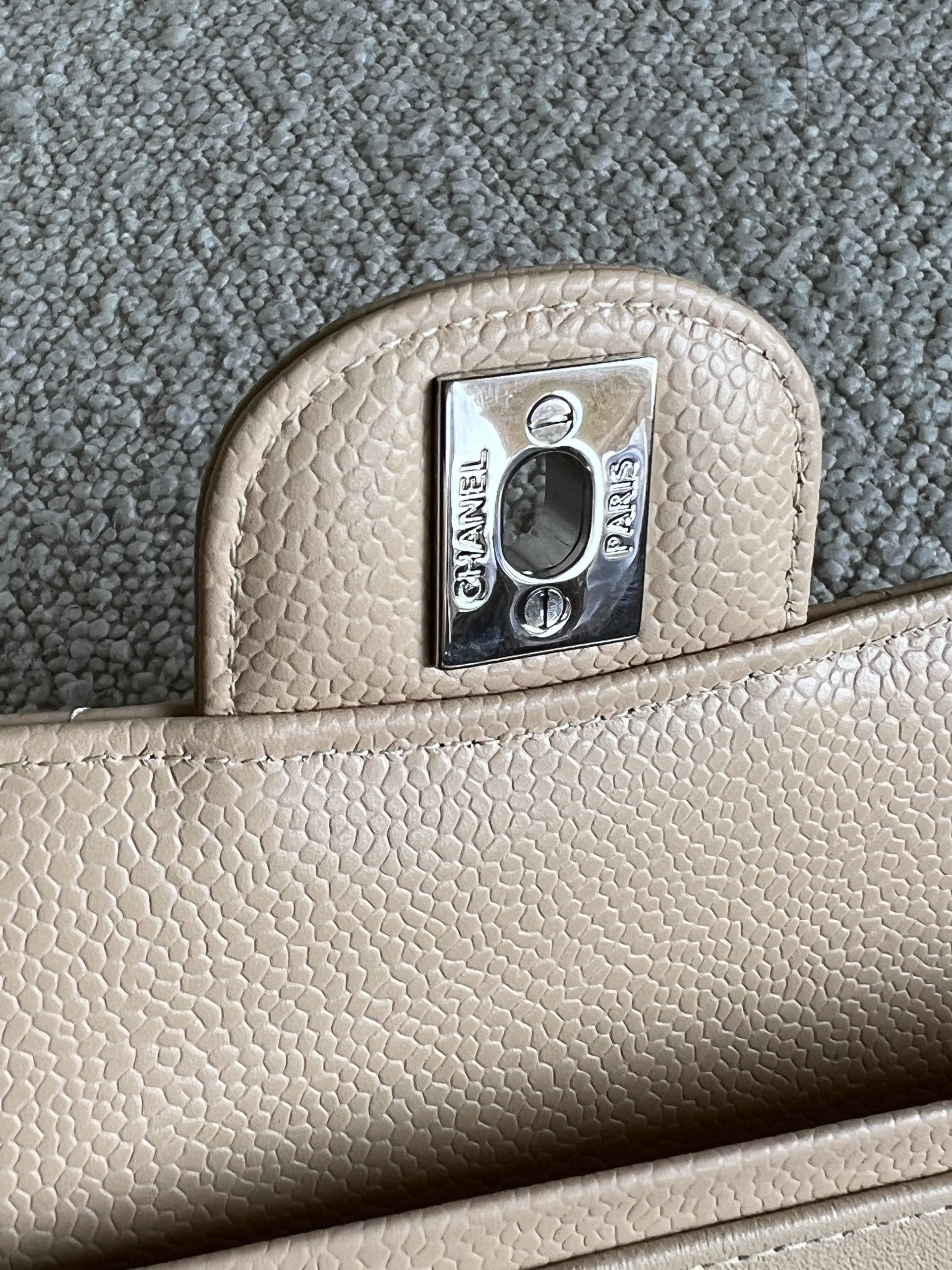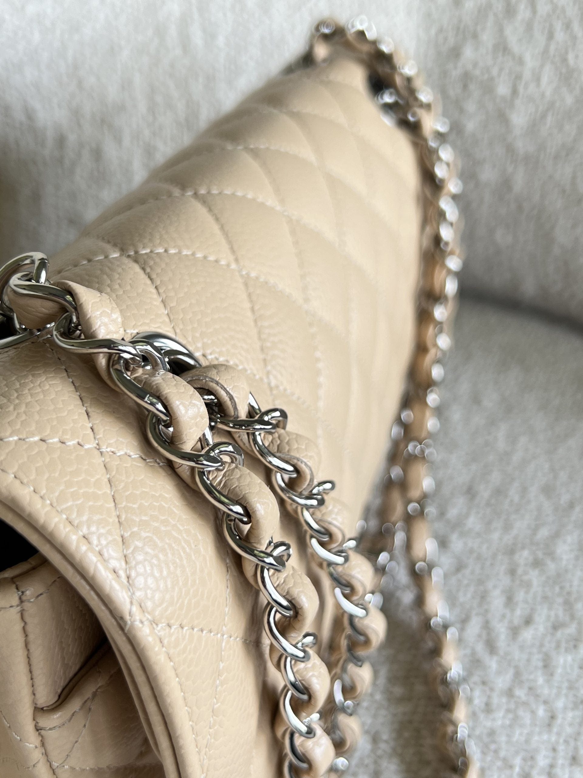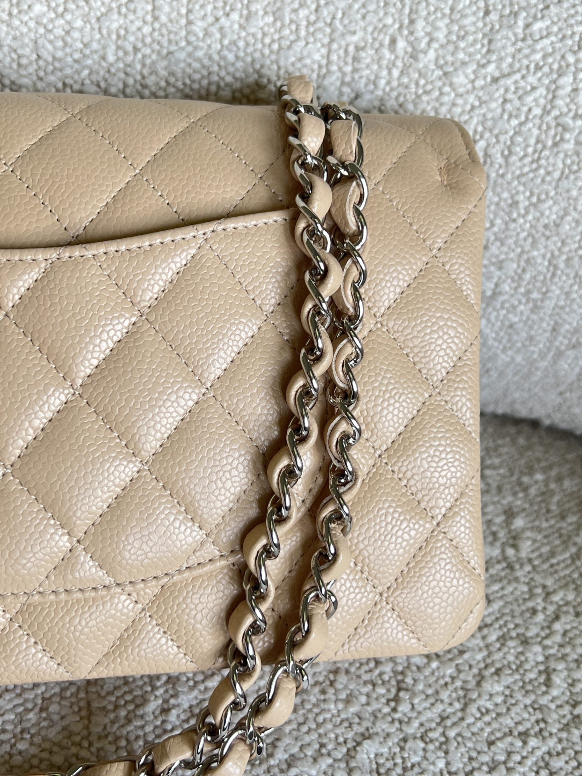 Chanel Beige Clair Caviar Quilted Classic Flap Medium SHW
