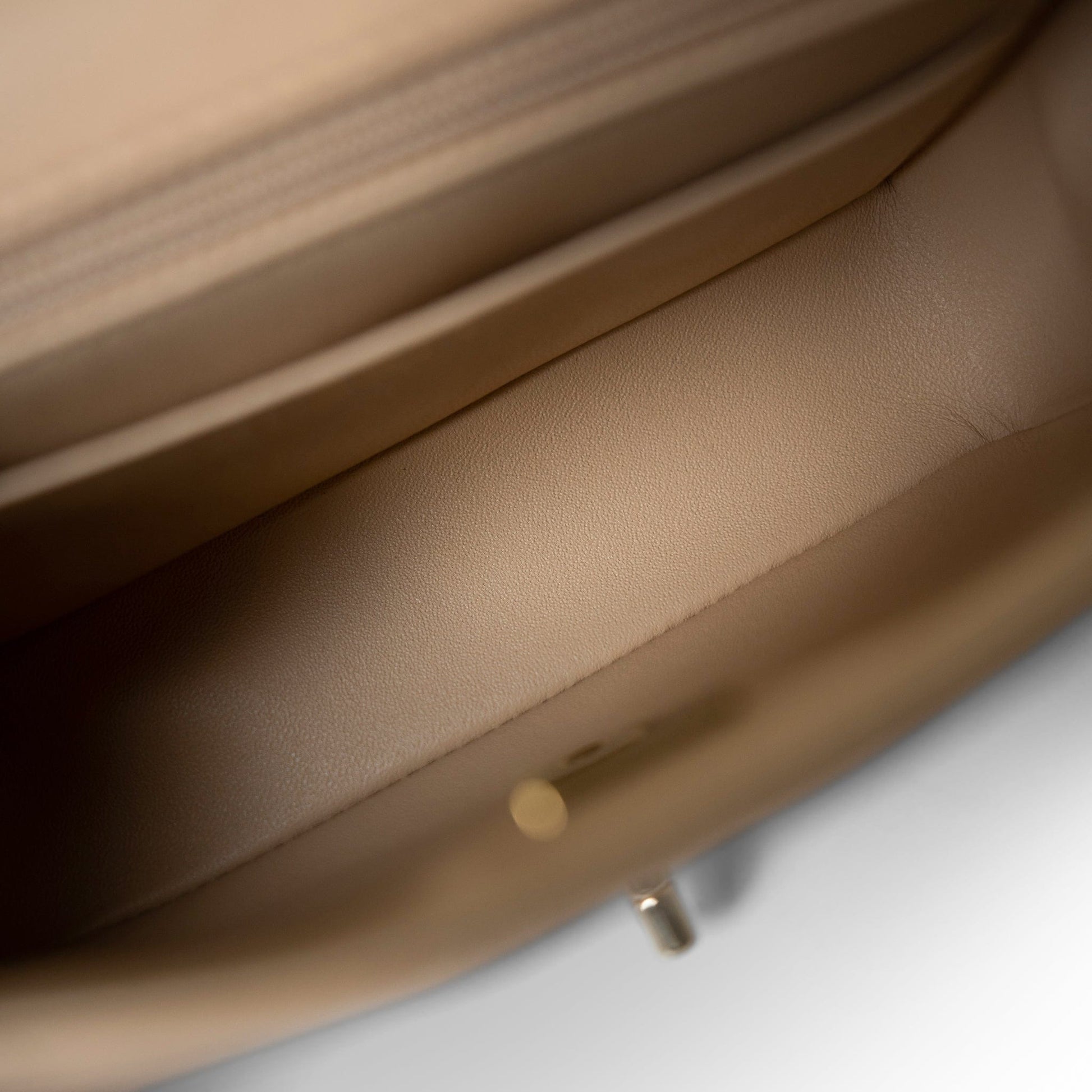 22C Beige Lambskin Quilted Mini Rectangular Quilted Flap Bag